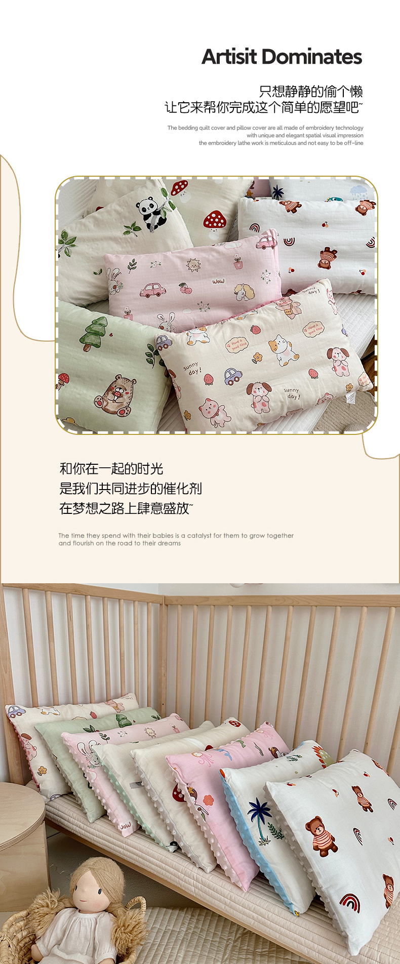 (总)BOSS 2025新款婴幼儿可拆卸-全棉26度有氧双层纱豆豆枕幼儿园枕,恐龙世纪 全棉双层纱豆豆枕 30*50cm,快乐小熊 全棉双层纱豆豆枕 30*50cm,萌宠乐园 全棉双层纱豆豆枕 30*50cm,人鱼公主 全棉双层纱豆豆枕 30*50cm,甜小兔 全棉双层纱豆豆枕 30*50cm,童话森林 全棉双层纱豆豆枕 30*50cm,小蘑菇 全棉双层纱豆豆枕 30*50cm,熊猫盼盼 全棉双层纱豆豆枕 30*50cm