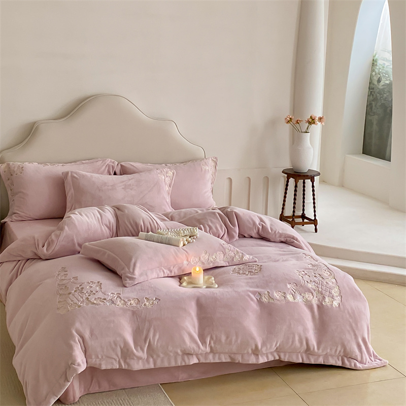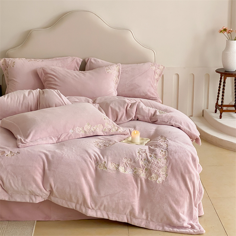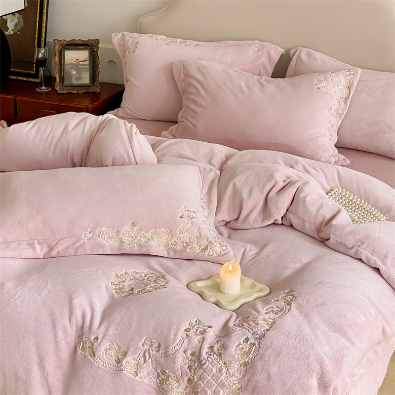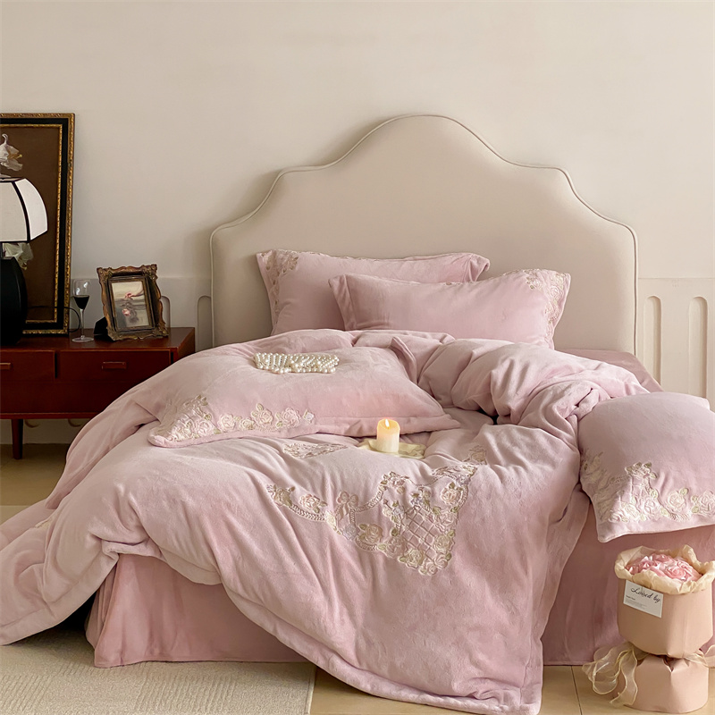 商品名称:馨蕊 2023新款300克极细腻超柔煦暖绒进口导电丝四件套-卡洛琳 初夏粉