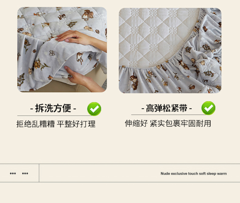 当前位置: 91家纺网 > 商品网购 > 床上用品 > 床笠 > 铭动家纺 2023新款牛奶绒花边款床笠大豆夹棉加厚床罩三件套床裙款床笠 紫嫣