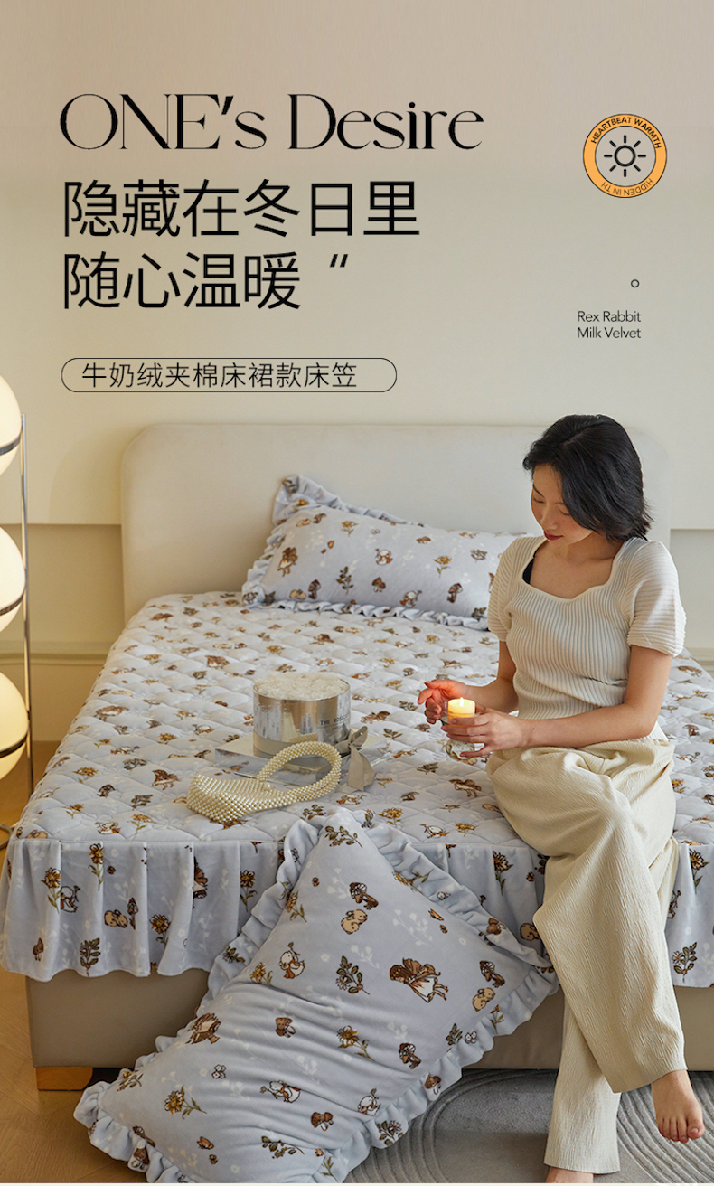 • 91家纺网 家纺一手货源 找家纺 (总)铭动家纺2023牛奶绒花边款床笠大豆夹棉加厚床罩三件套床裙款床笠,菲丽,花园兔兔,佳人,萝莉,觅彩新,苏蕾,紫嫣