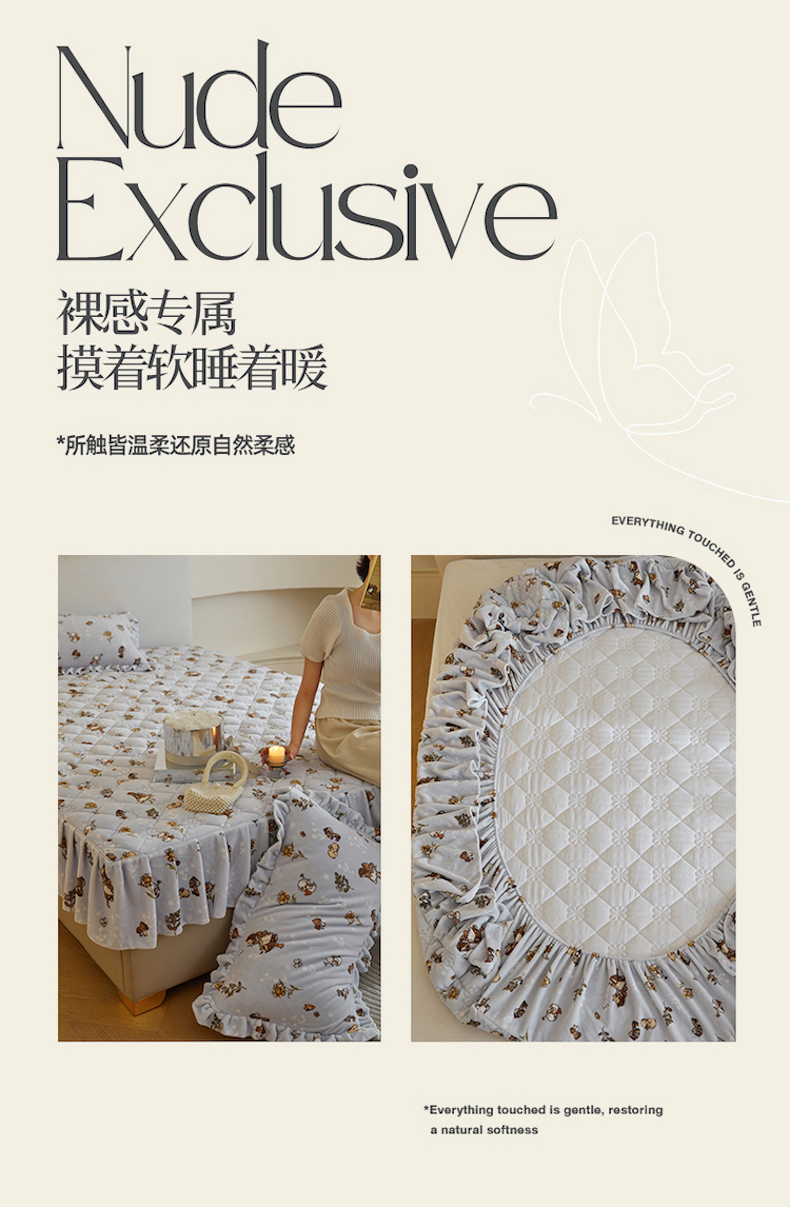 (总)铭动家纺2023牛奶绒花边款床笠大豆夹棉加厚床罩三件套床裙款床笠,菲丽,花园兔兔,佳人,萝莉,觅彩新,苏蕾,紫嫣