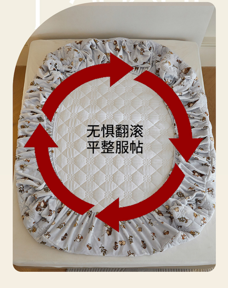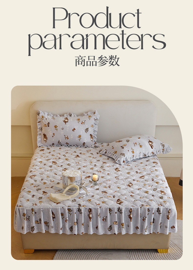 • 91家纺网 家纺一手货源 找家纺 铭动家纺 2023新款牛奶绒花边款床笠大豆夹棉加厚床罩三件套床裙款床笠 紫嫣