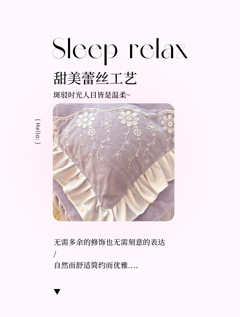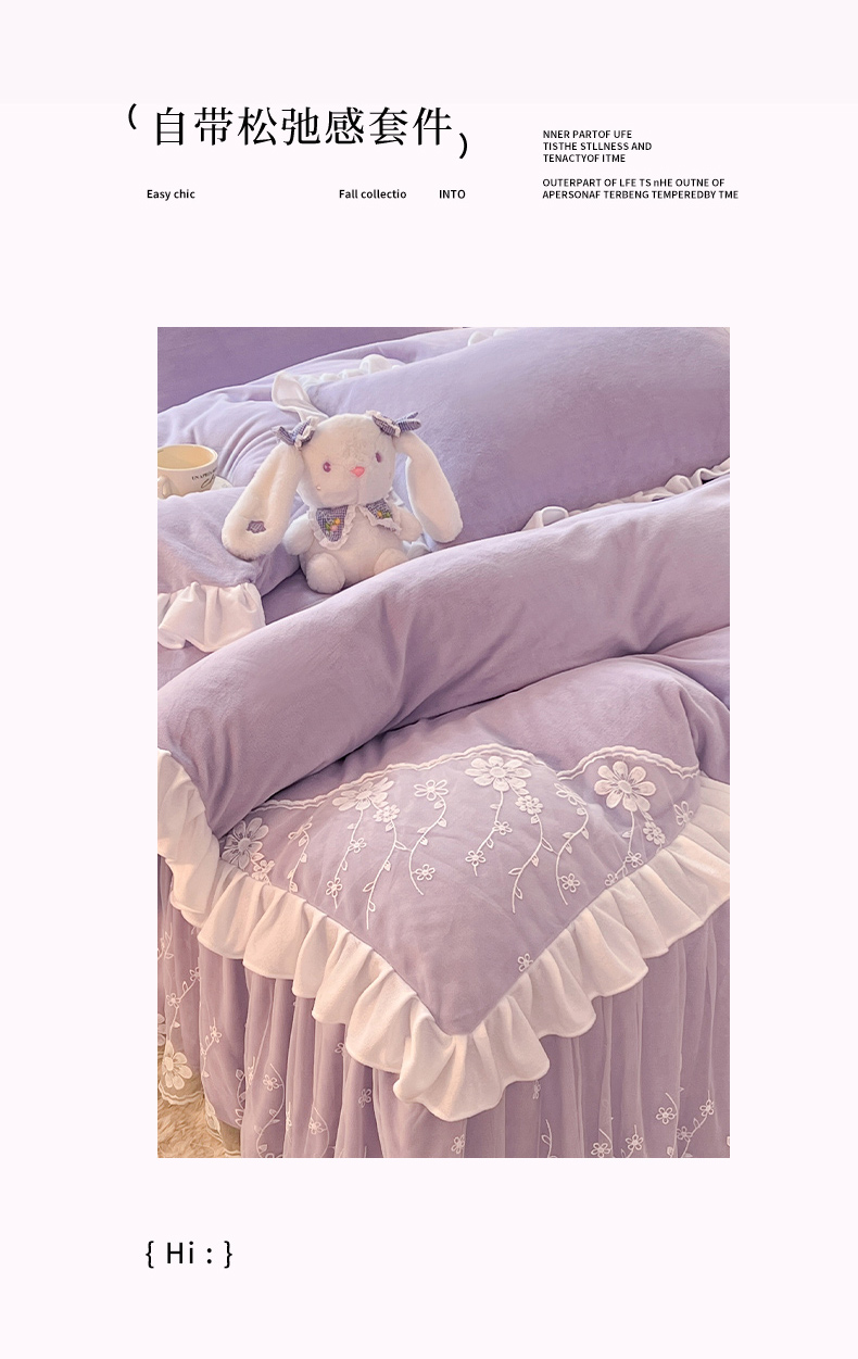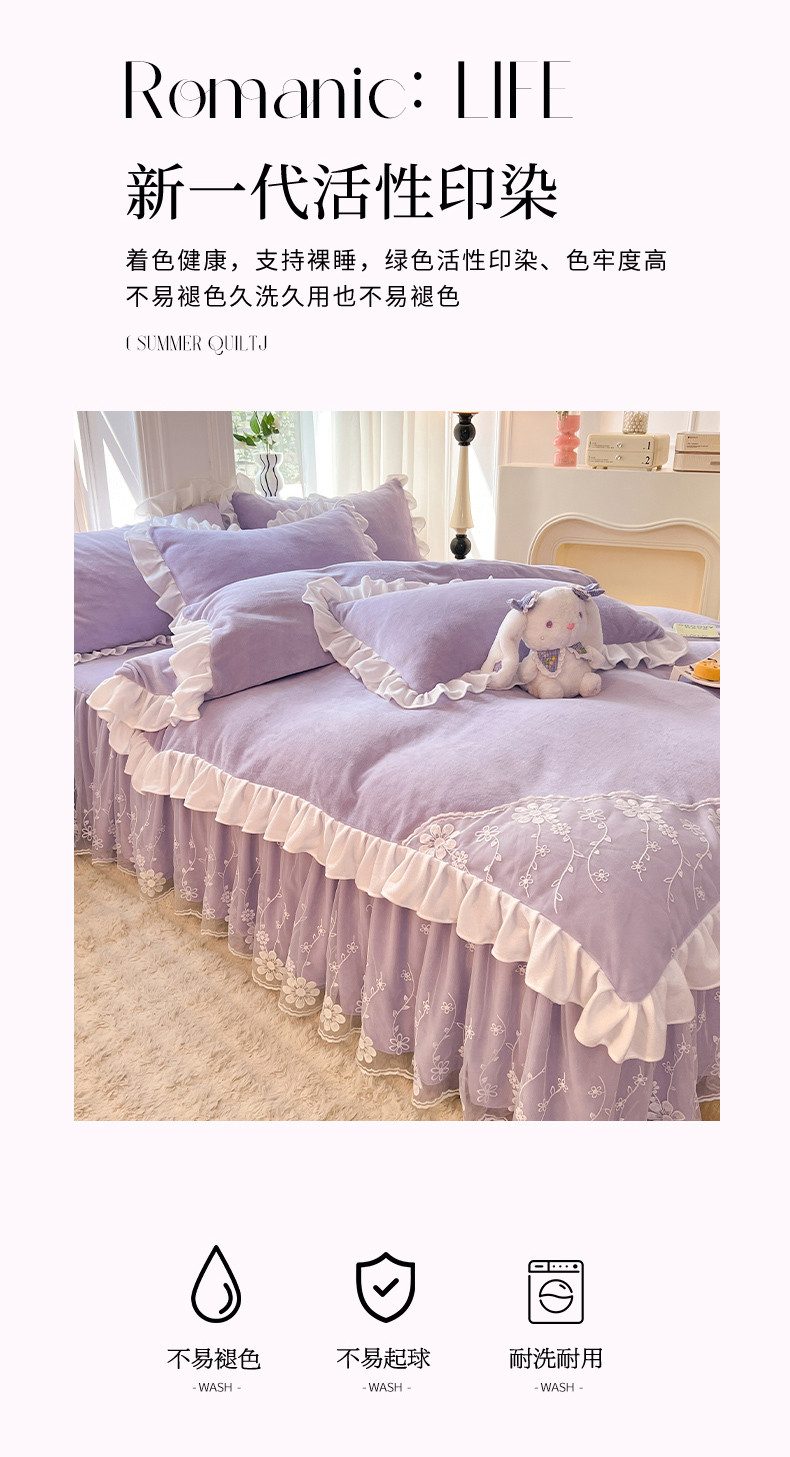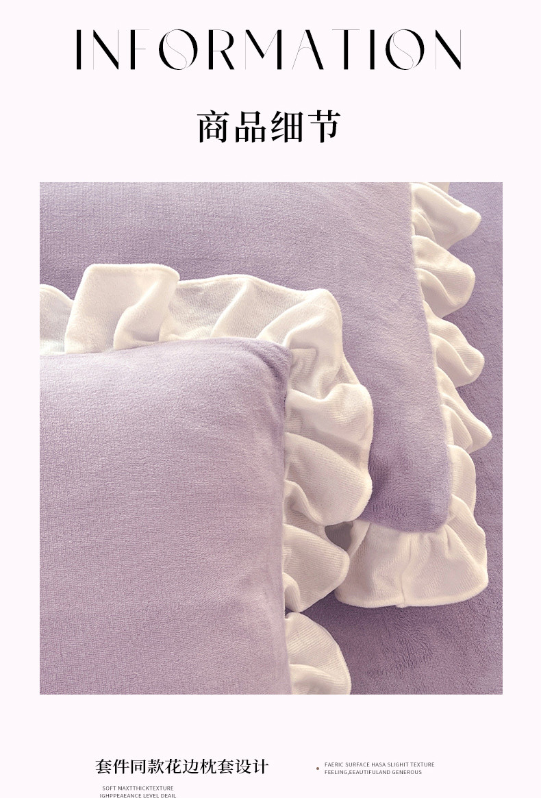 商品名称:唐人居 2025新款加厚牛奶绒蕾丝花边四件套-花颜 花颜-浅紫