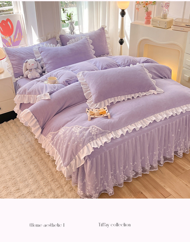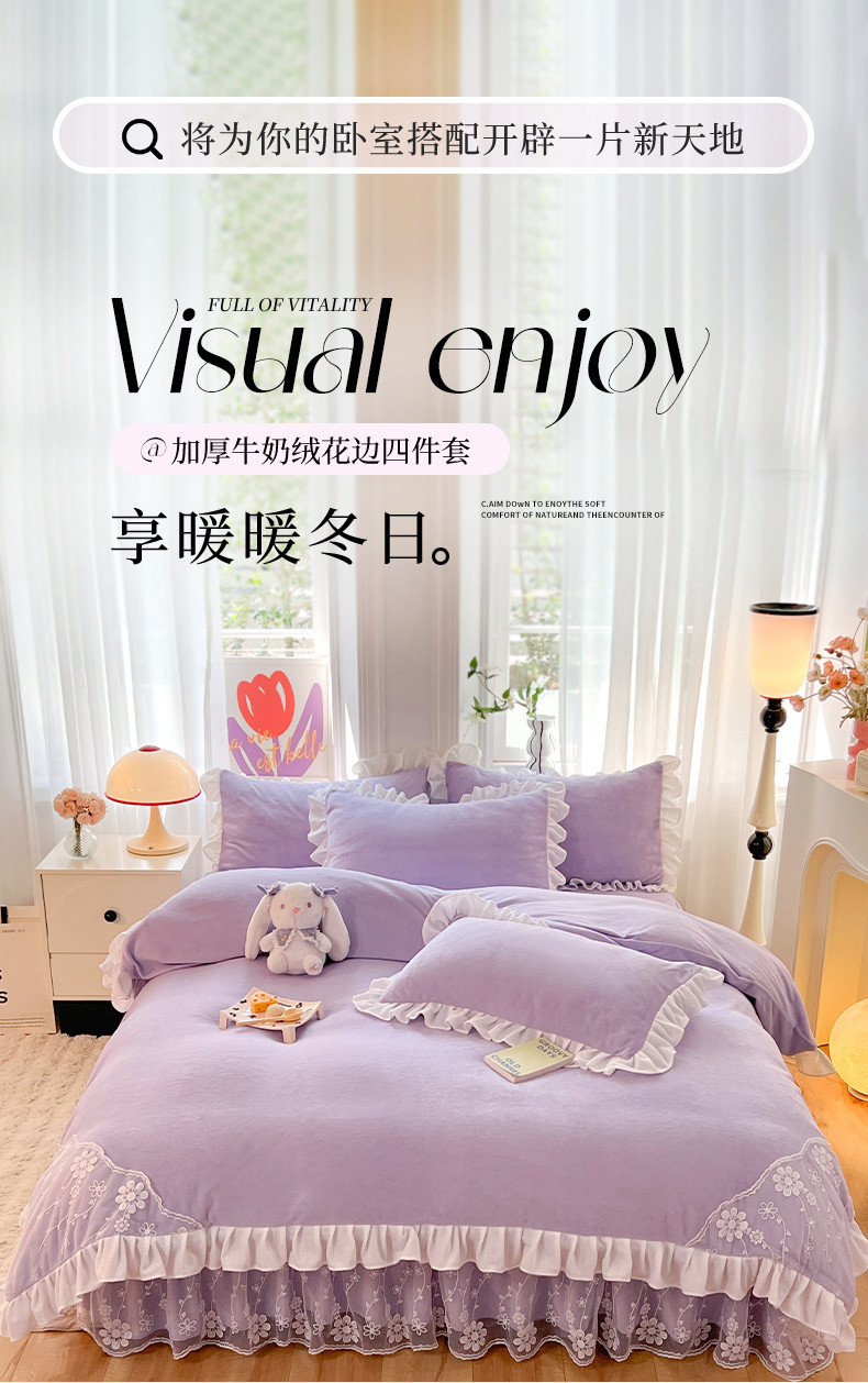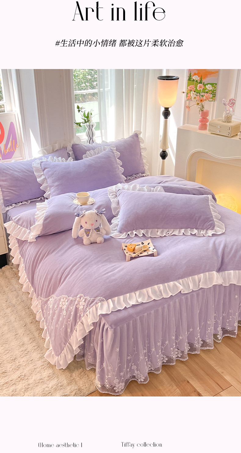 唐人居 2025新款加厚牛奶绒蕾丝花边四件套-花颜 花颜-浅紫
