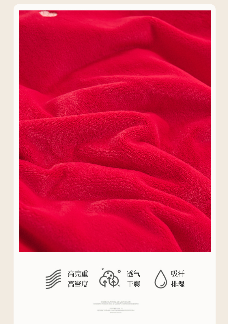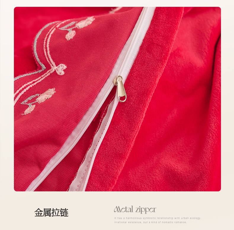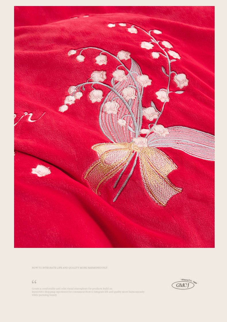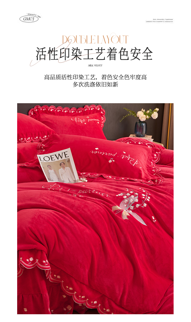 商品名称:恒爱2023新款加厚双面牛奶绒绣花花边款四件套-铃兰花 大红