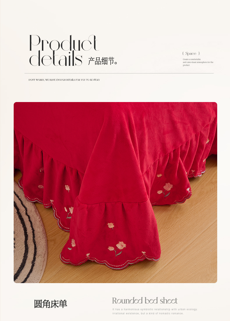 (总)恒爱 2022秋冬水晶绒翩翩花舞夹棉单床裙,大红色,豆沙红,橄榄绿,公主粉,桔色,咖啡色,孔雀绿,拉菲红,罗兰紫,玫红色,美人玉,米白色,米驼色,抹茶绿,浅灰色,紫色