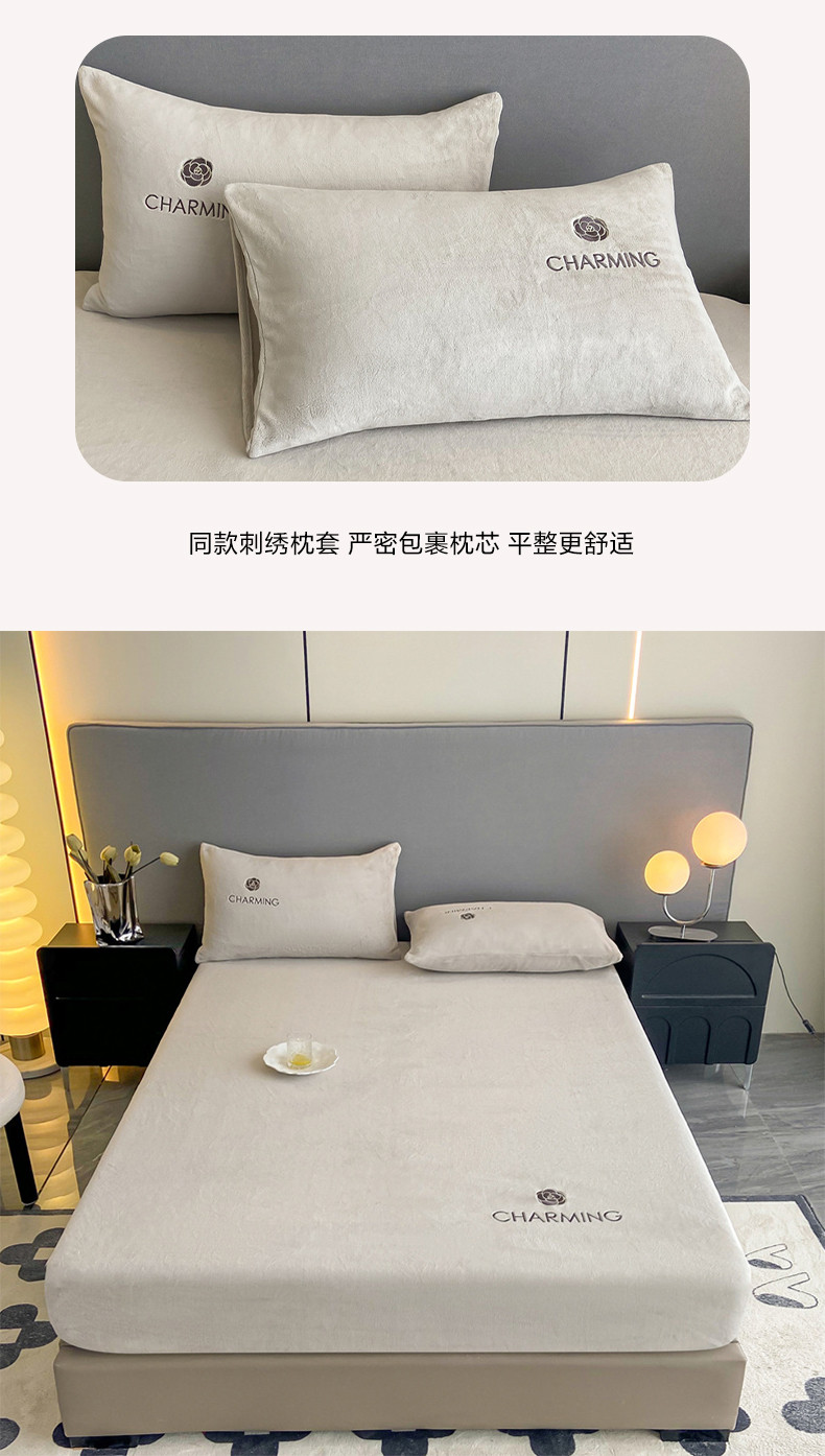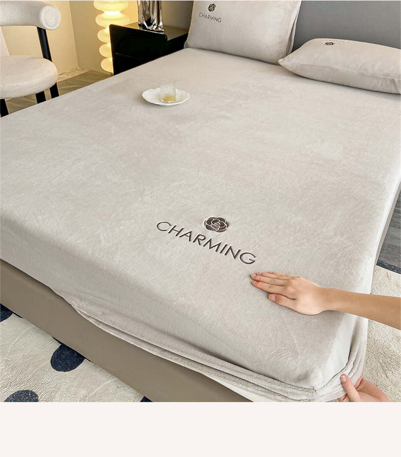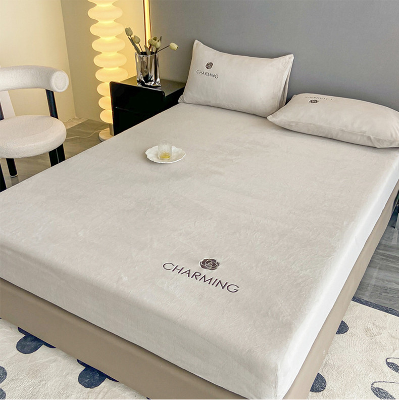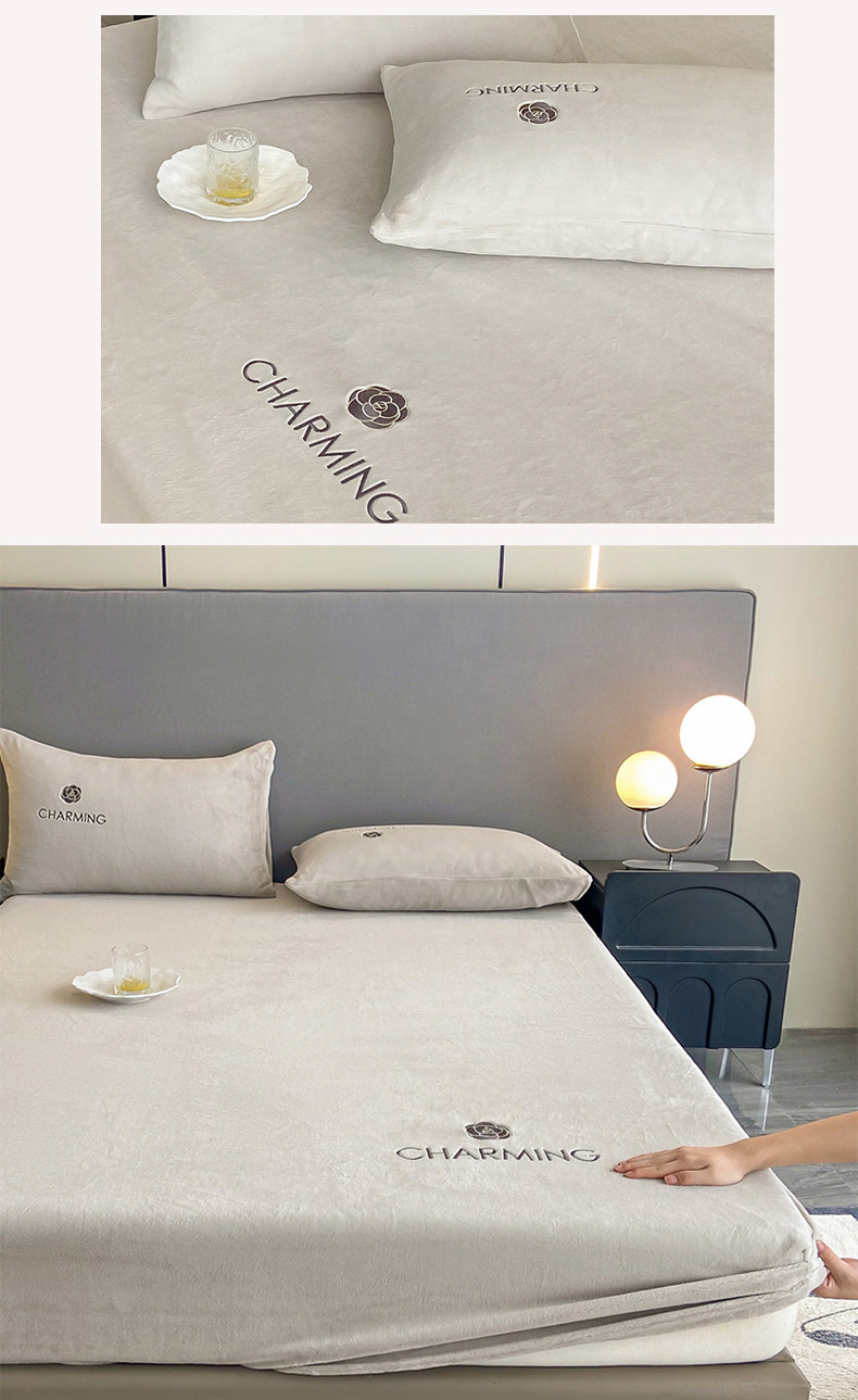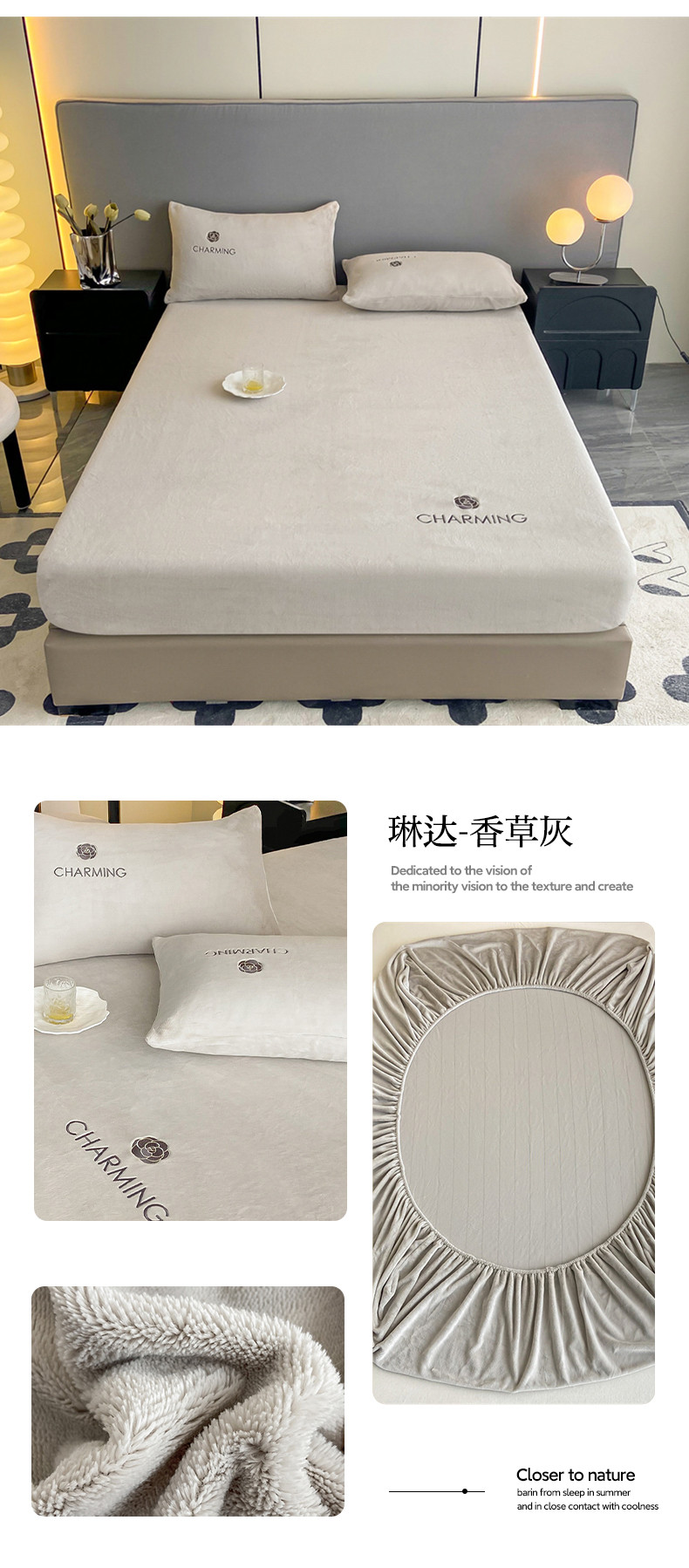 古吉梦 2023新款牛奶绒刺绣床笠-琳达 琳达-香草灰