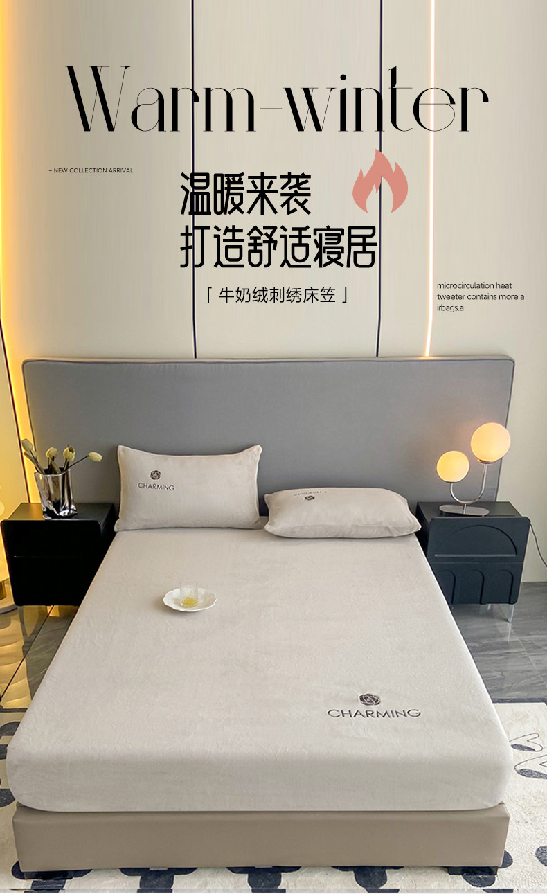 • 91家纺网 家纺一手货源 找家纺 古吉梦 2023新款牛奶绒刺绣床笠-琳达 琳达-香草灰
