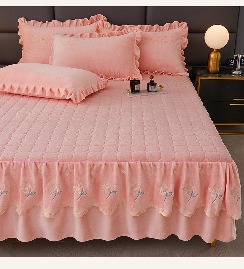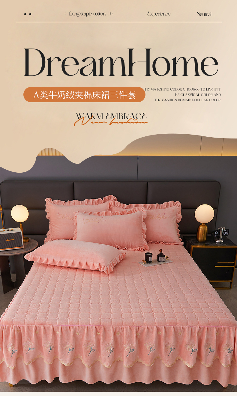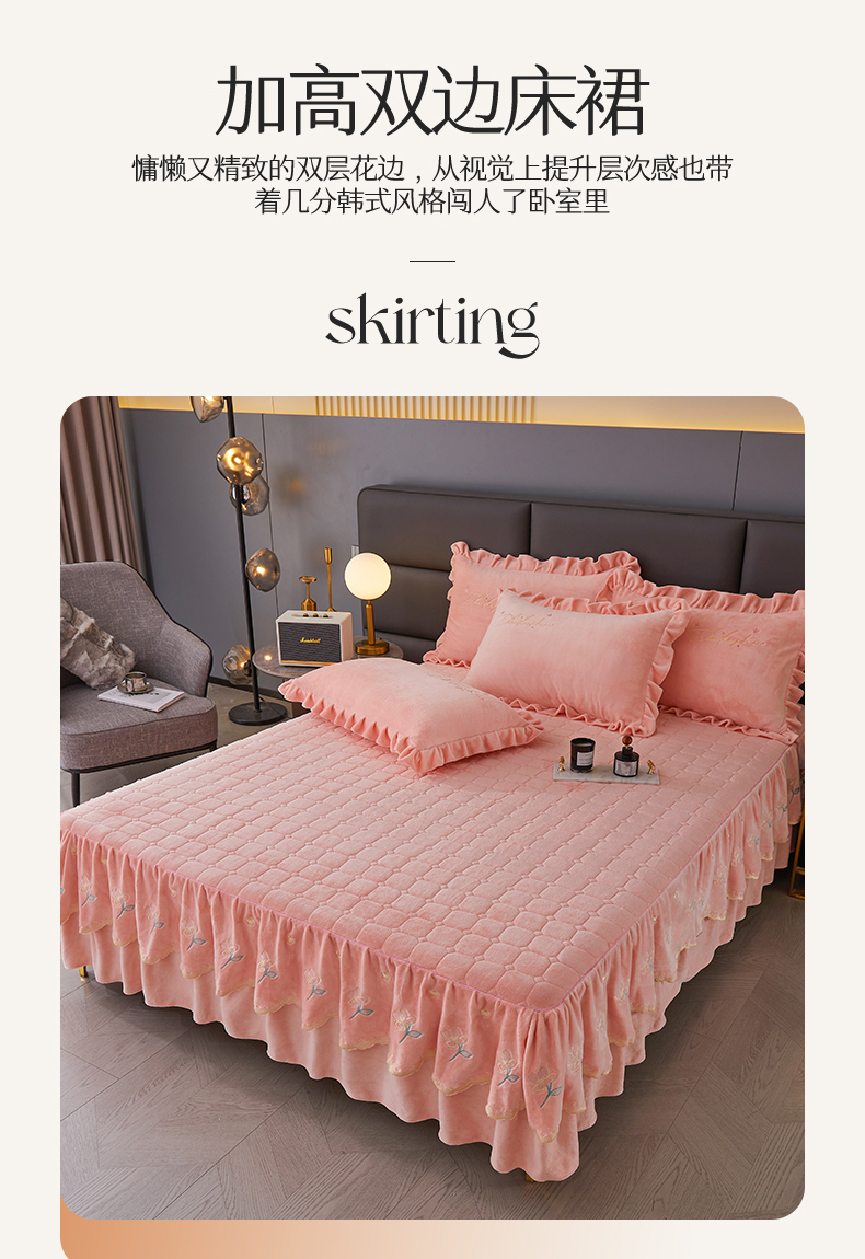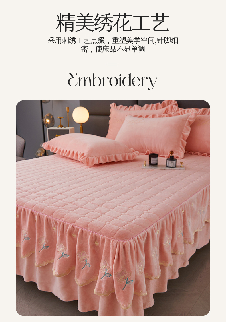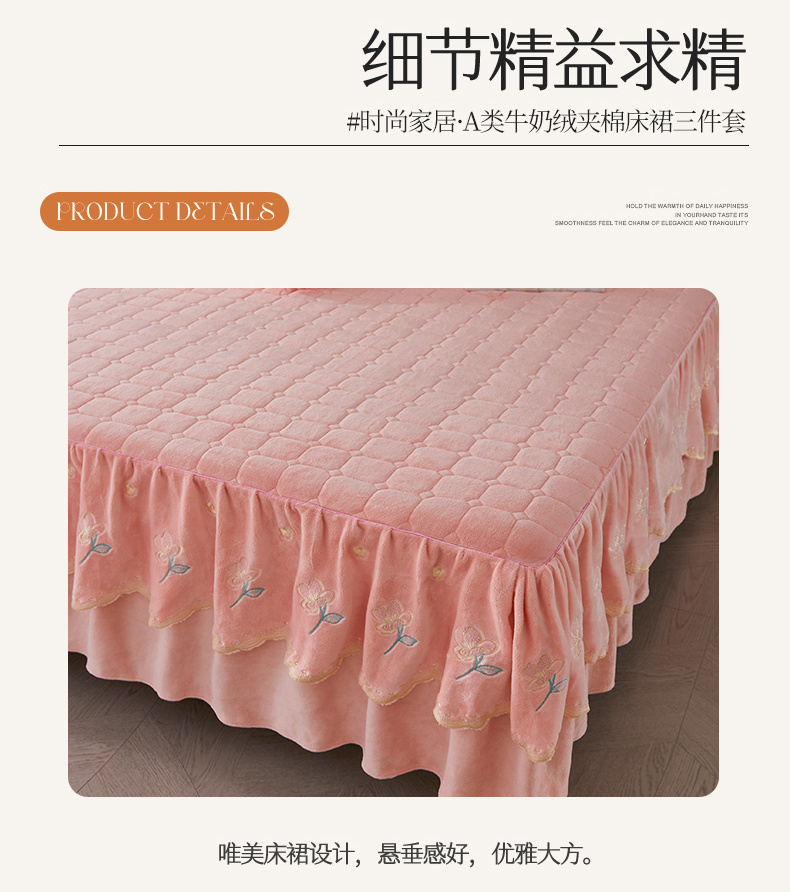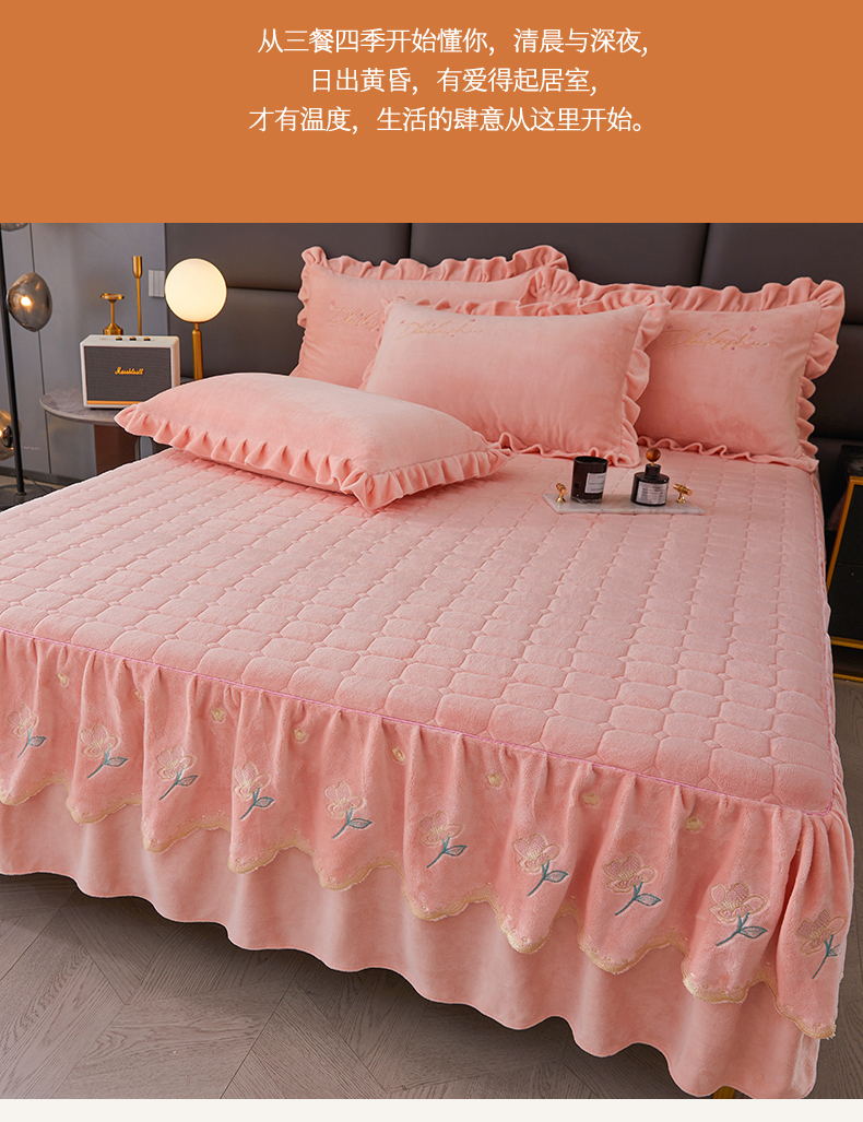 当前位置: 91家纺网 > 商品网购 > 床品套件 > 三件套 > 恒爱家纺 2023新款牡丹花开床裙牛奶绒三件套 玉色