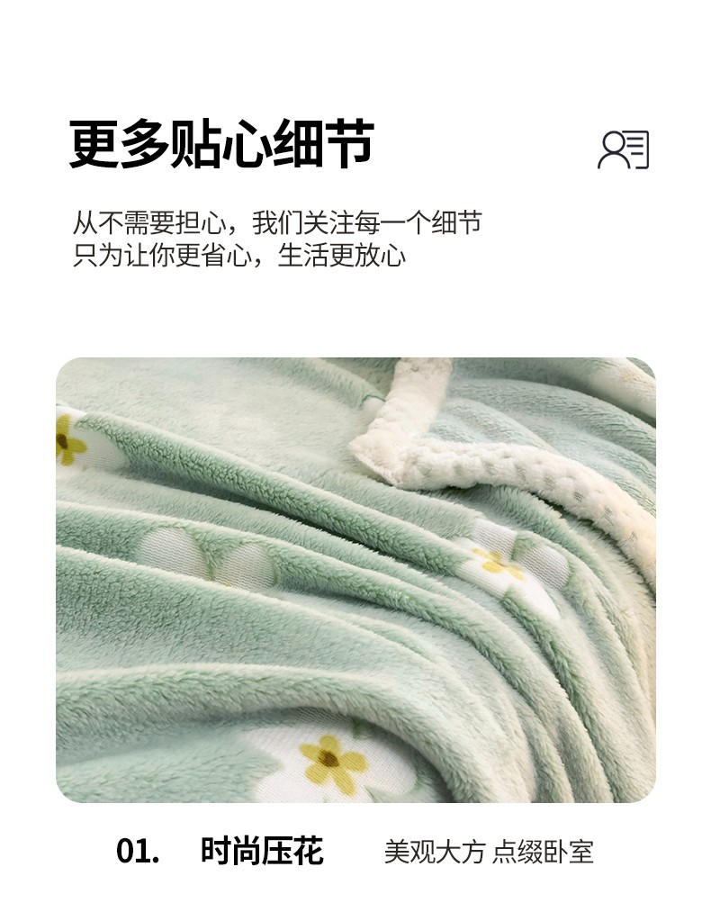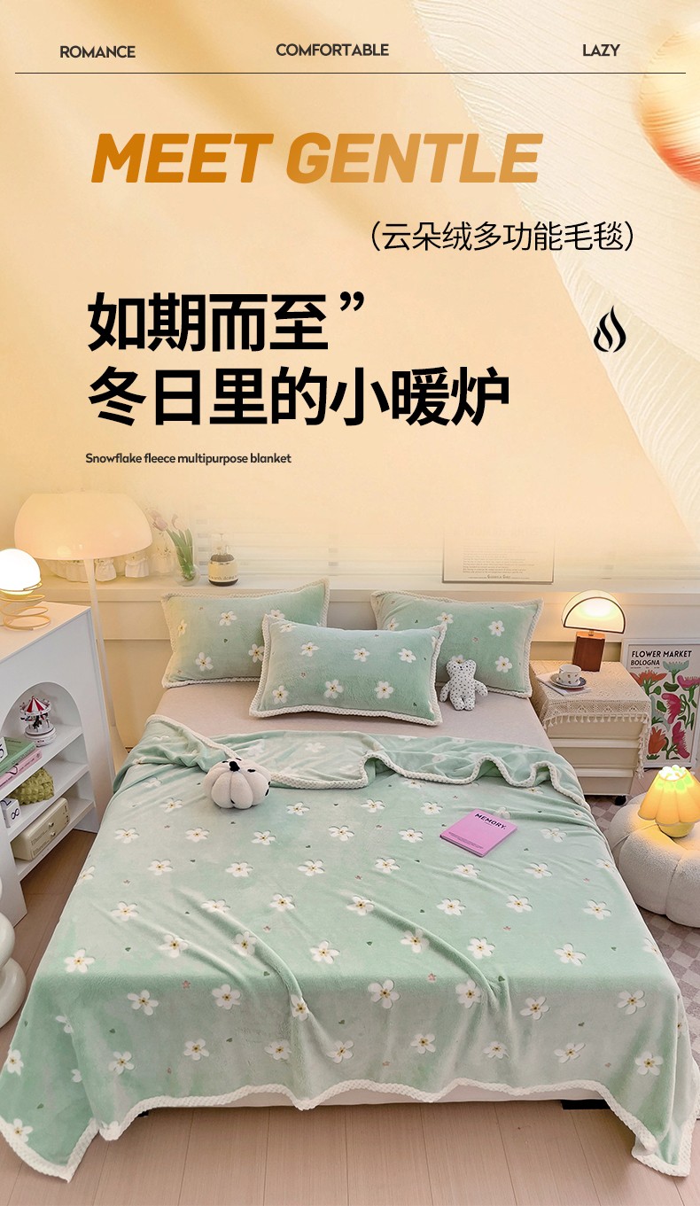 当前位置: 91家纺网 > 商品网购 > 毛毯休闲毯绒毯 > 毛毯 > 锦威郎 2023新款毛毯床单保暖加厚珊瑚绒双面午睡毯云朵绒多功能毛毯 小花绿