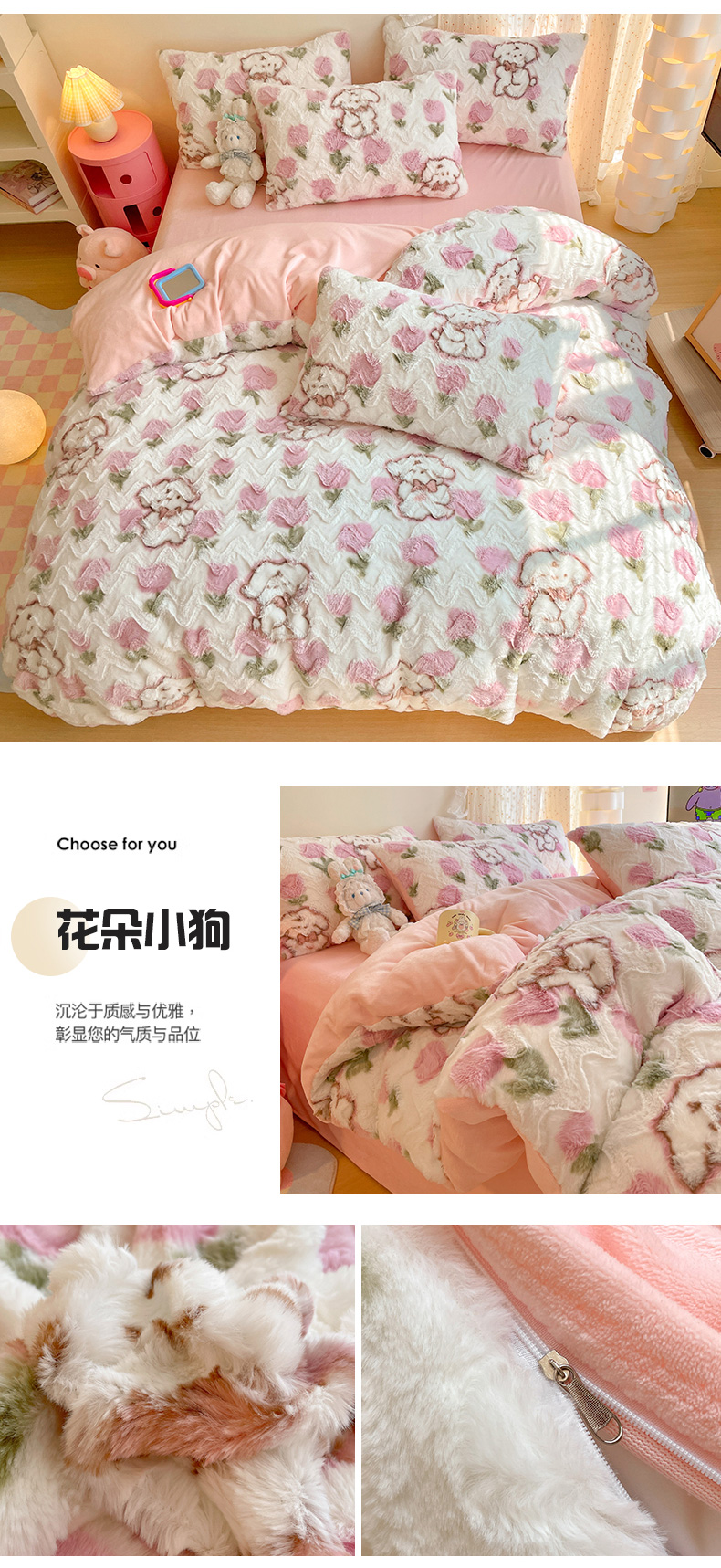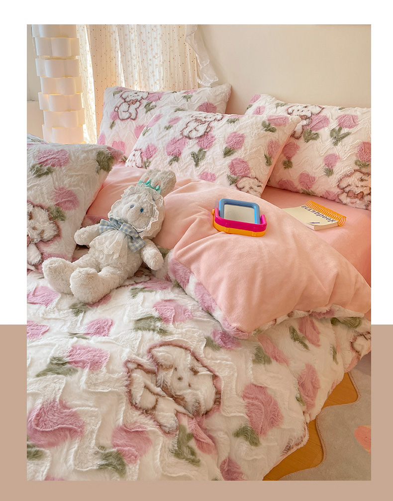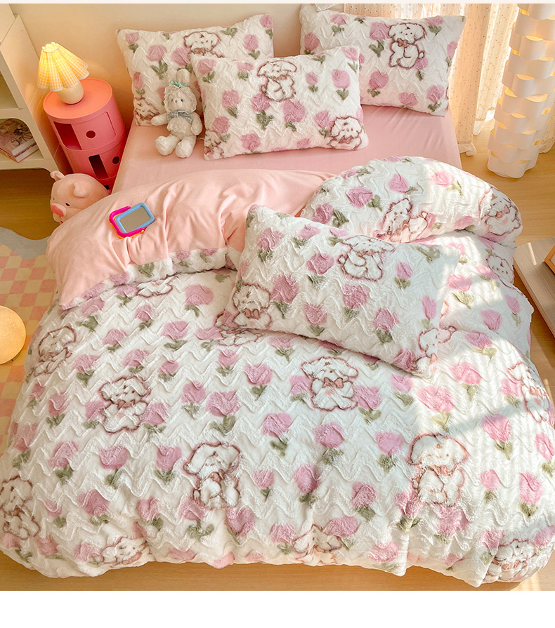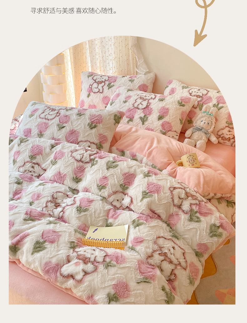 当前位置: 91家纺网 > 商品网购 > 床品套件 > 四件套 > 牛奶绒四件套 > 安哆啦家纺 2024新款加厚9斤印花獭兔毛绒兔兔绒剪花刷花牛奶绒四件套 花朵小狗