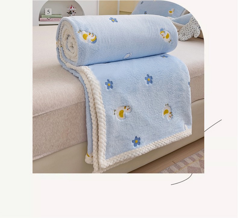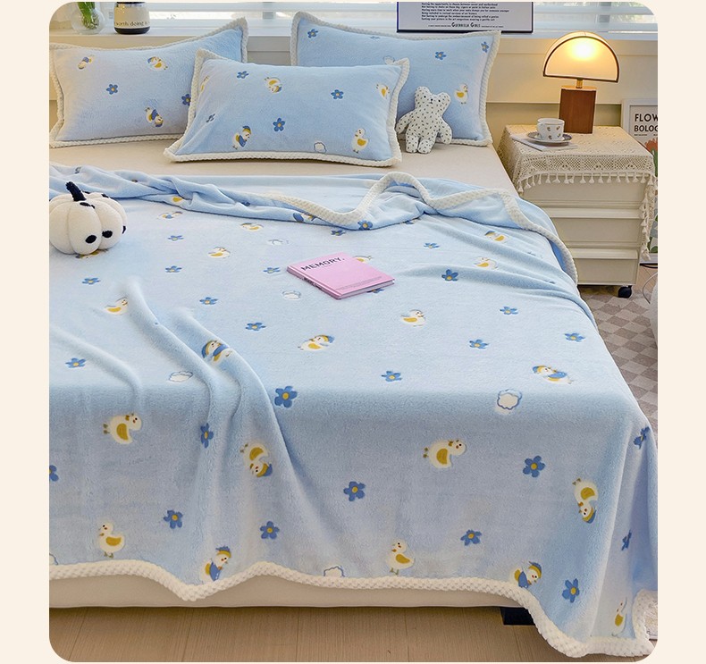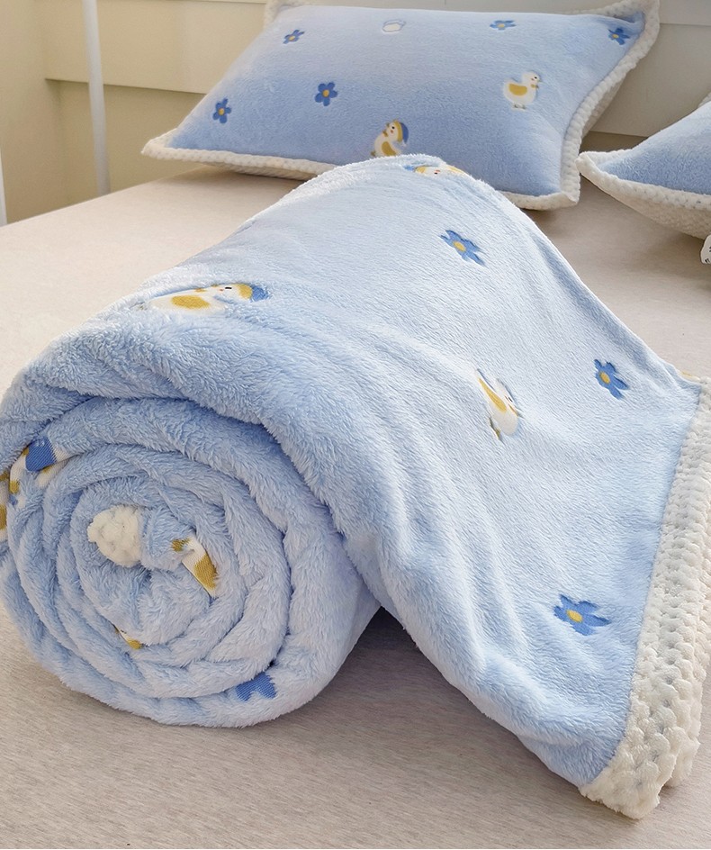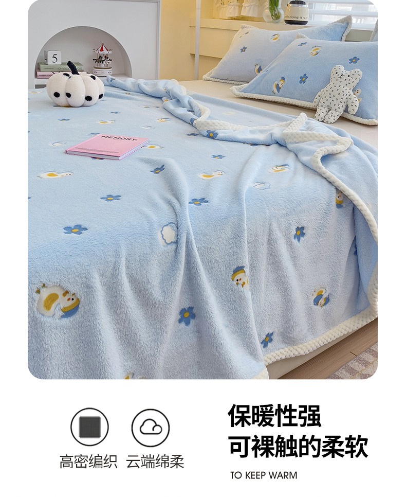 yyds网供 新款毛毯学生宿舍保暖加厚珊瑚绒双面午睡毯云朵绒多功能毛毯 鸭子蓝