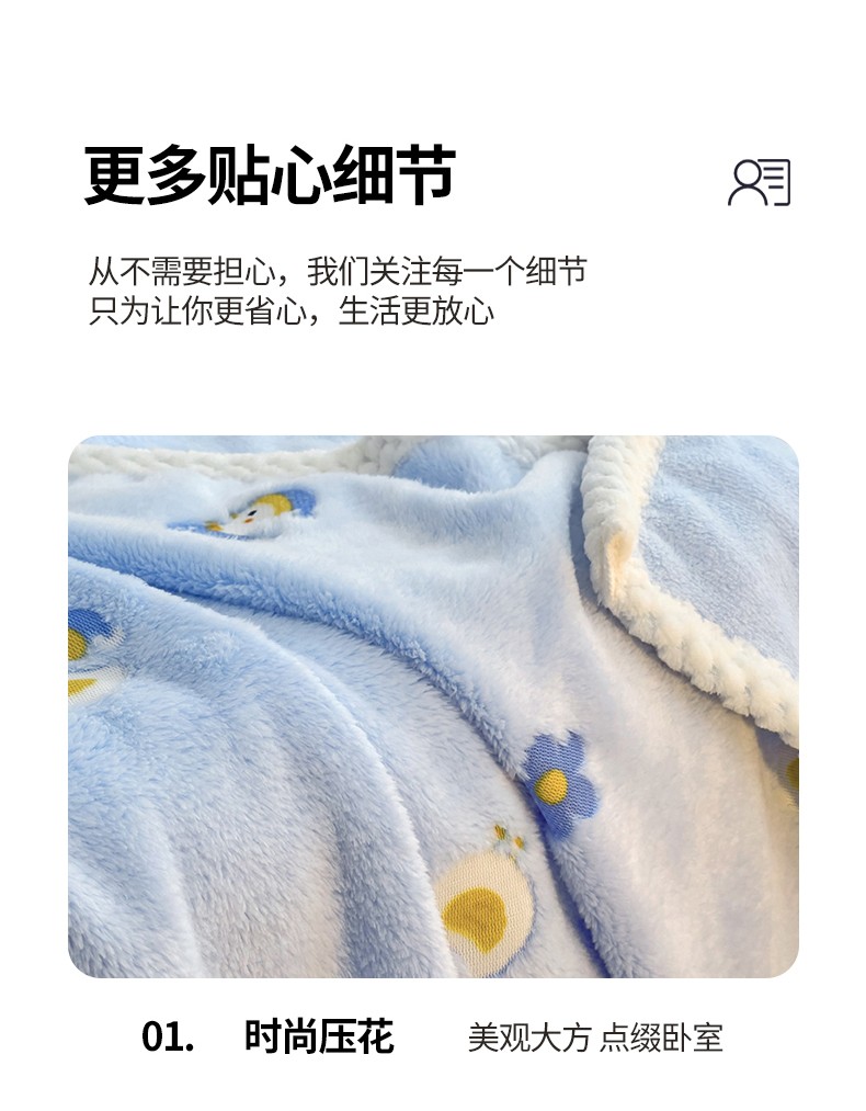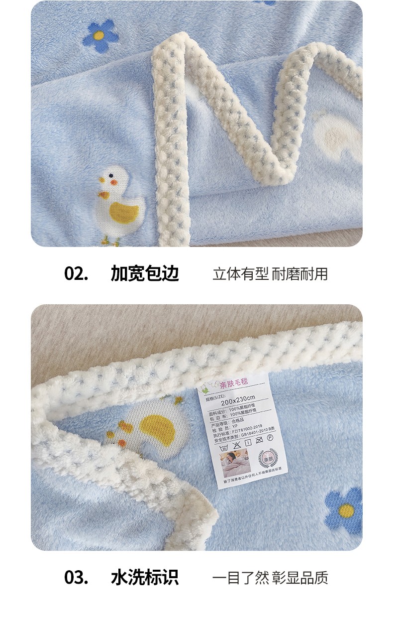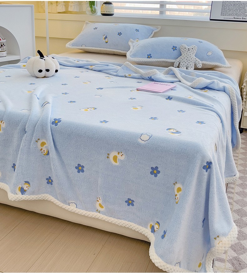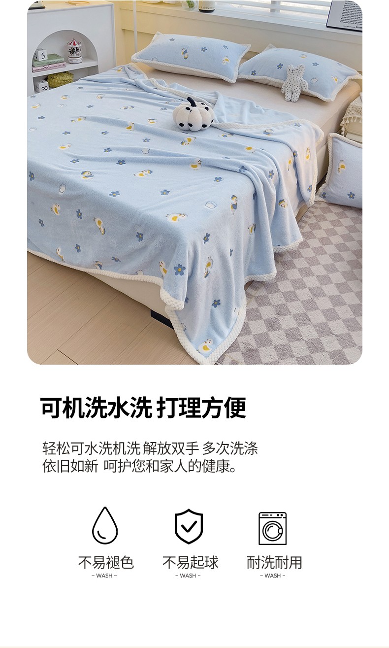 yyds网供 新款毛毯学生宿舍保暖加厚珊瑚绒双面午睡毯云朵绒多功能毛毯 鸭子蓝
