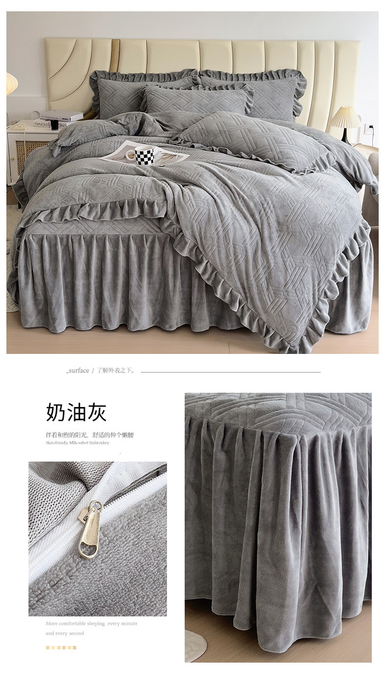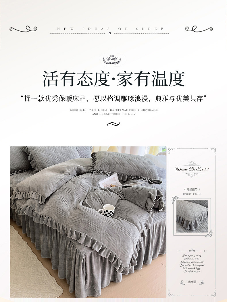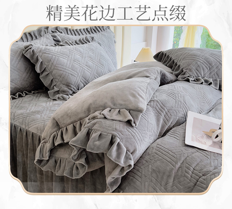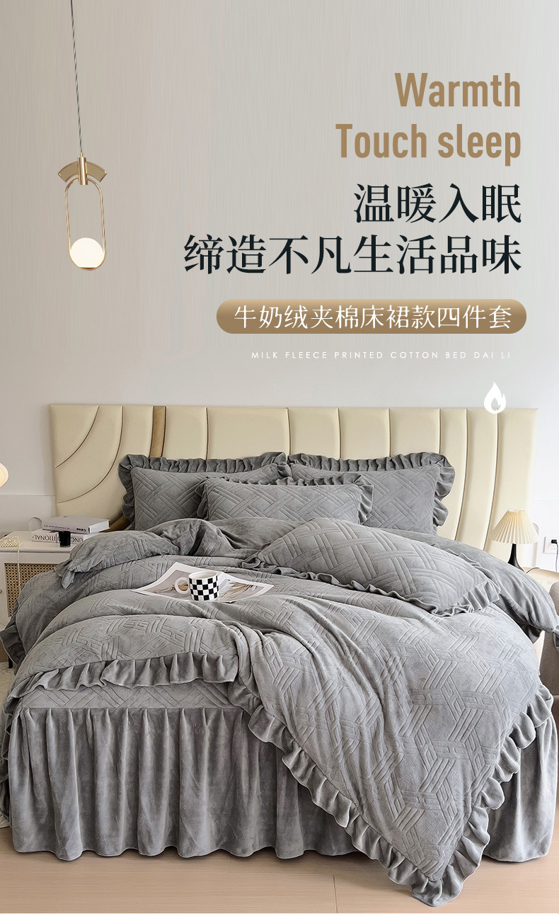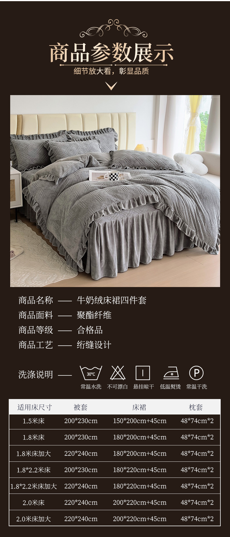 当前位置: 91家纺网 > 商品网购 > 床品套件 > 四件套 > 牛奶绒四件套 > 十个点家纺 2024新款牛奶绒床裙四件套-欣雅 欣雅奶油灰