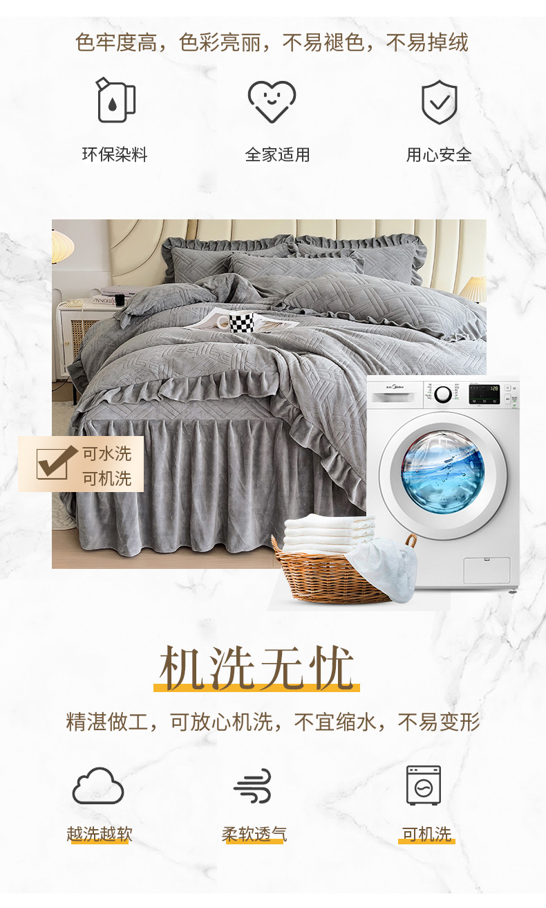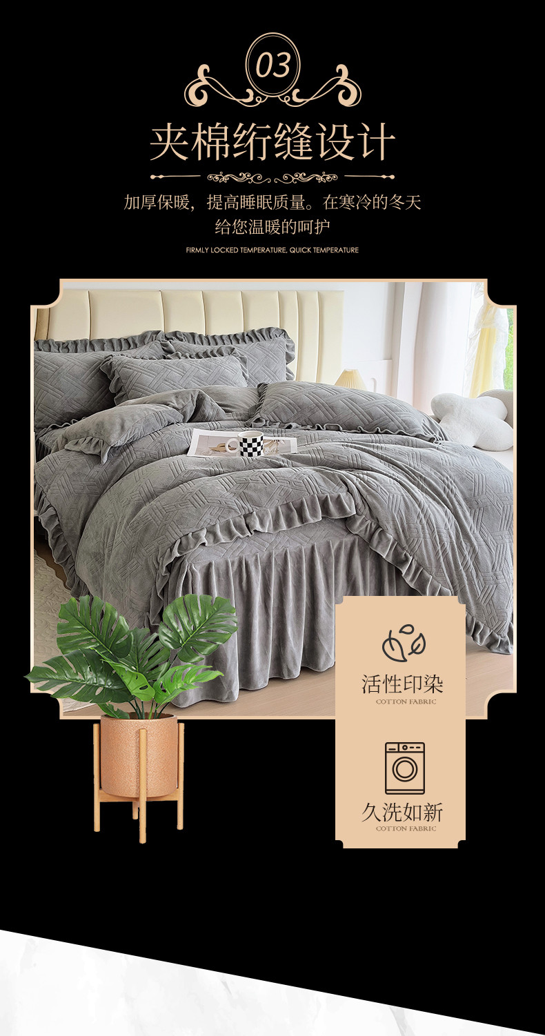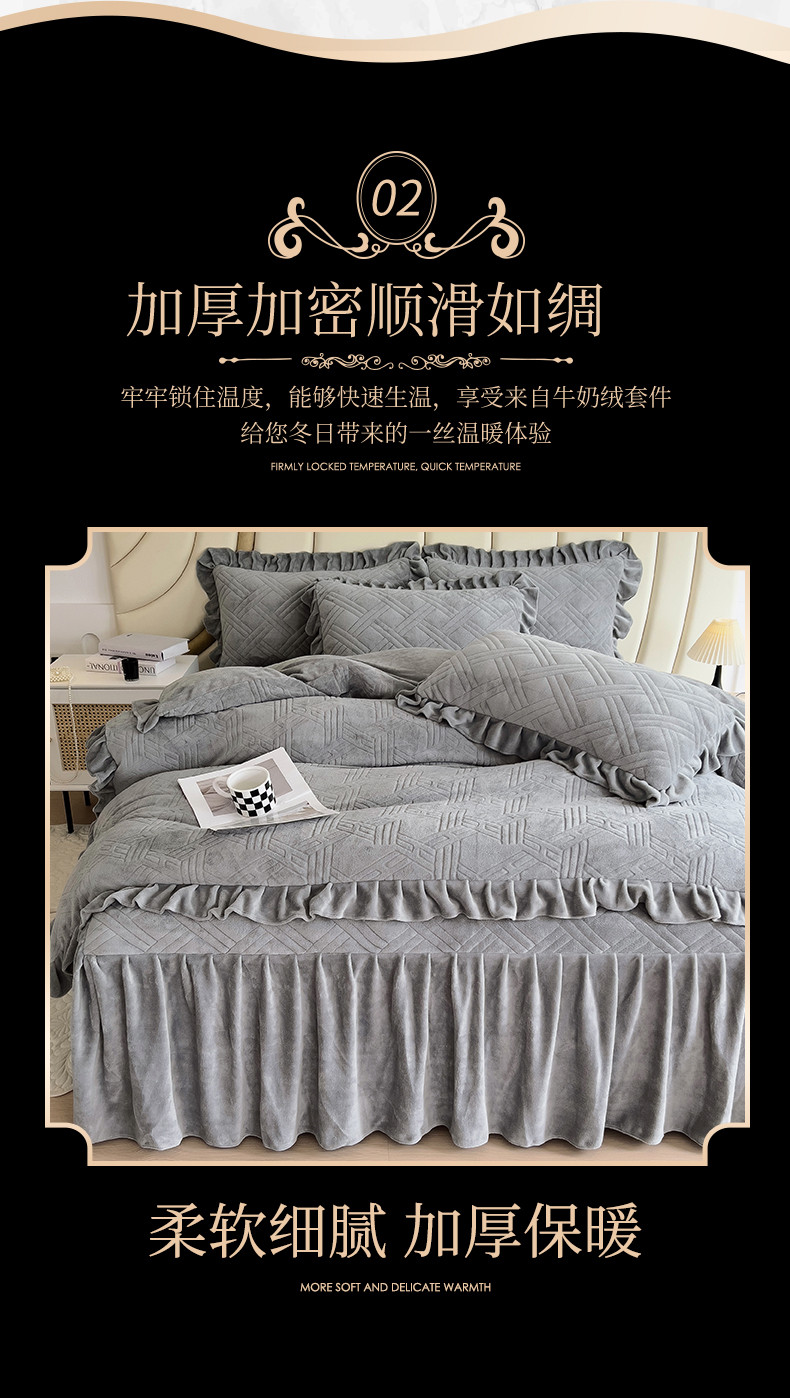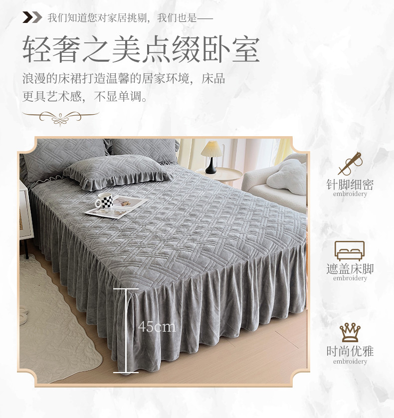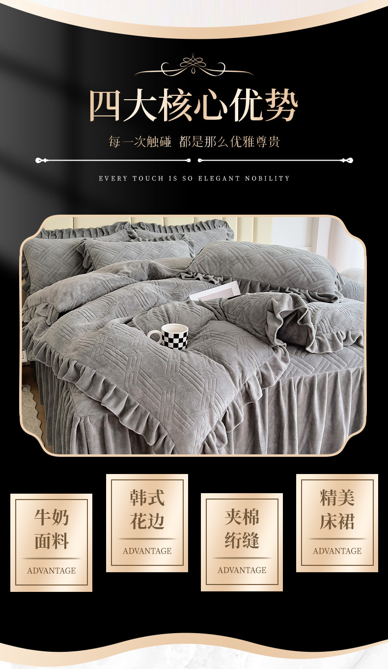 当前位置: 91家纺网 > 商品网购 > 床品套件 > 四件套 > 牛奶绒四件套 > 十个点家纺 2024新款牛奶绒床裙四件套-欣雅 欣雅奶油灰