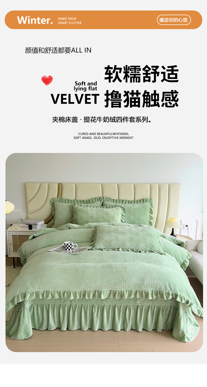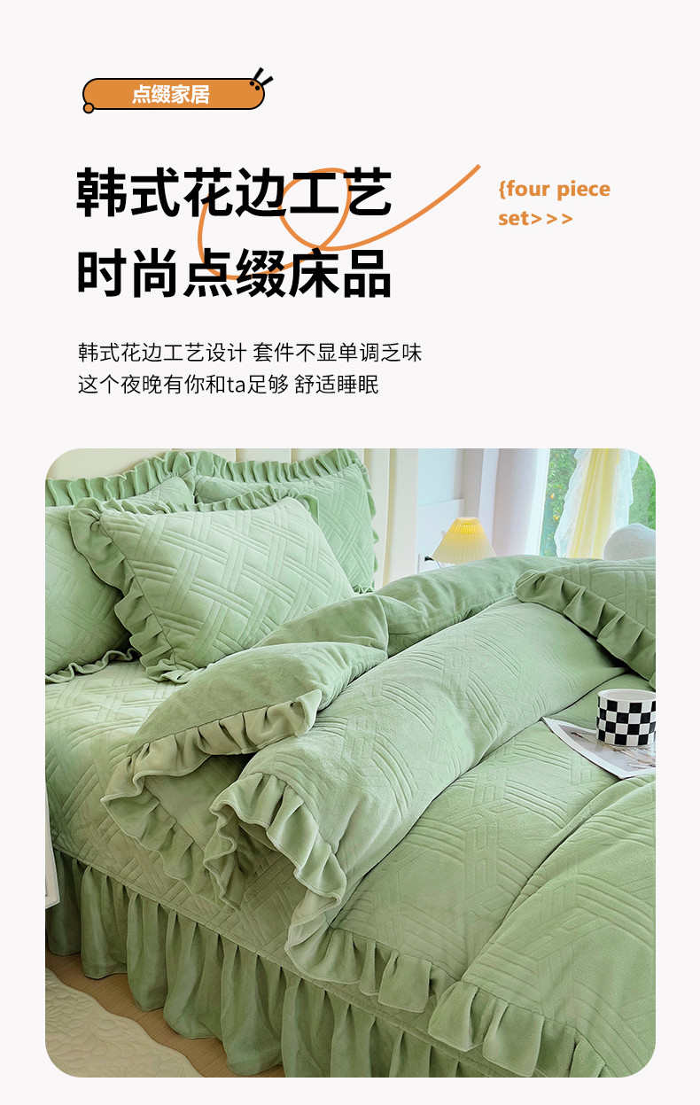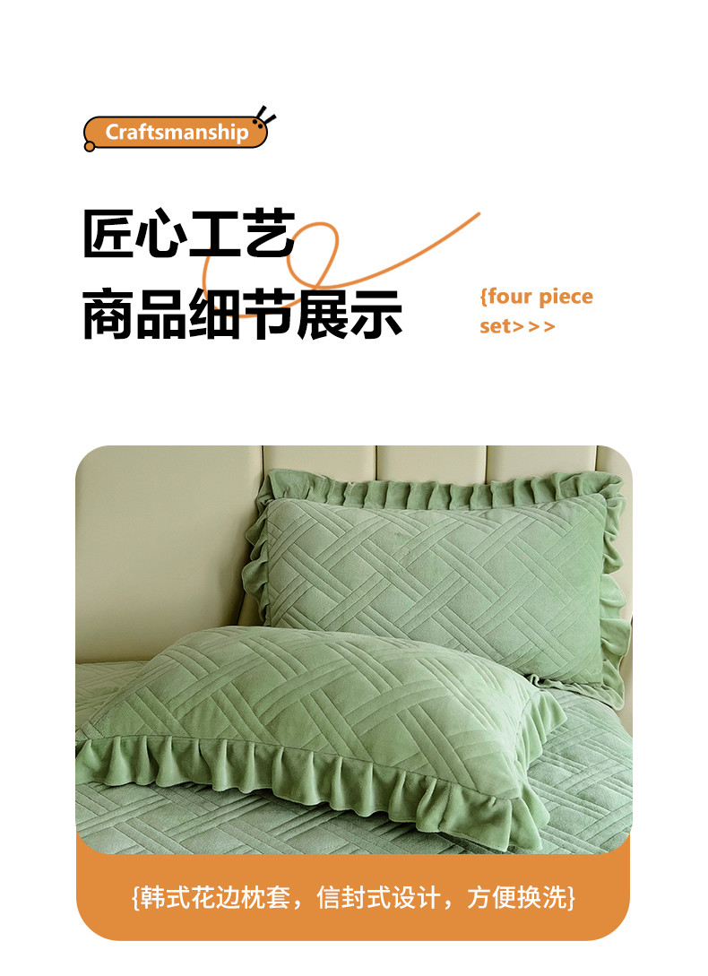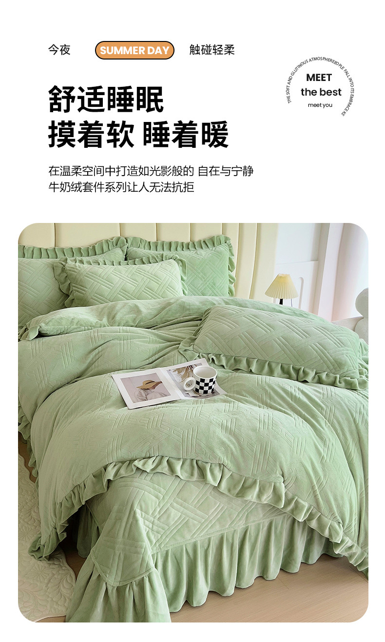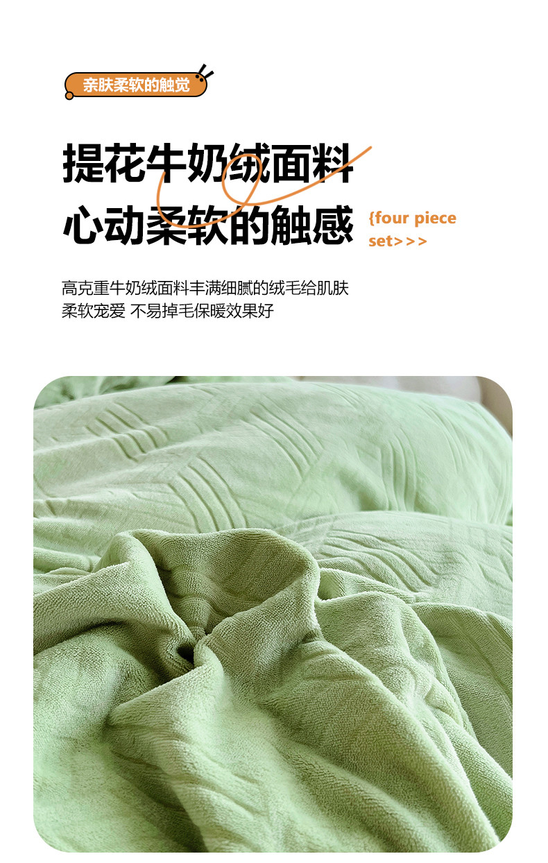 当前位置: 91家纺网 > 商品网购 > 床品套件 > 四件套 > 牛奶绒四件套 > 十个点家纺 2024新款牛奶绒欣雅床盖四件套 欣雅-奶油绿