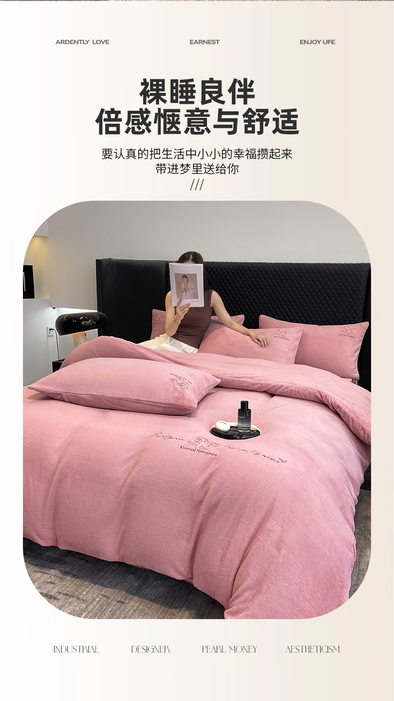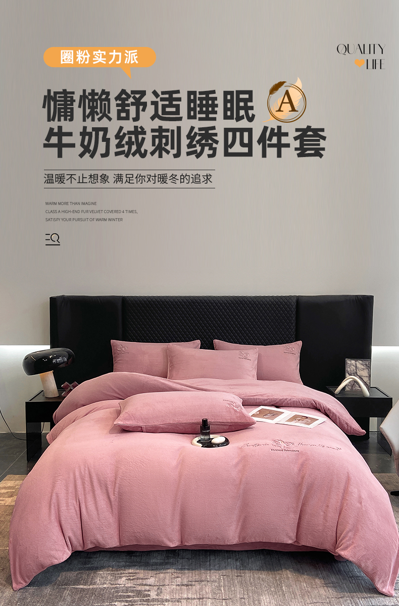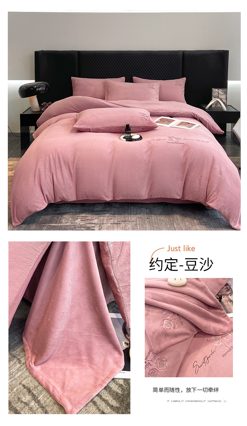 商品名称:家居1号家纺 2024新款230克全工艺牛奶绒四件套 约定 约定-豆沙