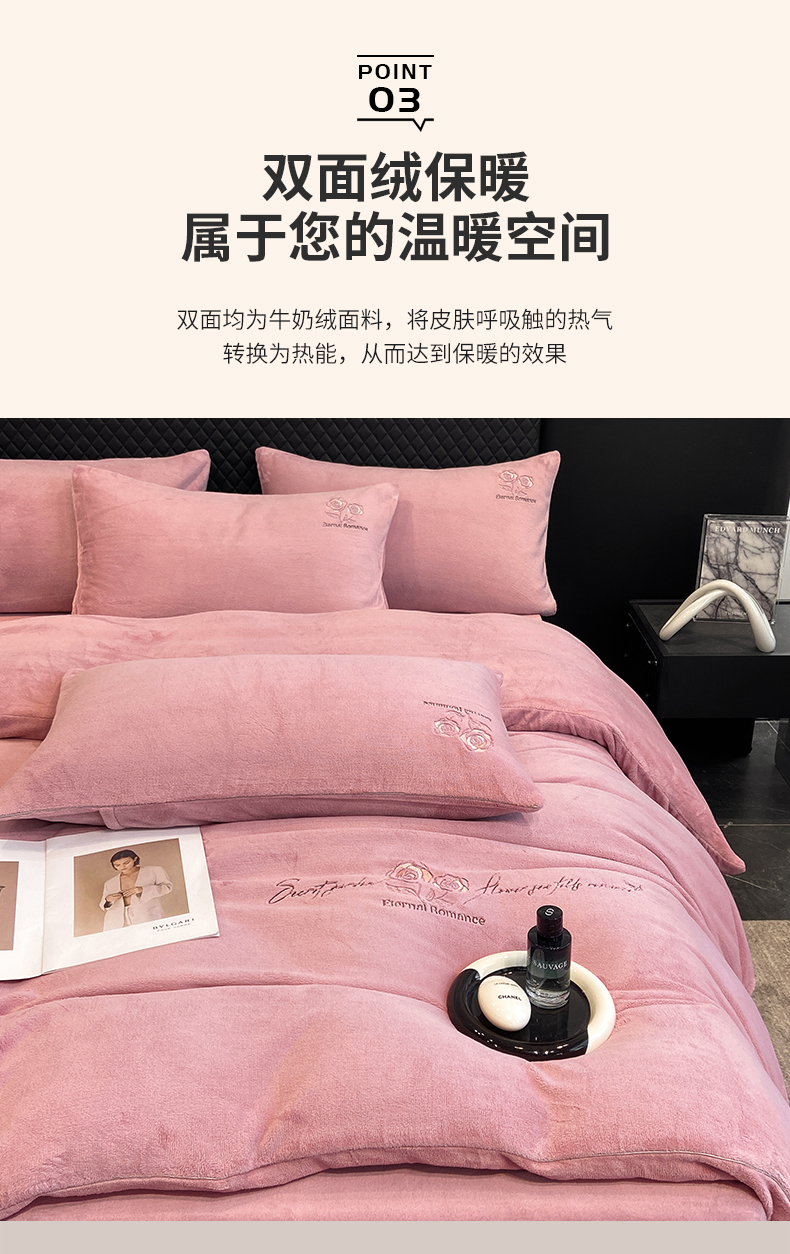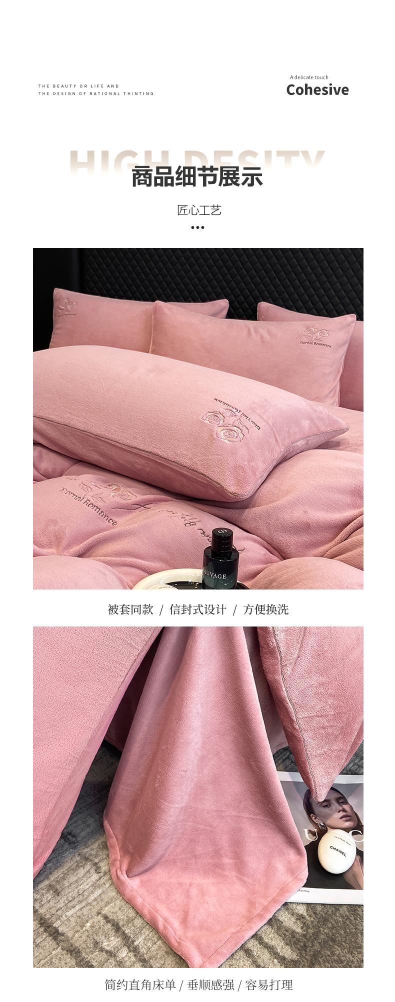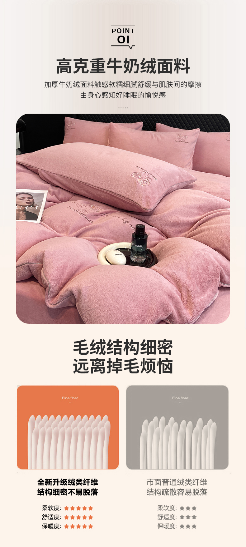 商品名称:家居1号家纺 2024新款230克全工艺牛奶绒四件套 约定 约定-豆沙