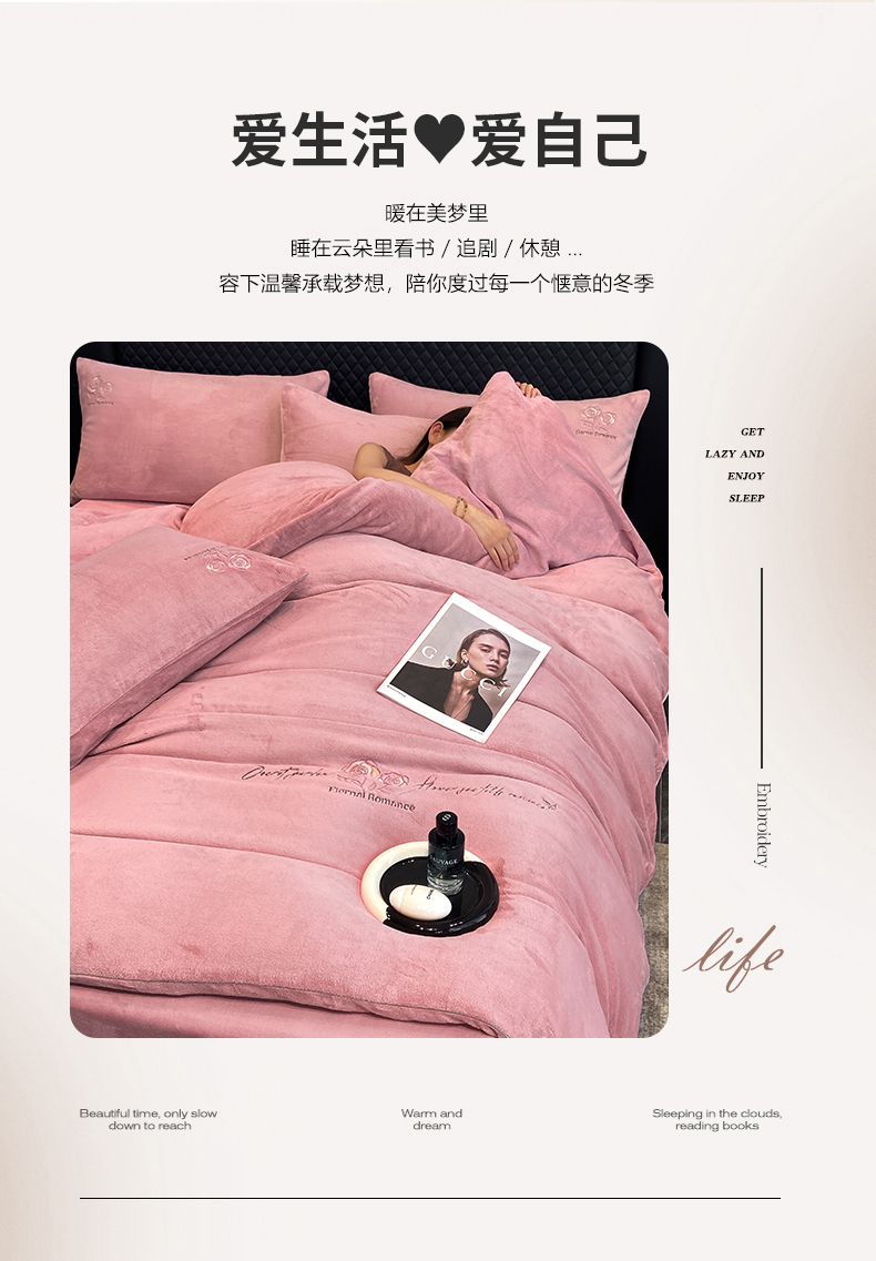 家居1号家纺 2024新款230克全工艺牛奶绒四件套 约定 约定-豆沙
