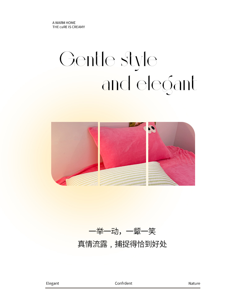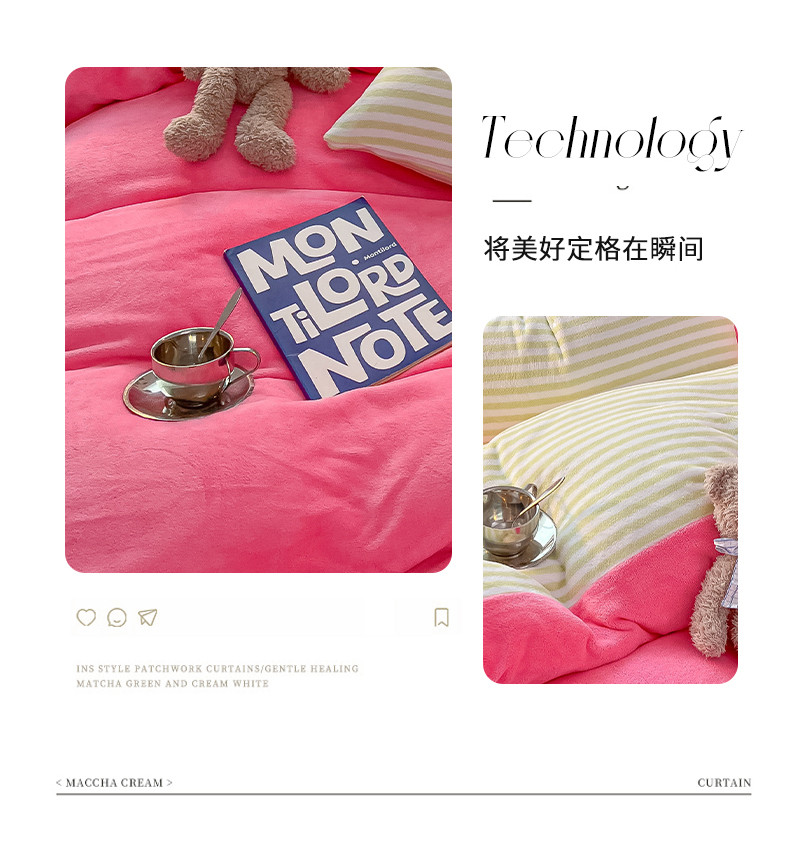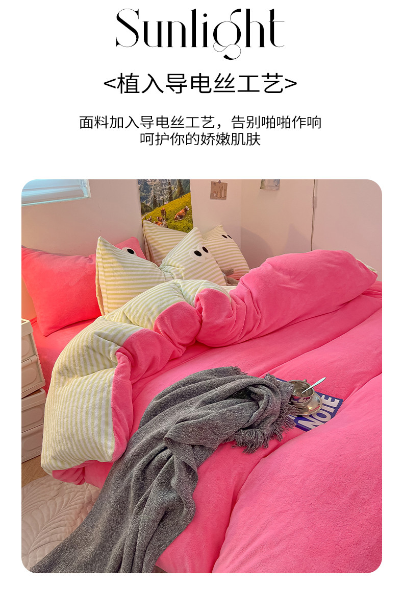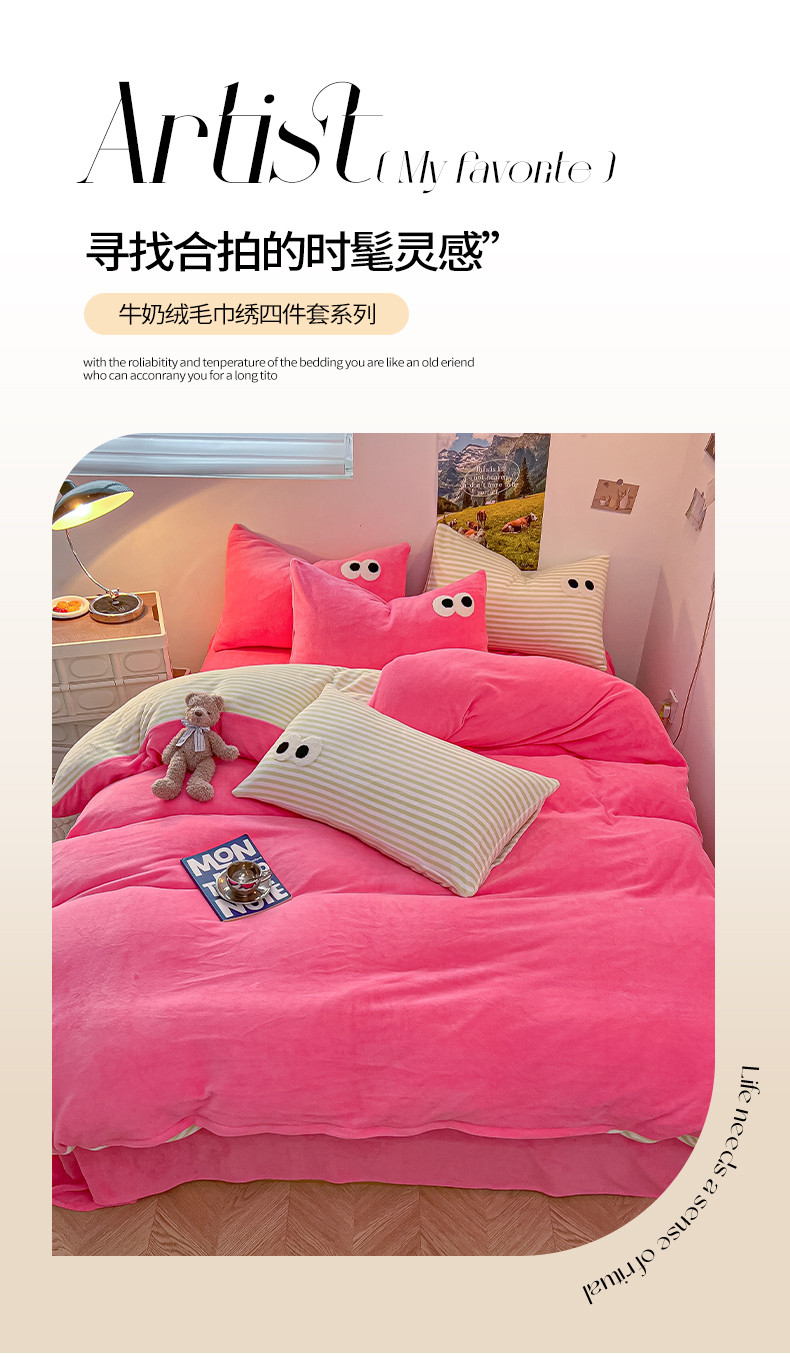 商品名称:韩都家居 2023新款加厚牛奶绒拼色四件套 大眼-玫红