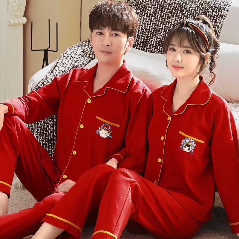 当前位置: 91家纺网 > 商品网购 > 居家日用 > 睡衣 > 洛兰沙家居馆【只代发】【只代发】 2023新款结婚喜庆情侣睡袍纯棉长袖春秋本命年新娘睡衣红色男女士家居服 红色男52013