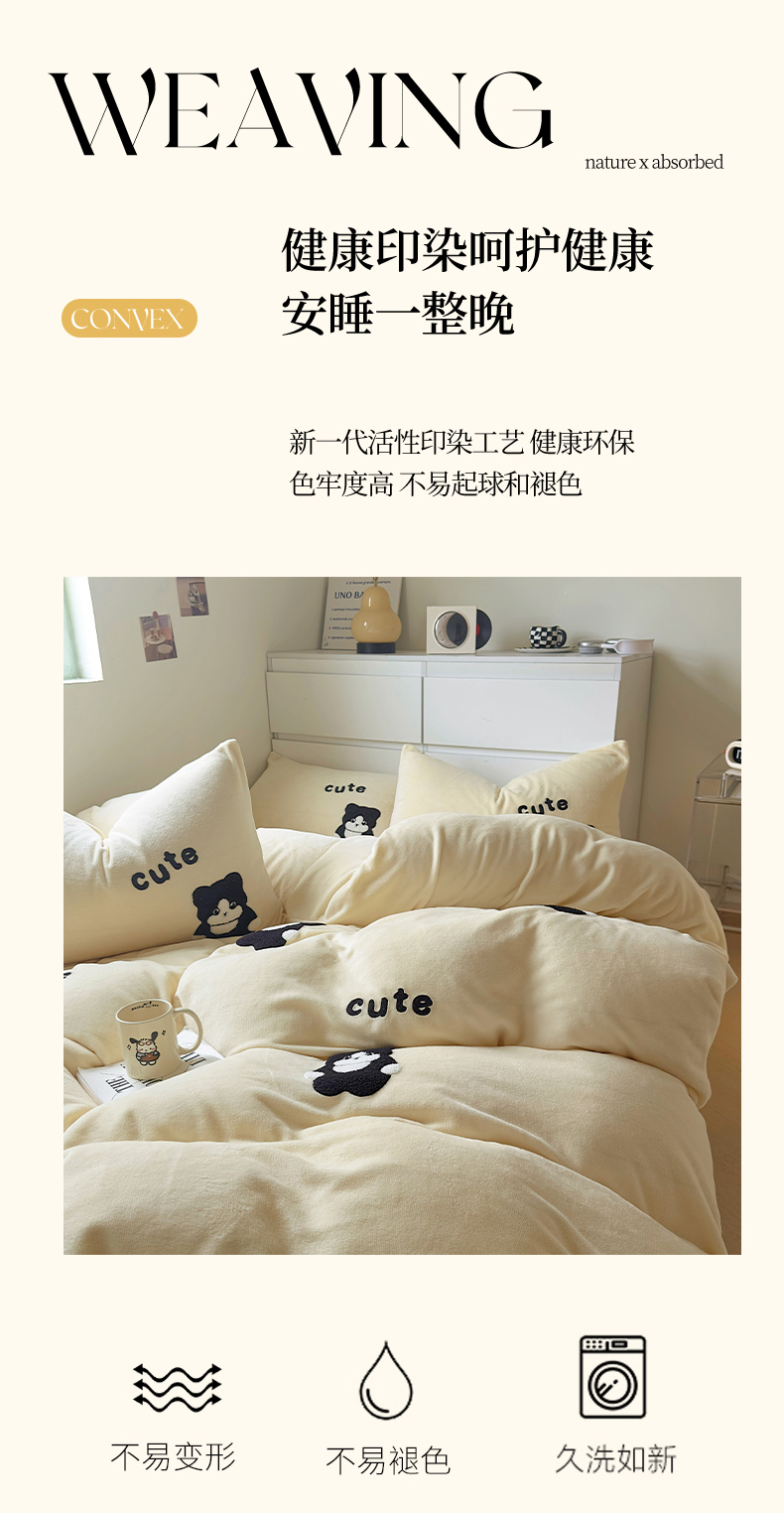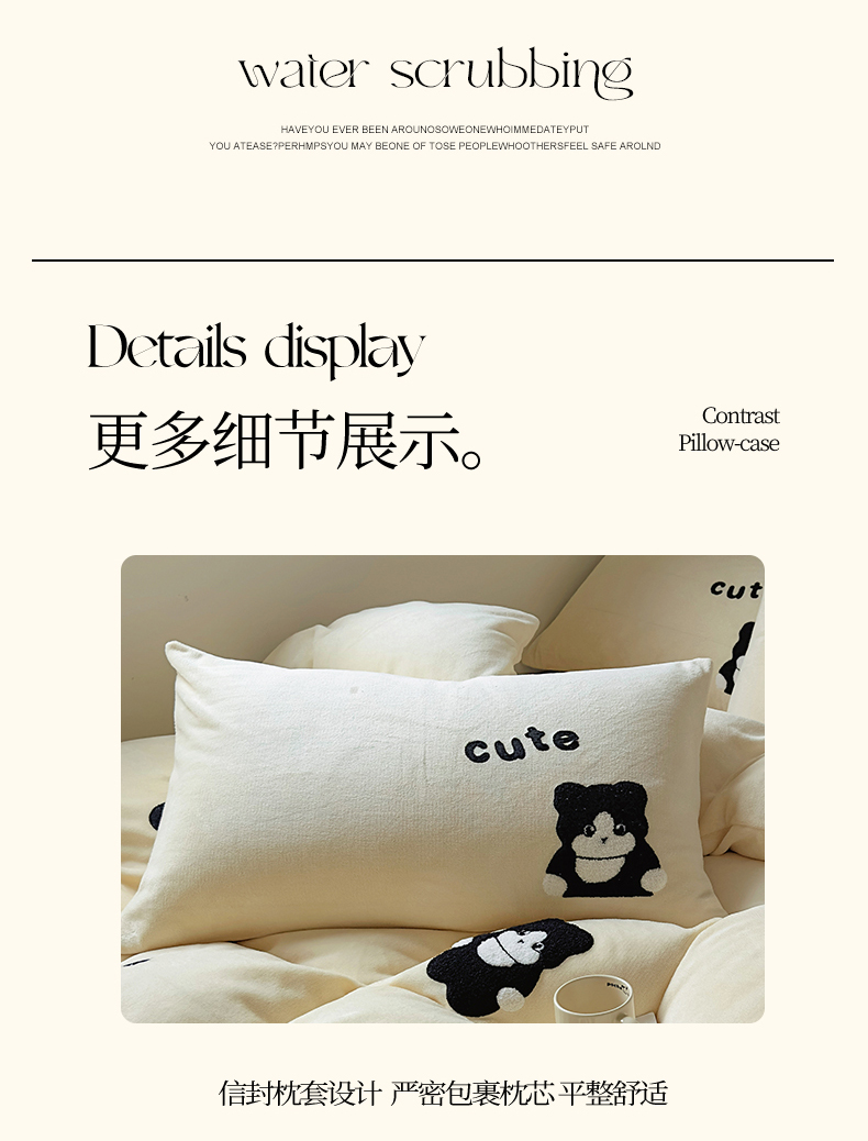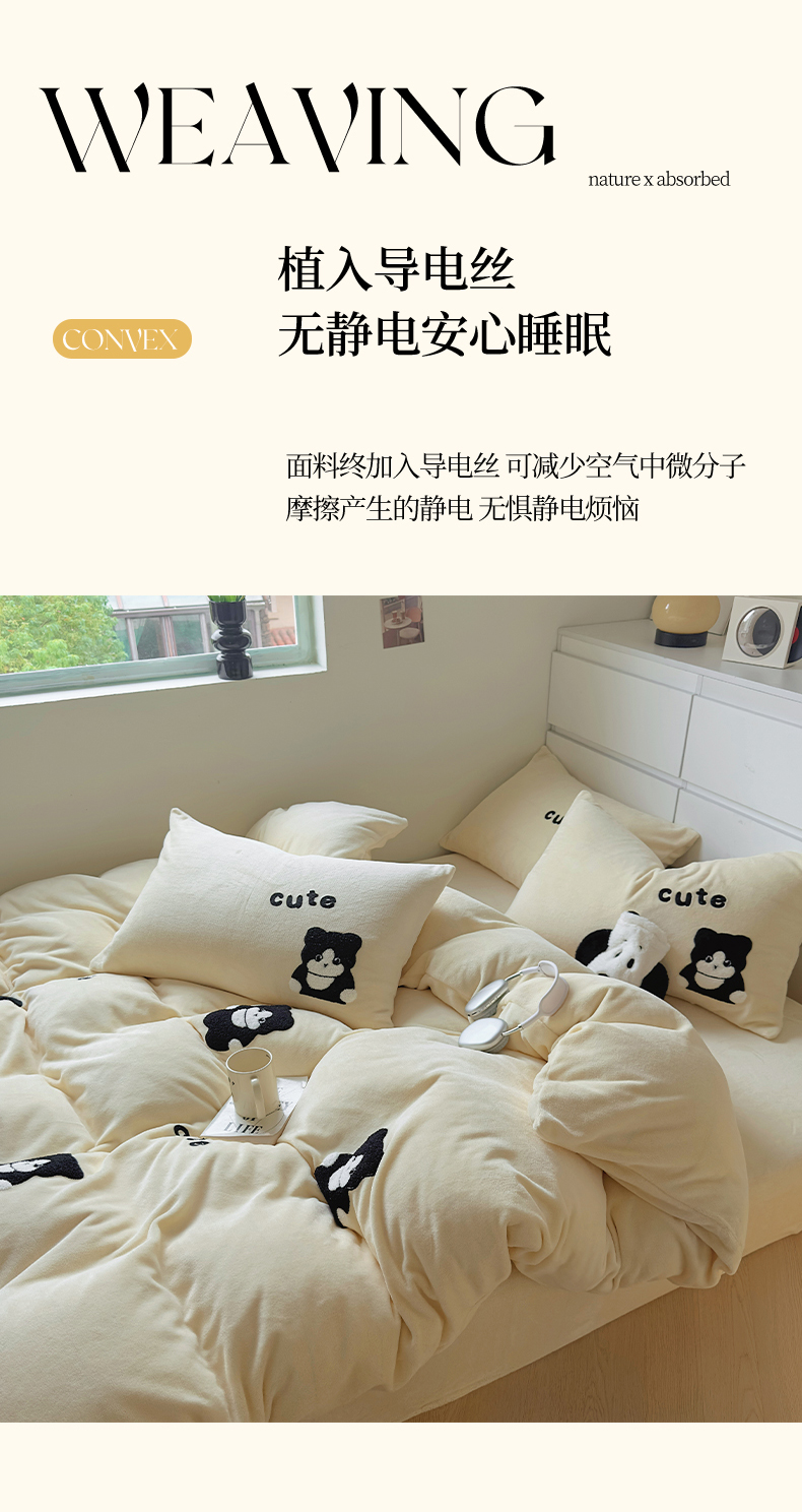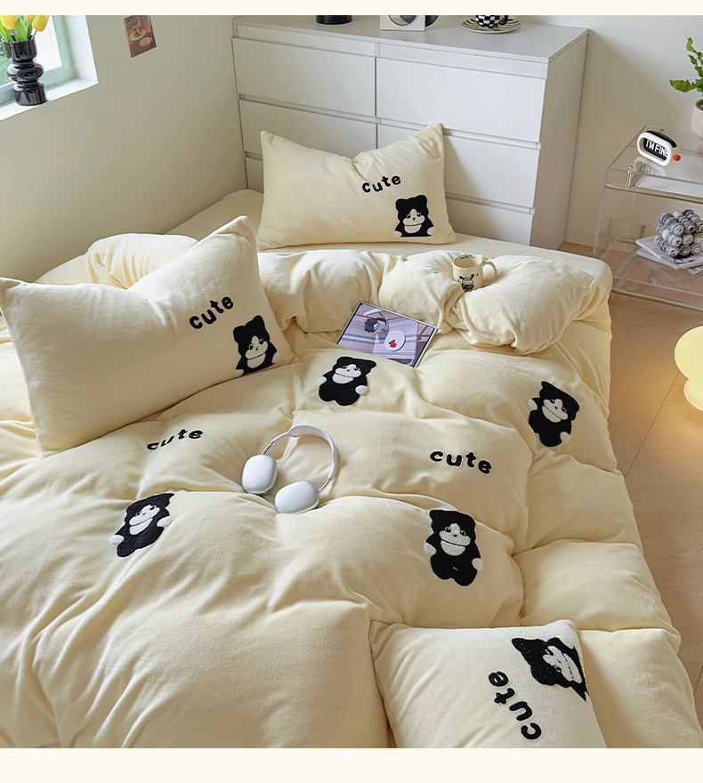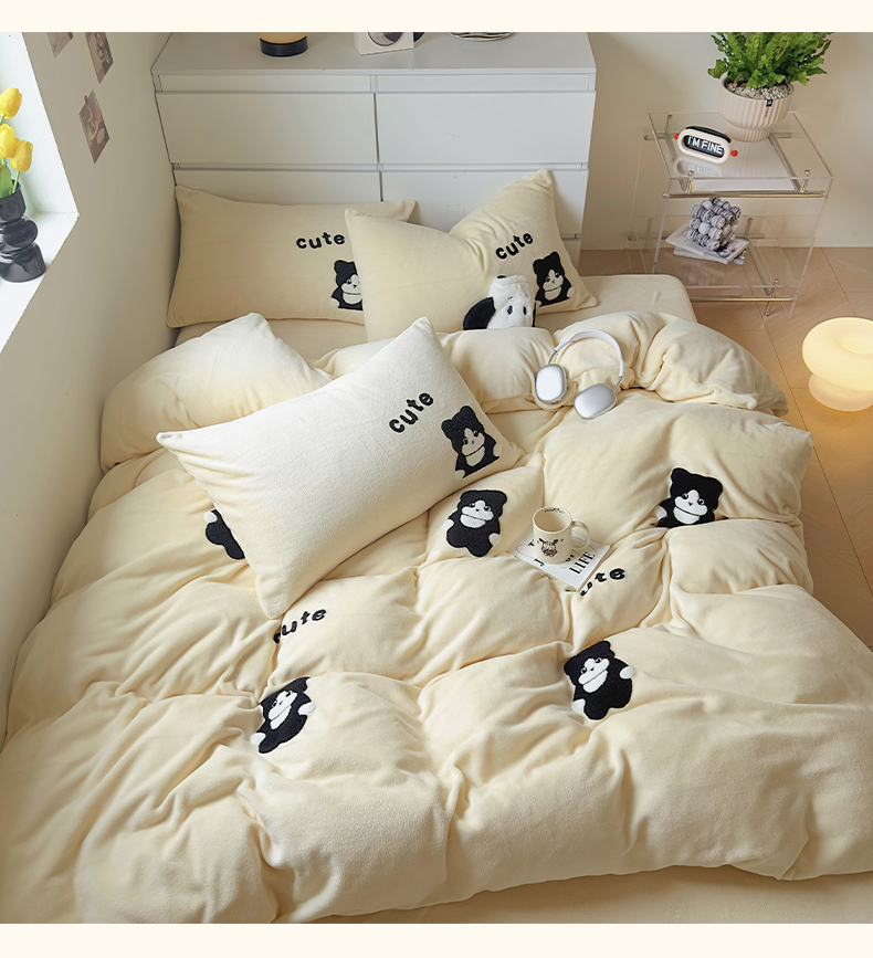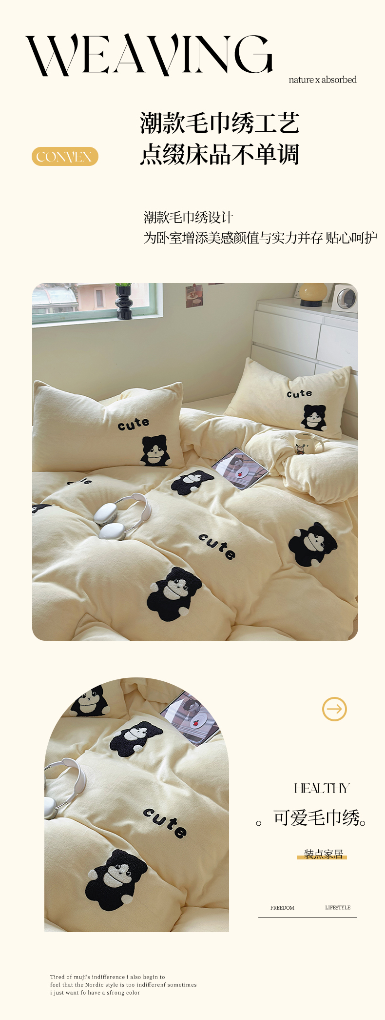 商品名称:山茶家纺 2023新款高克重牛奶绒贴布绣毛巾绣四件套 欧气小狗-米黄
