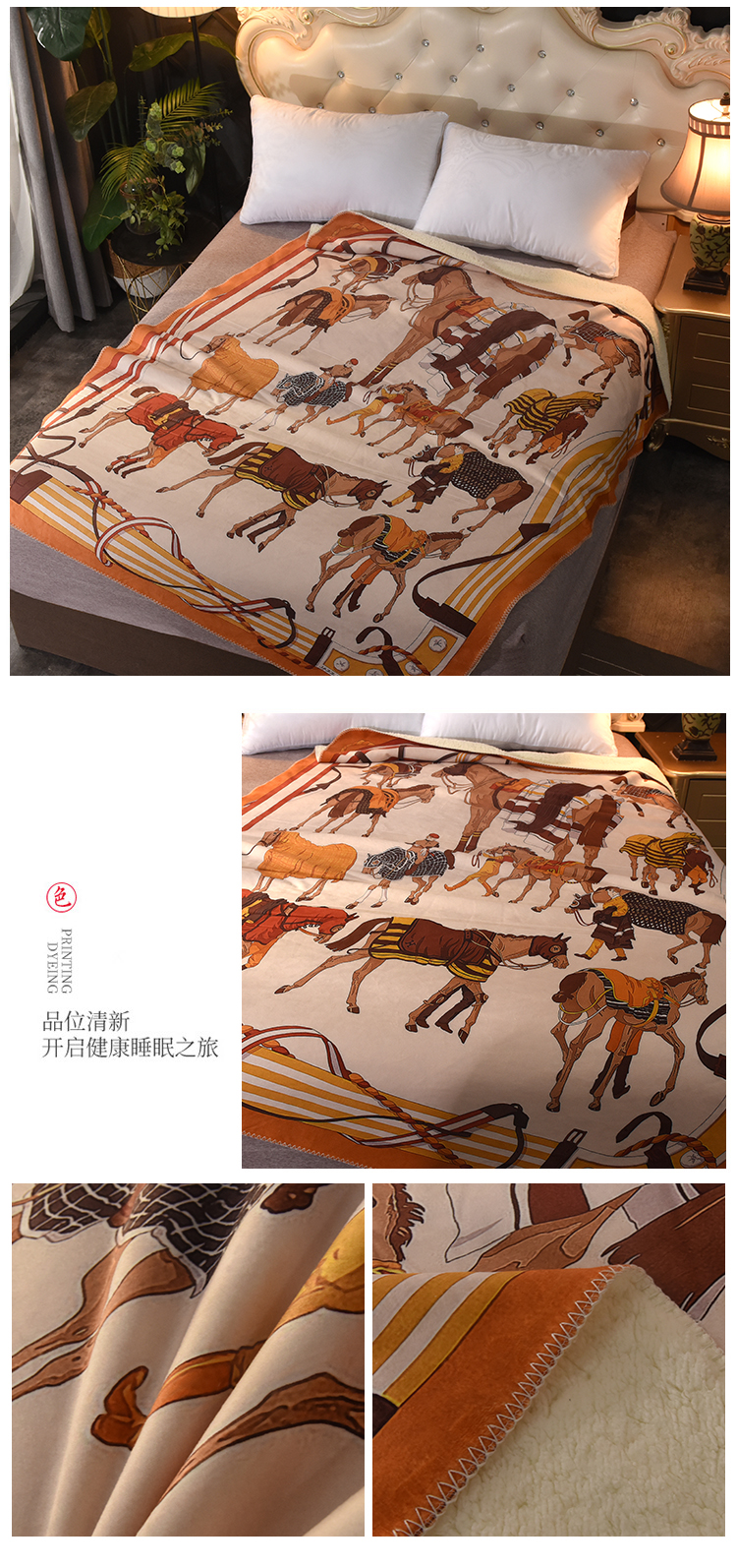 商品名称:爵仕家纺 2023新款羊羔绒毯宫廷风骏马系列 赛马场
