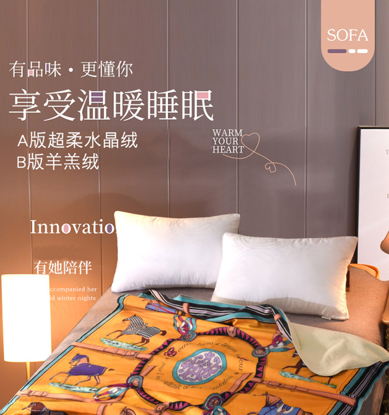 爵仕家纺 2023新款羊羔绒毯宫廷风骏马系列 赛马场
