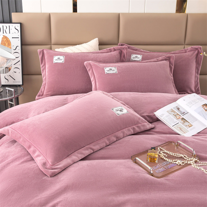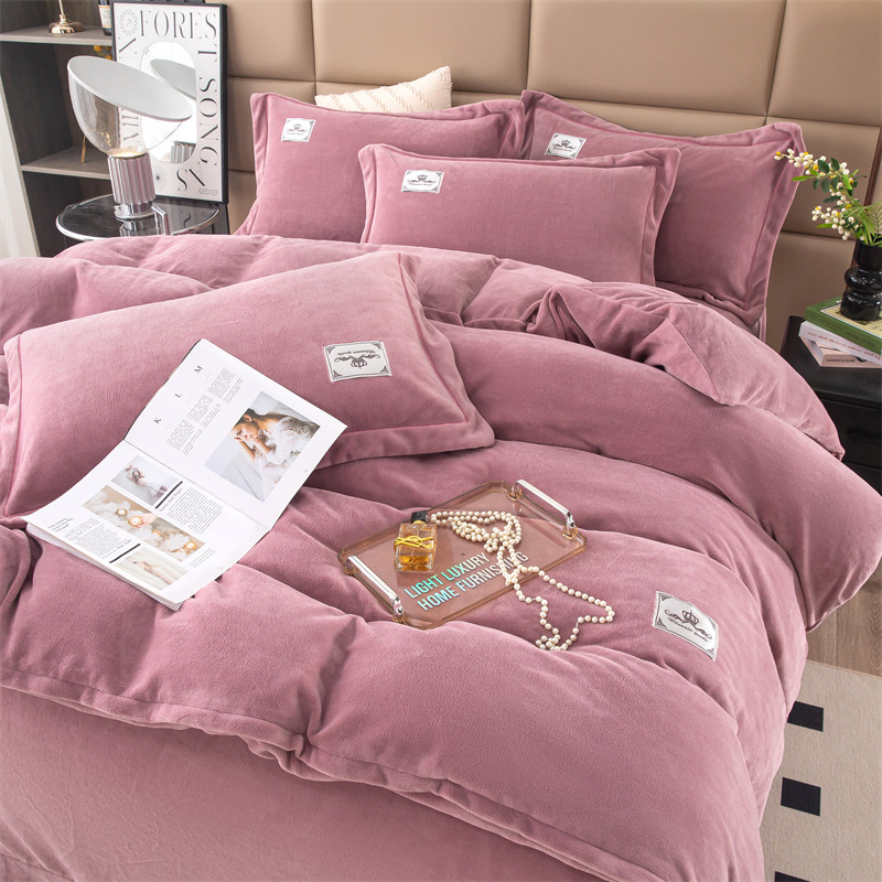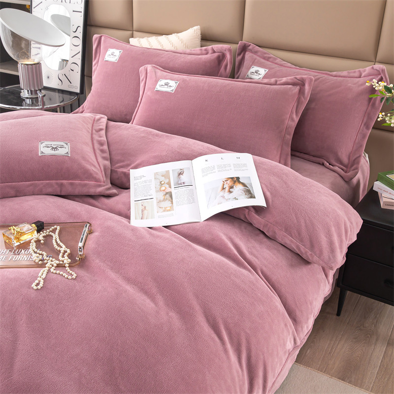 (总)畅畅家纺 2024新款高克重加厚保暖冬季牛奶绒纯色床盖款四件套,豆沙,灰色,天蓝,玉色,中国红