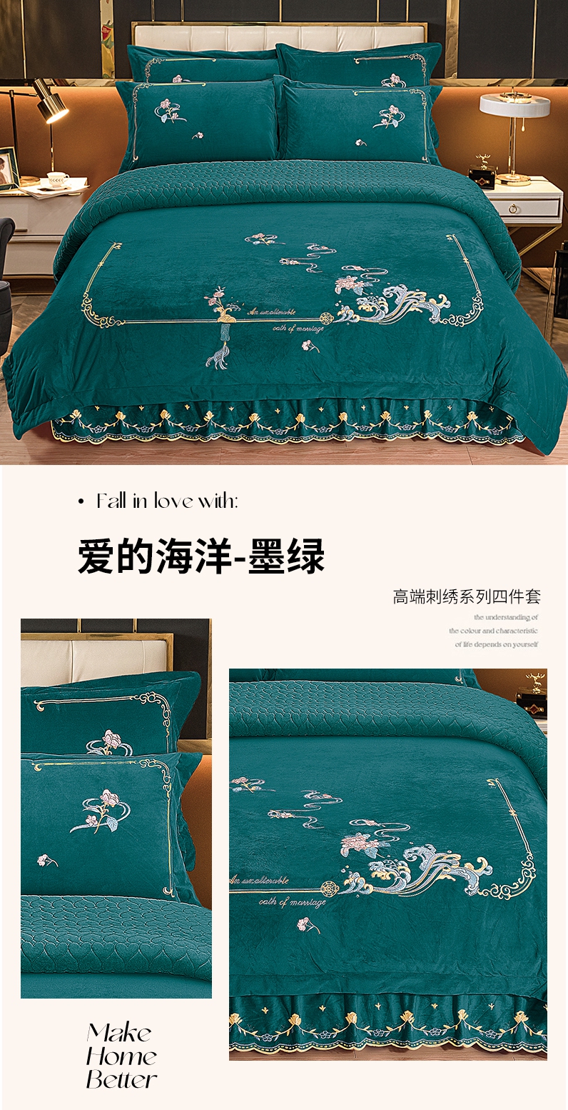 伊而梦蚊帐 2023新款宝宝绒刺绣床盖四件套--爱的海洋 爱的海洋-墨绿