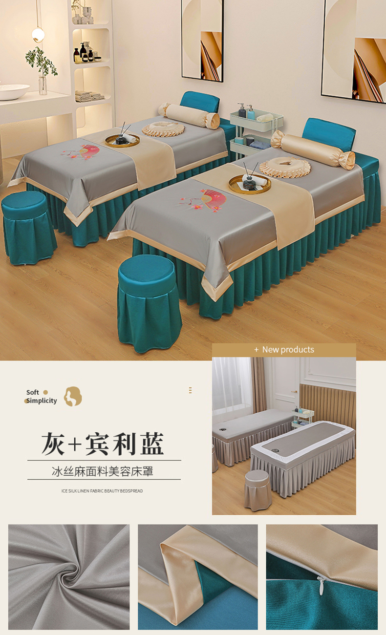 不打烊 2023新款冰丝美容床罩系列套件—扇子款(此款控价188) 扇子款灰+湖蓝被套灰色
