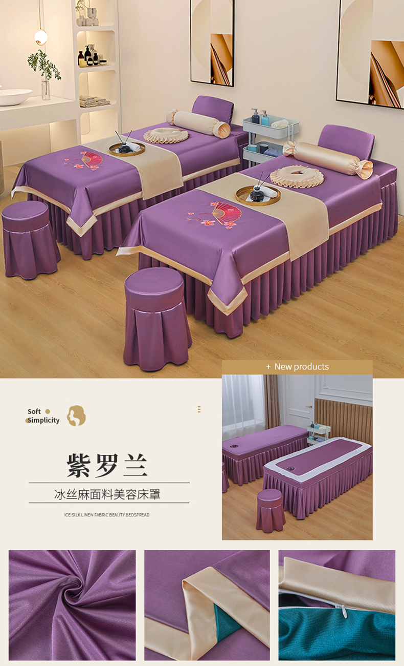 不打烊 2023新款冰丝美容床罩系列套件—扇子款(此款控价188) 扇子款紫色