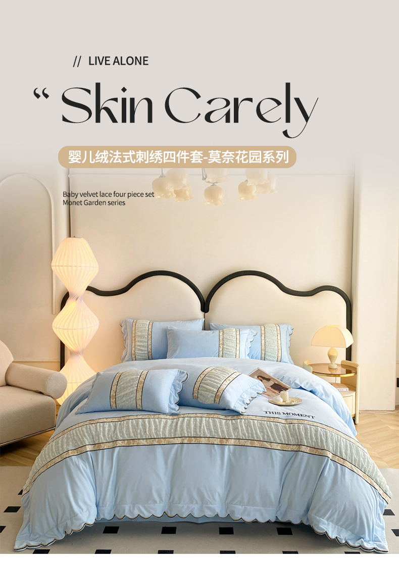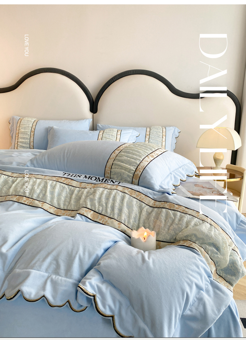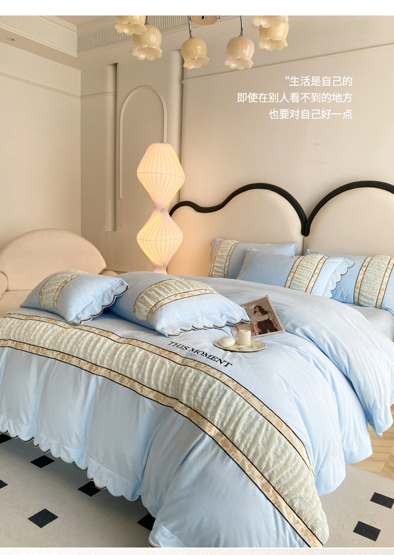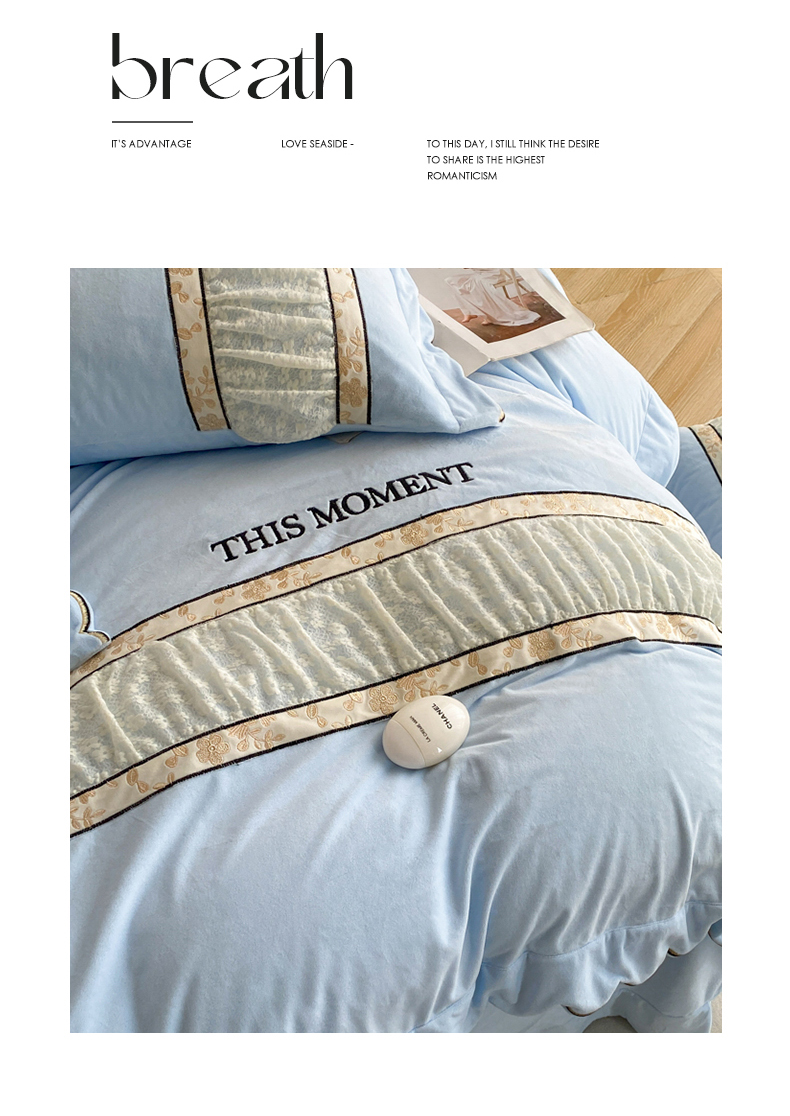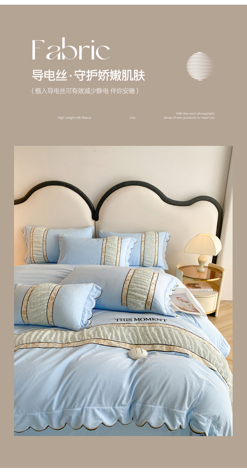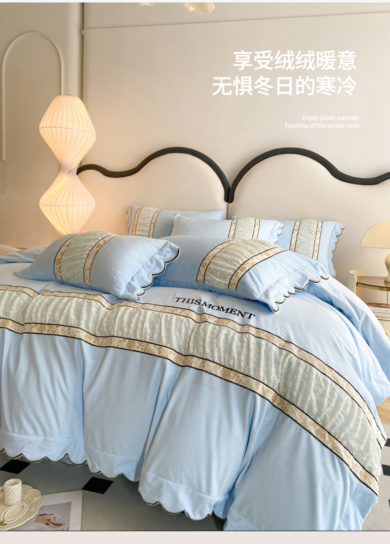 2023莫奈花园冬季-A类母婴230g高克重牛奶绒婴儿绒宝宝绒法式蕾丝刺绣绣花四件套 莫奈花园-星河蓝
