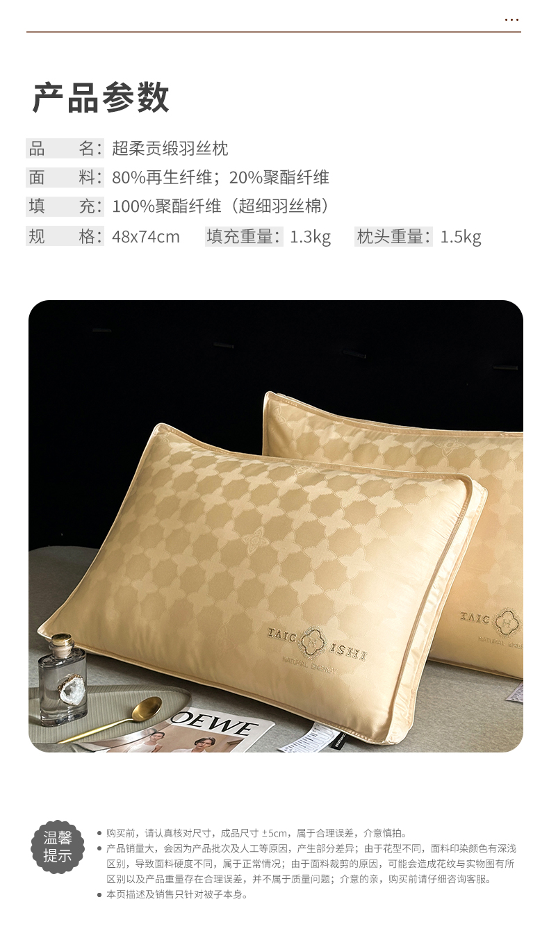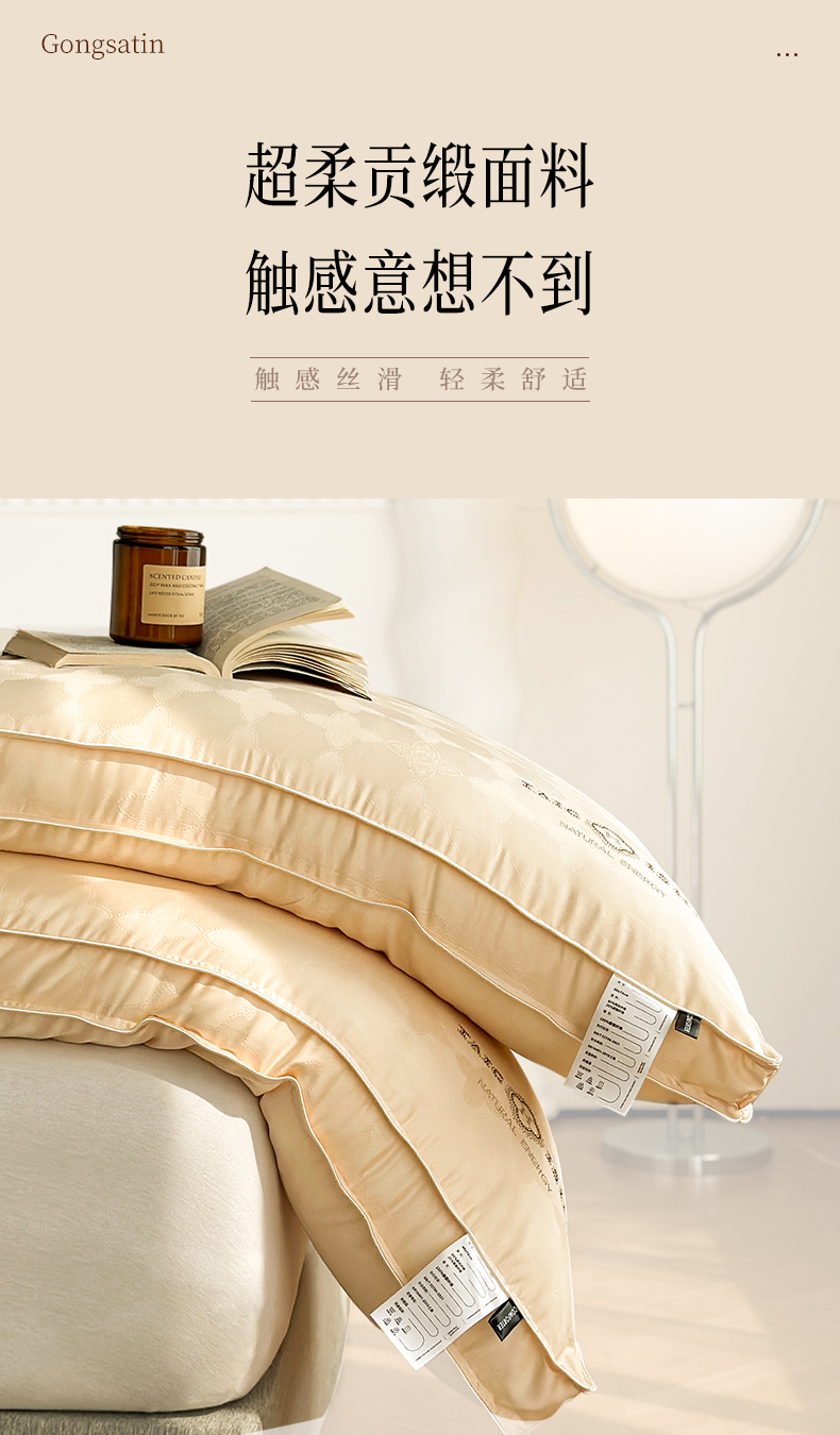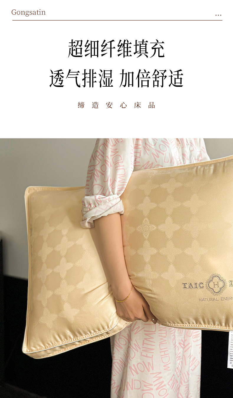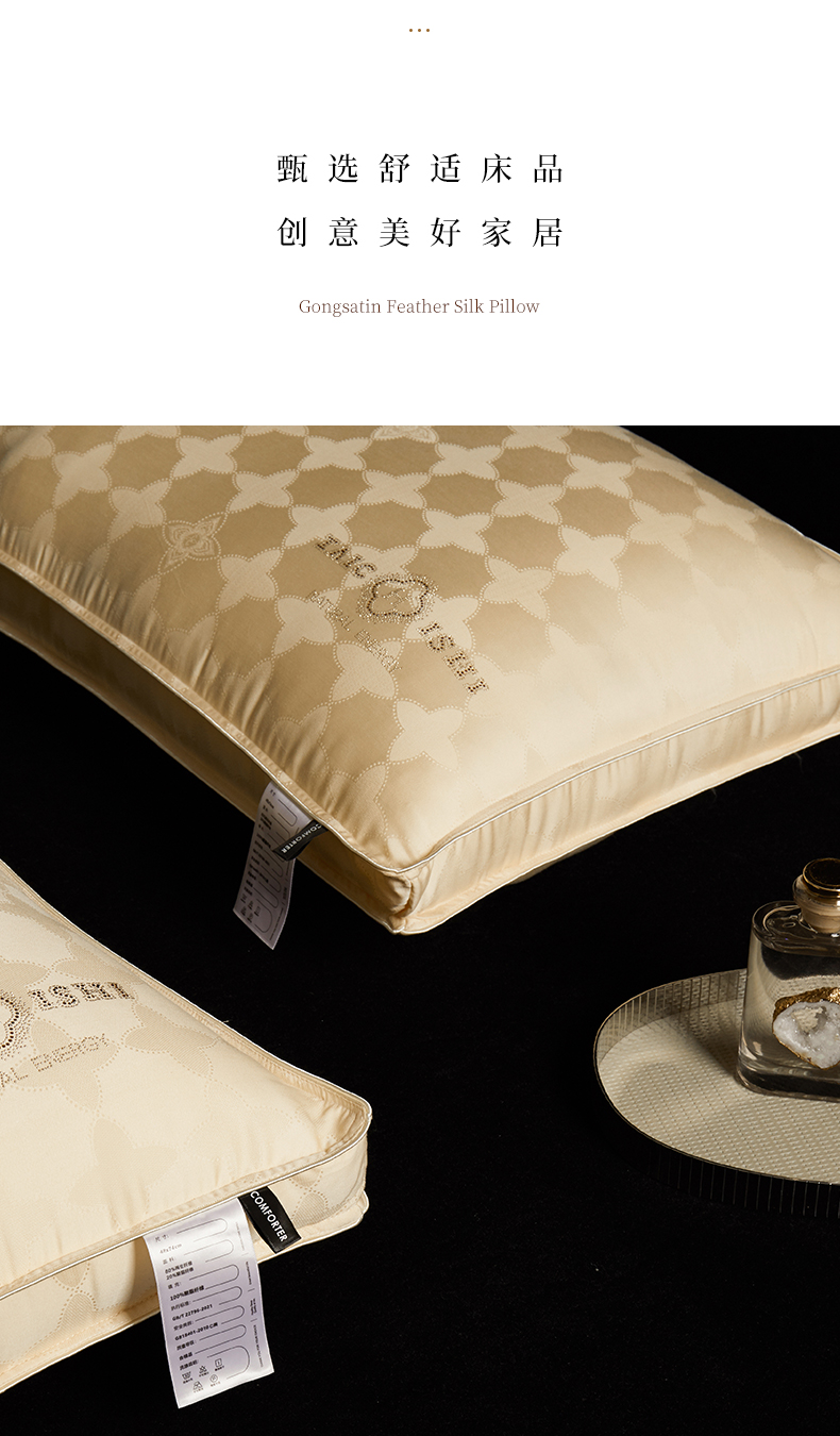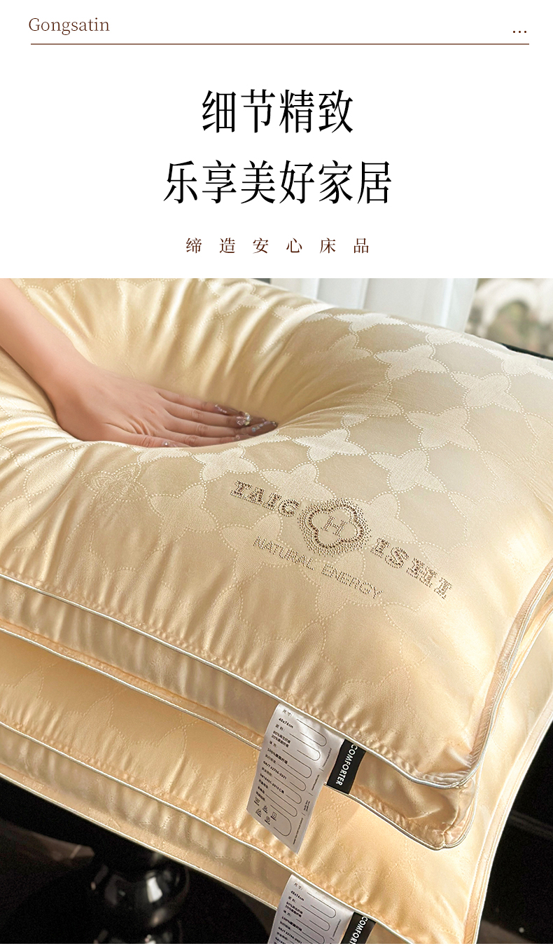 当前位置: 91家纺网 > 商品网购 > 枕头/枕芯/保健枕/颈椎枕 > 普通枕芯 > 元元被芯 2024新款60s天丝超柔贡缎提花羽丝枕 金色-风格三