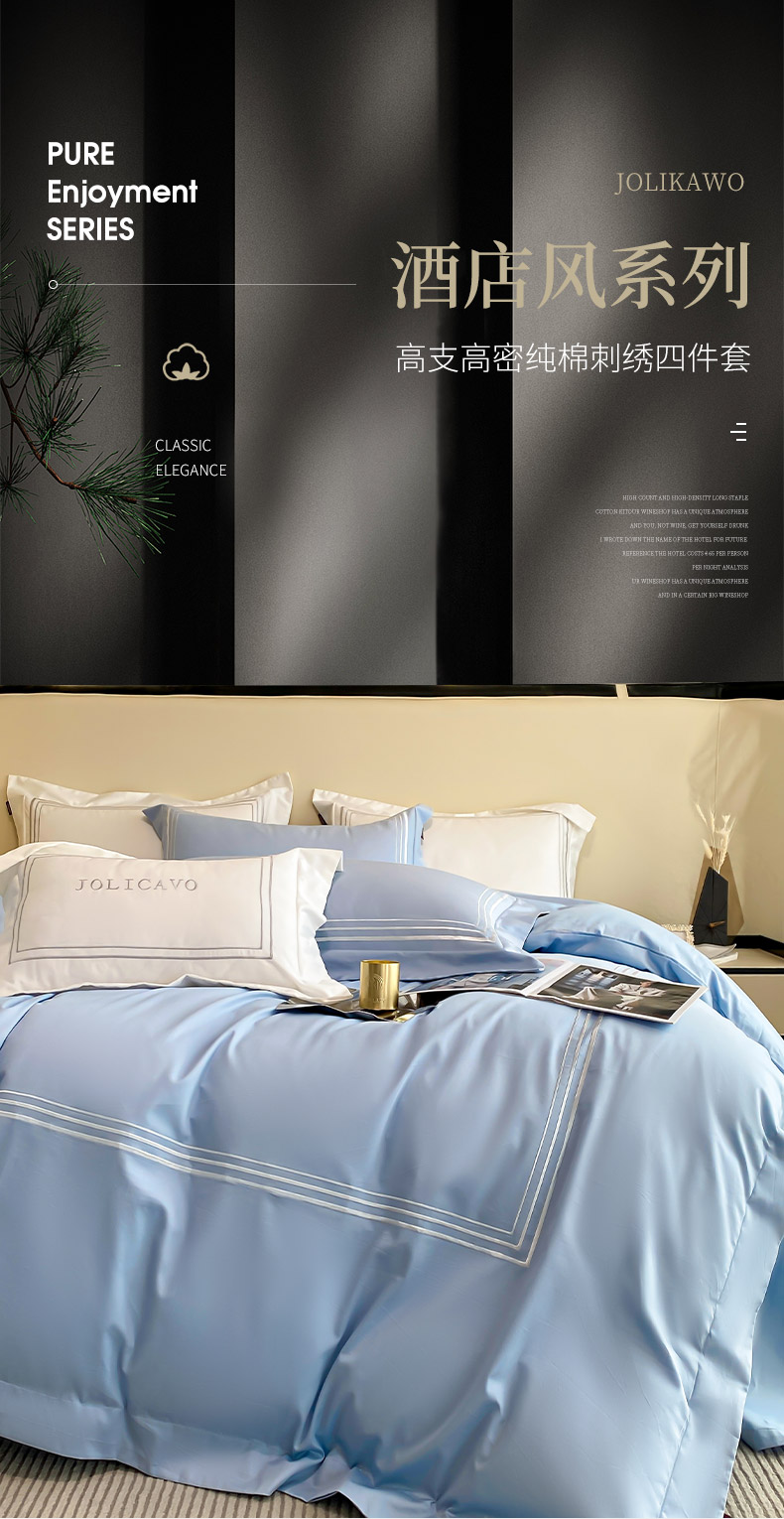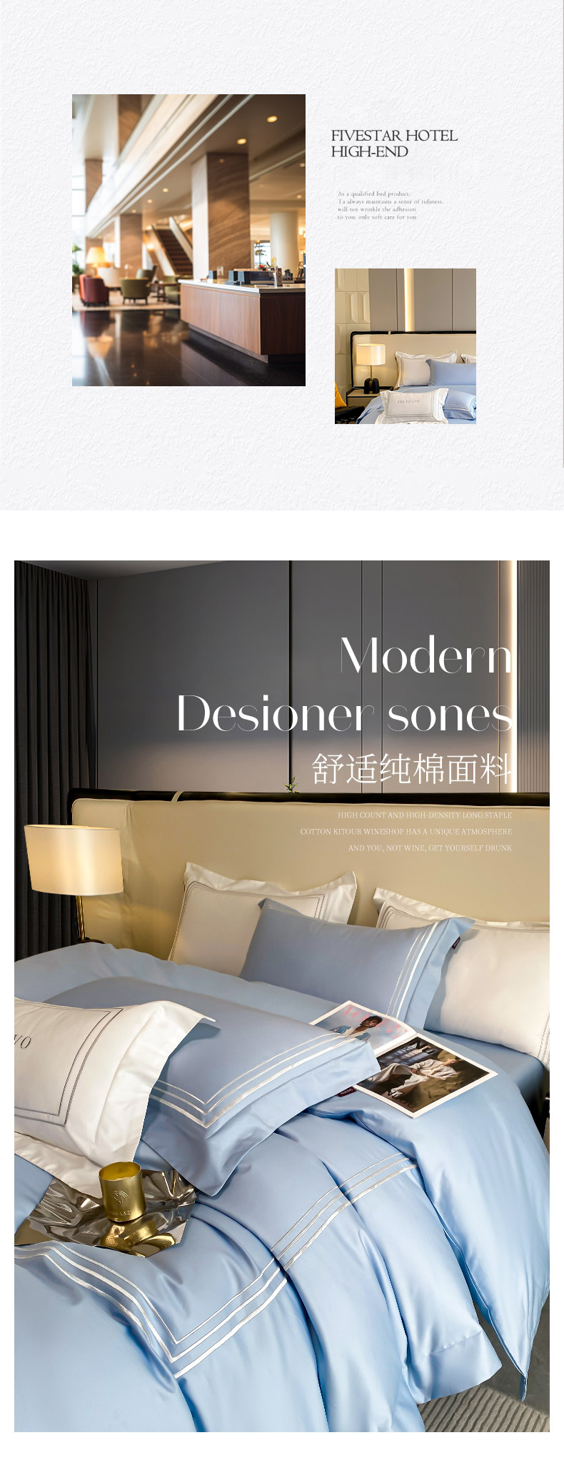 2024新款100支长绒棉酒店风四件套全棉纯棉纯色简约床单被套轻奢床笠款床上用品 洛卡-宾利蓝