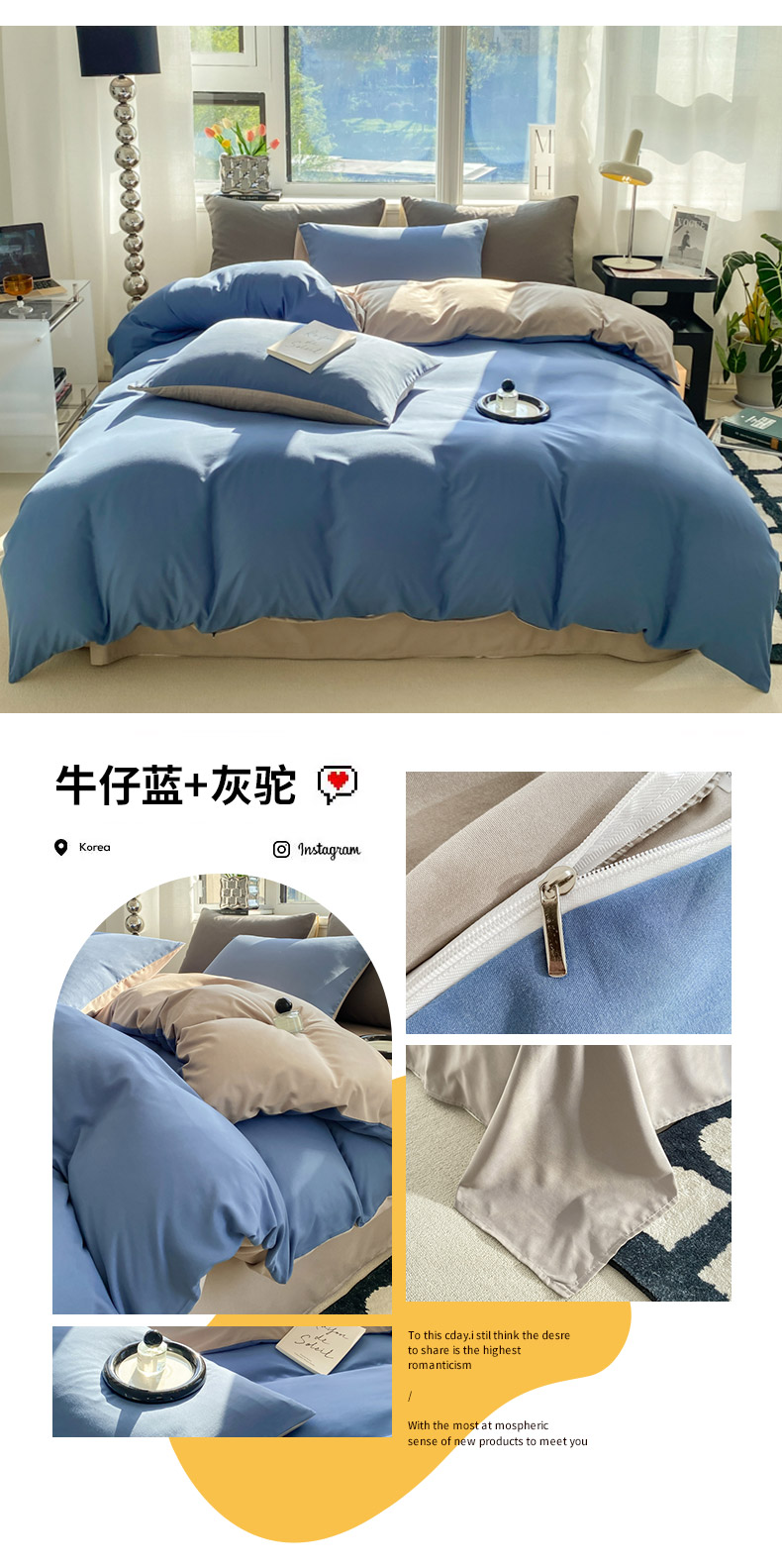 当前位置: 91家纺网 > 商品网购 > 床品套件 > 四件套 > 化纤普通四件套 > 芷凡家纺 2024新款亲肤棉纯色双拼四件套 牛仔蓝+灰驼