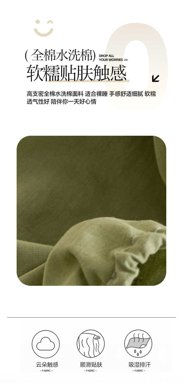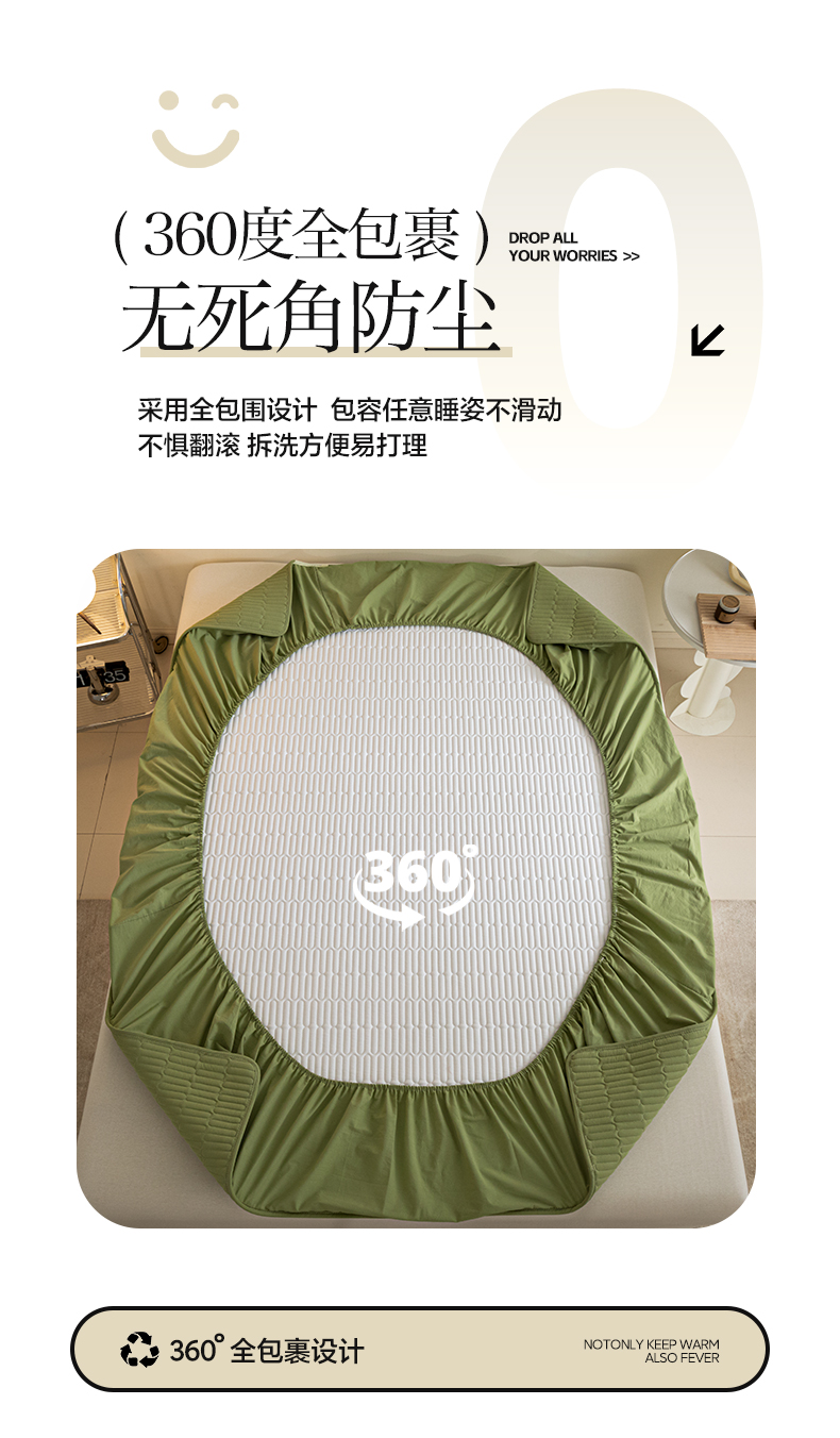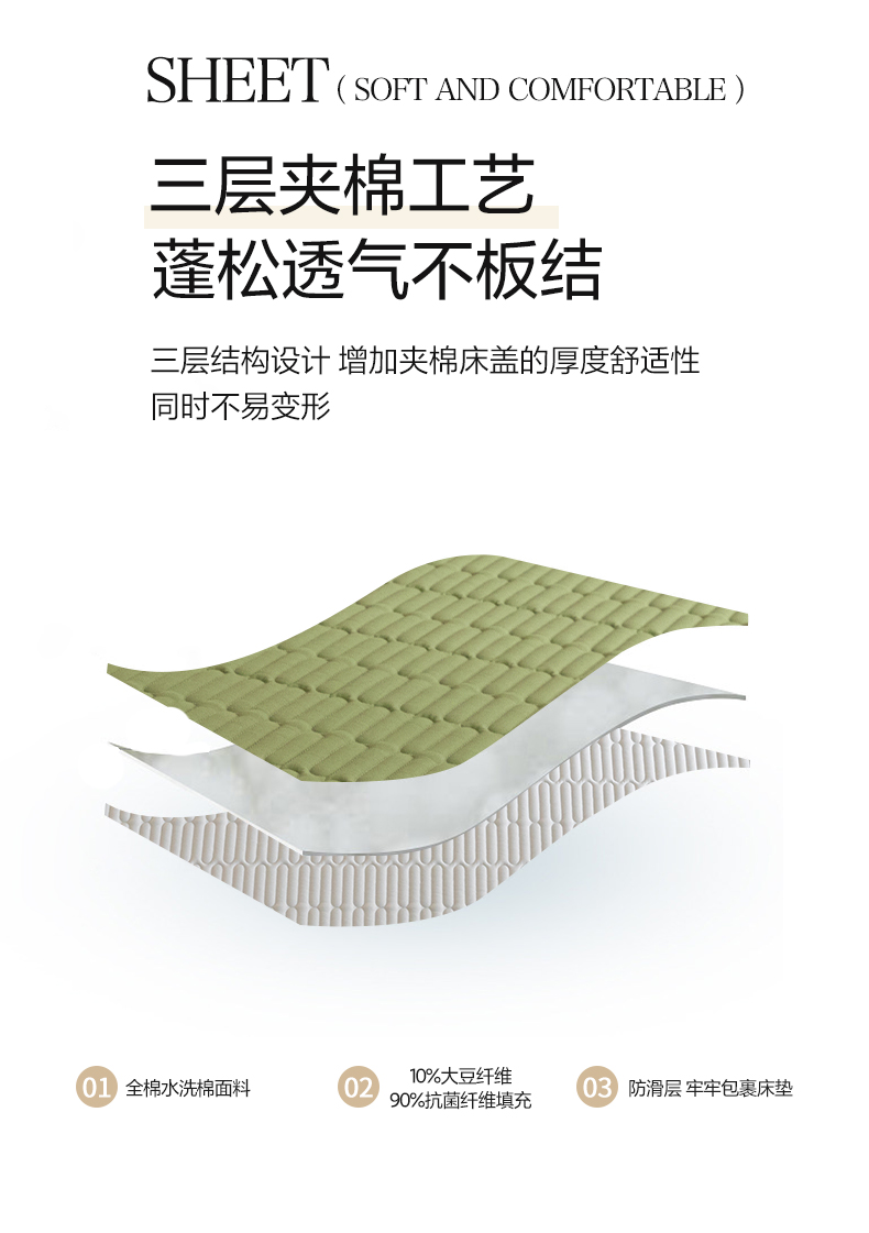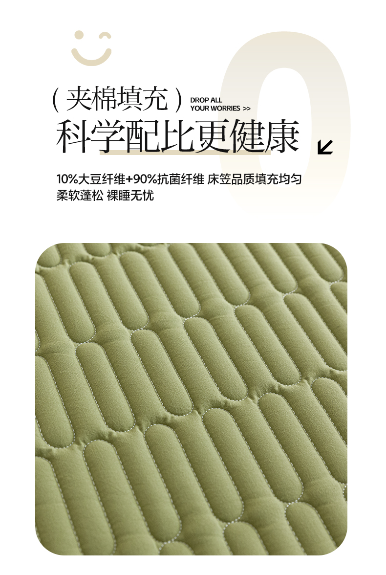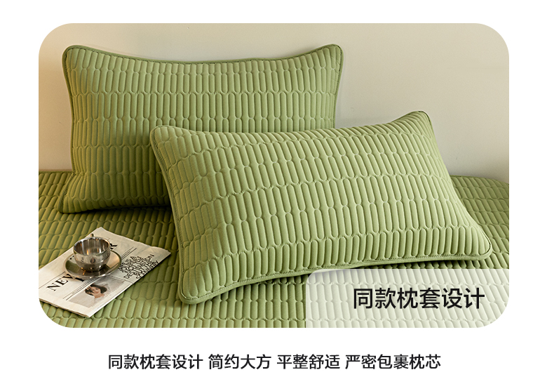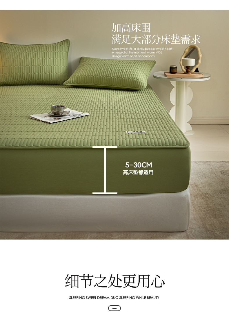 • 91家纺网 家纺一手货源 找家纺 芬晴家纺 2024新款纯棉水洗棉纯色夹棉床笠 漫游-豆绿