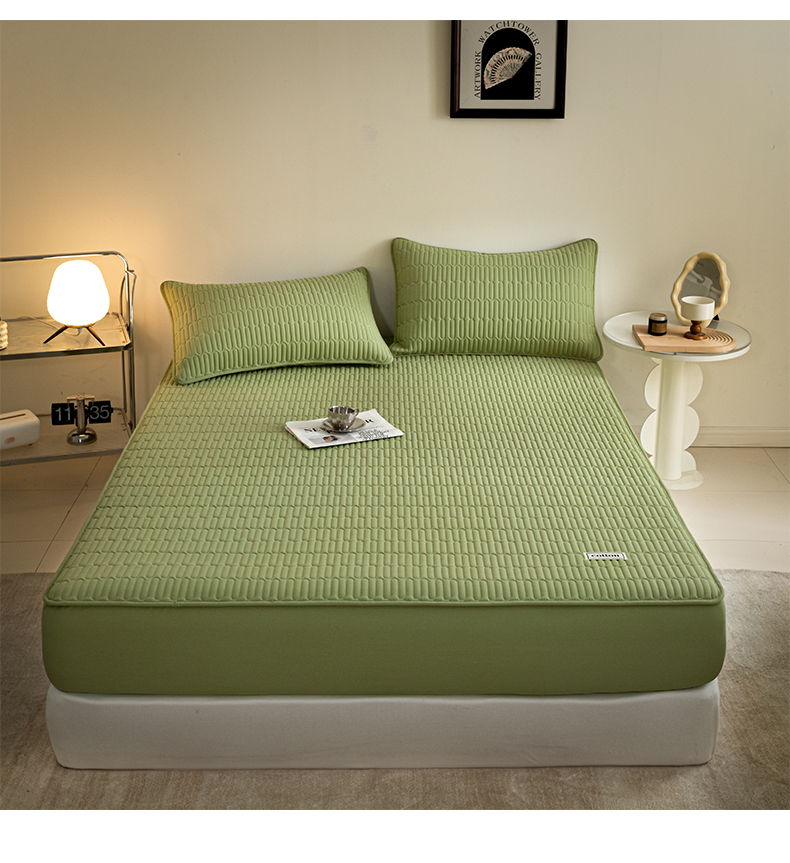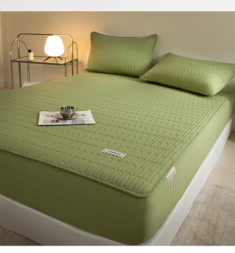 芬晴家纺 2024新款纯棉水洗棉纯色夹棉床笠 漫游-豆绿