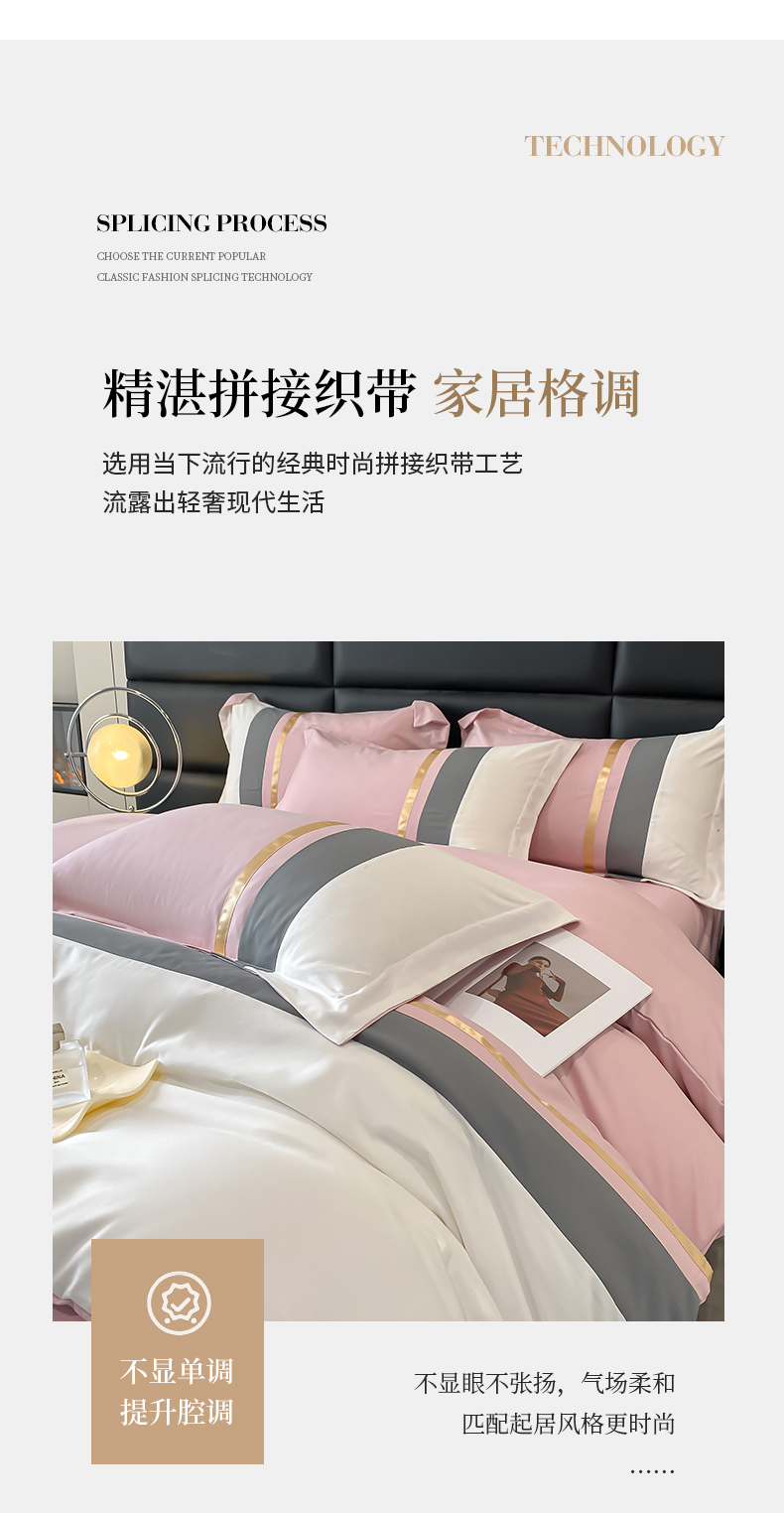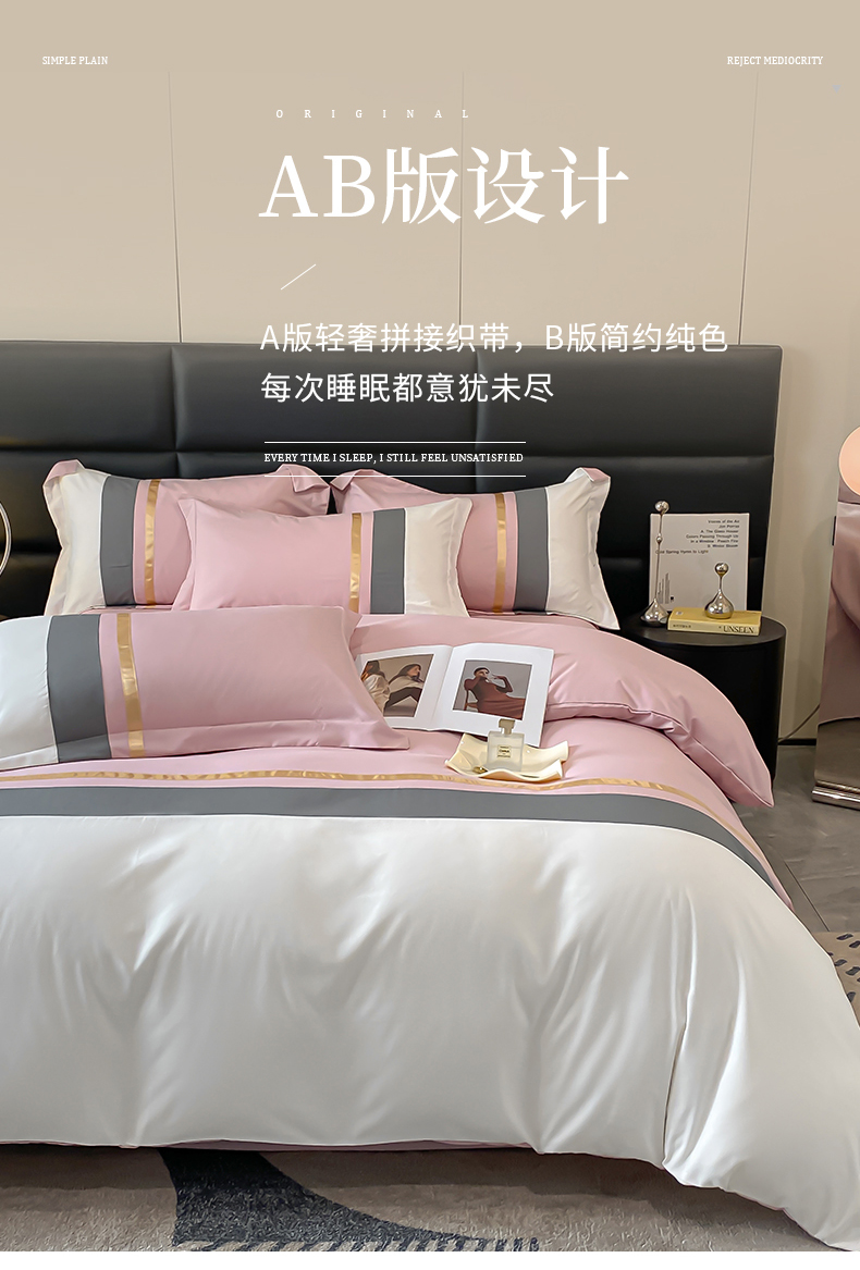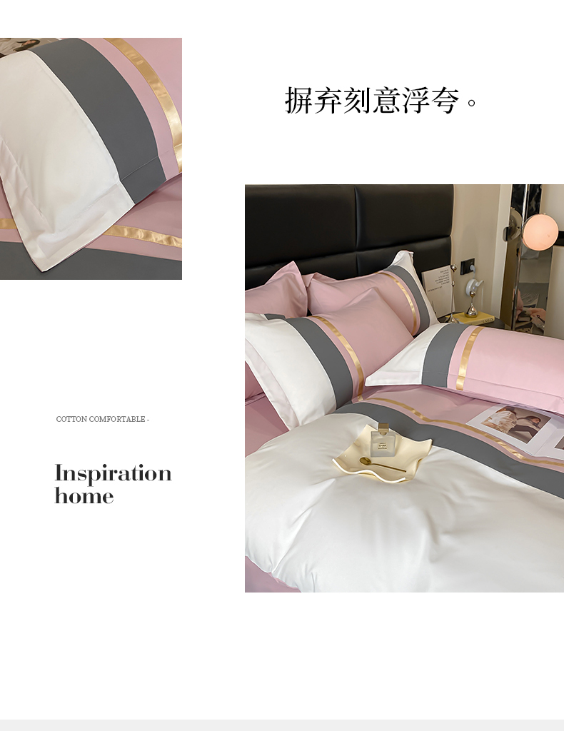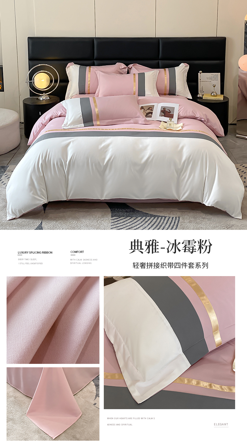 商品名称:苏源家居 2024新款亲肤棉纯色双拼轻奢北欧四件套-典雅系列 典雅-冰莓粉