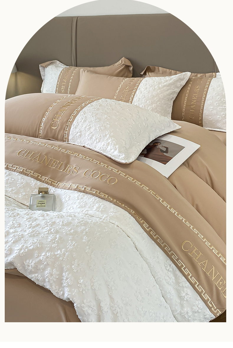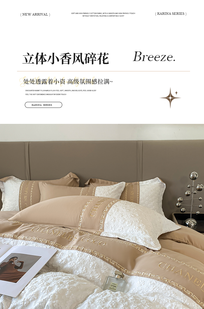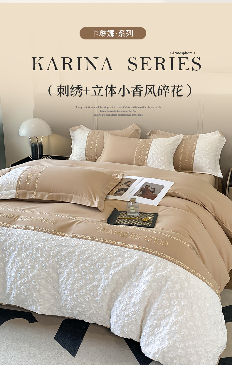苏源家居 2024新款亲肤棉拼接立体浮雕碎花公主风四件套-卡琳娜系列 卡琳娜-香槟金