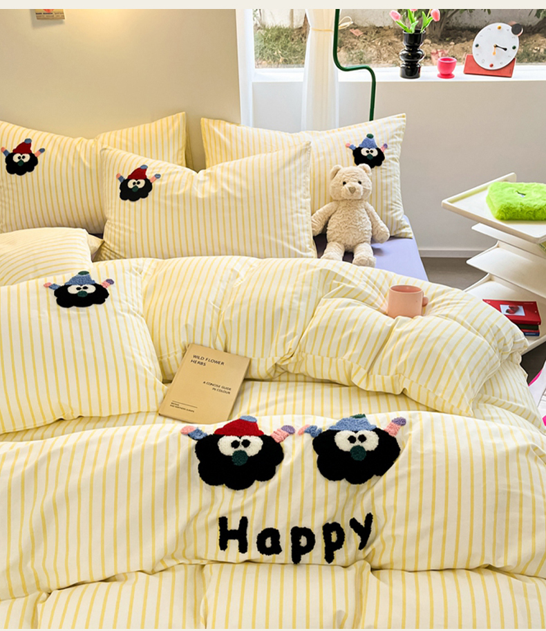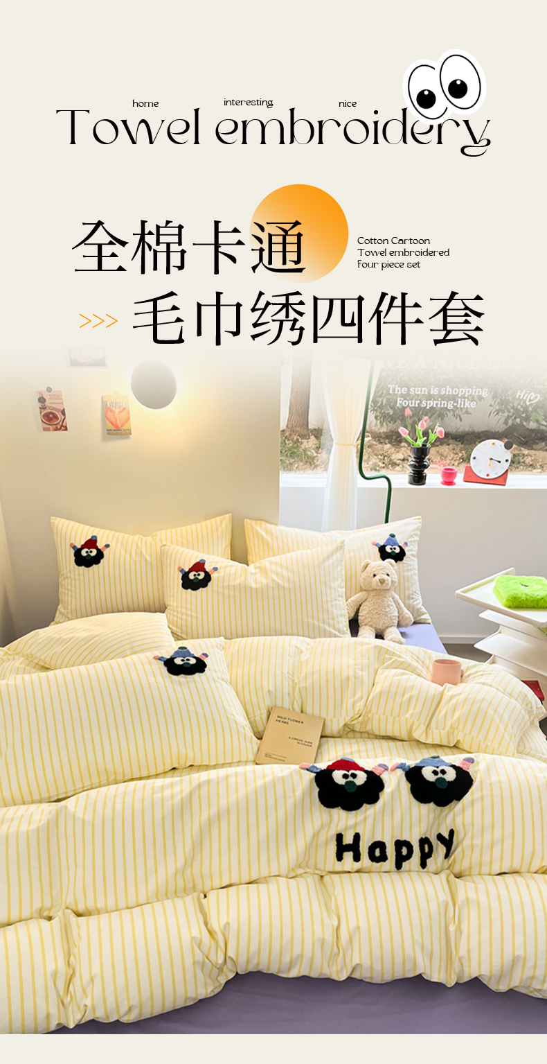 (总)呗旺鹿 2025新款卡通棉+牛奶绒四件套系列,QQ乐园,多彩笑脸,小萌鸭,蘑菇狗,奶油小熊,曲奇小熊