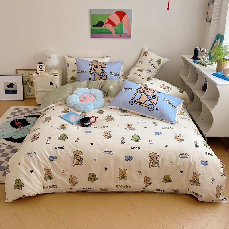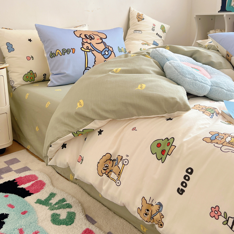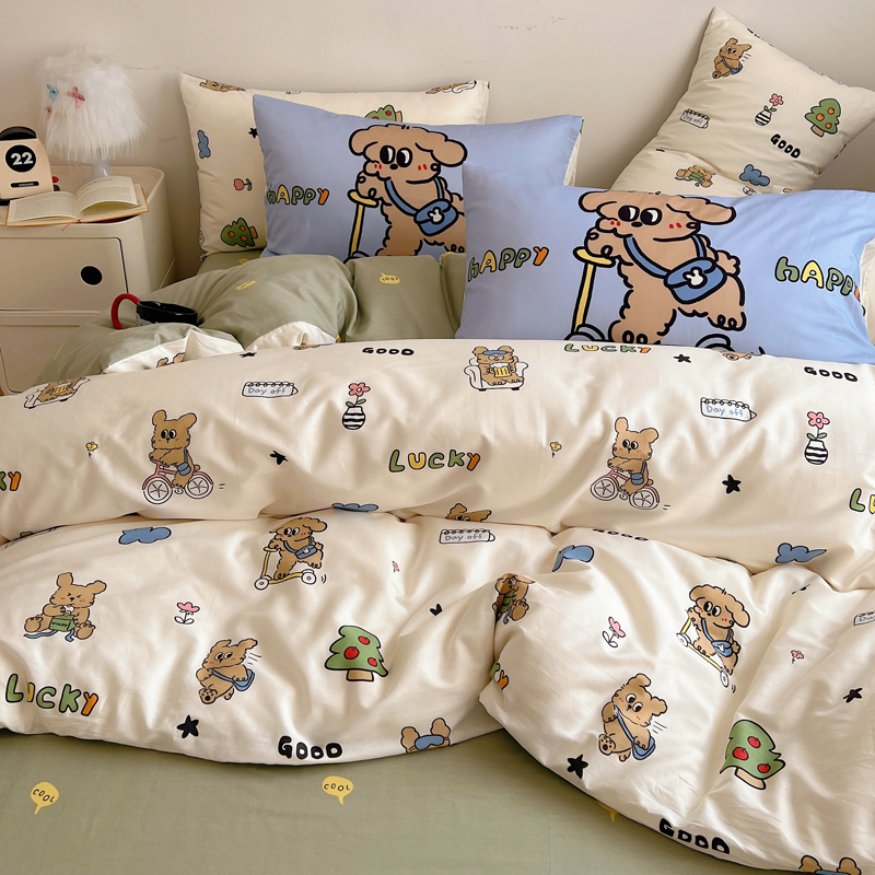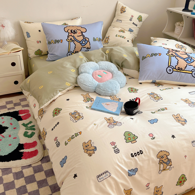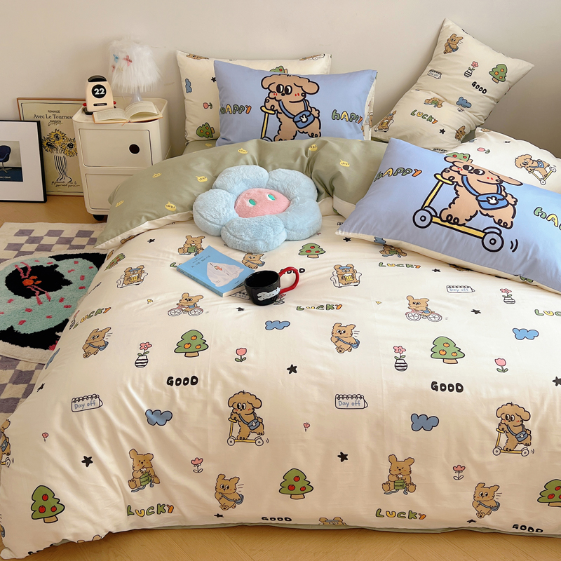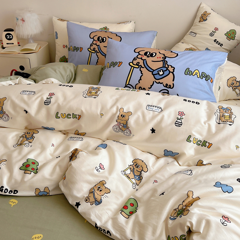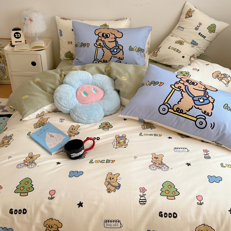 商品名称:桃喜 2024新款全棉卡通数码印花混搭系列四件套 滑板车小狗蓝