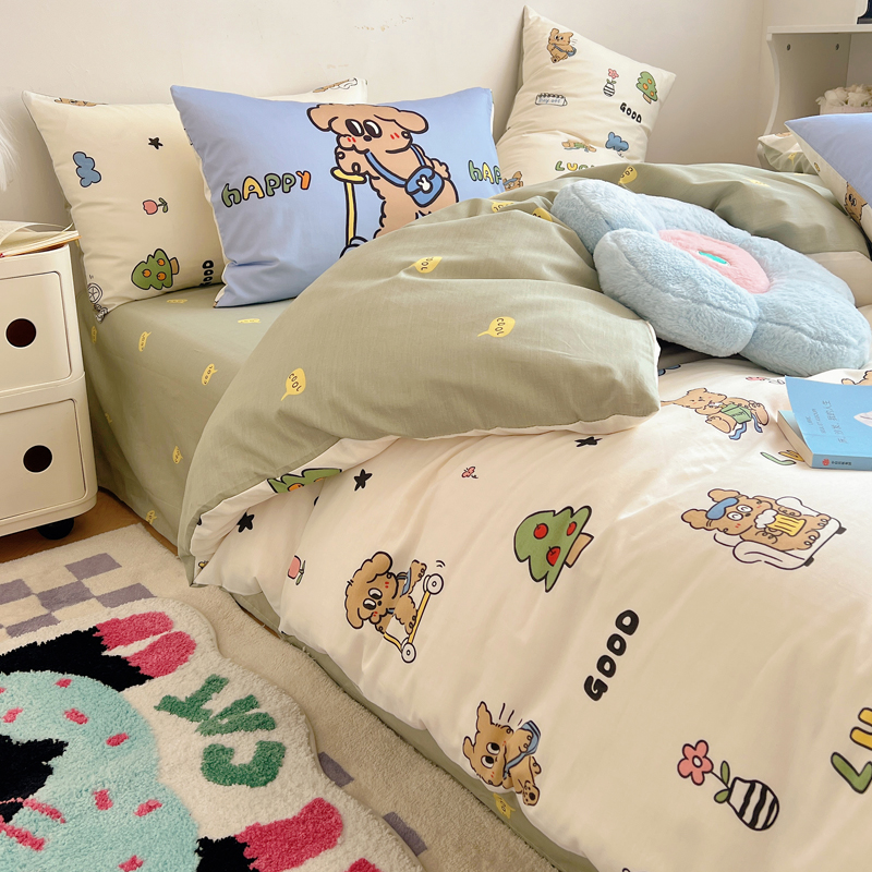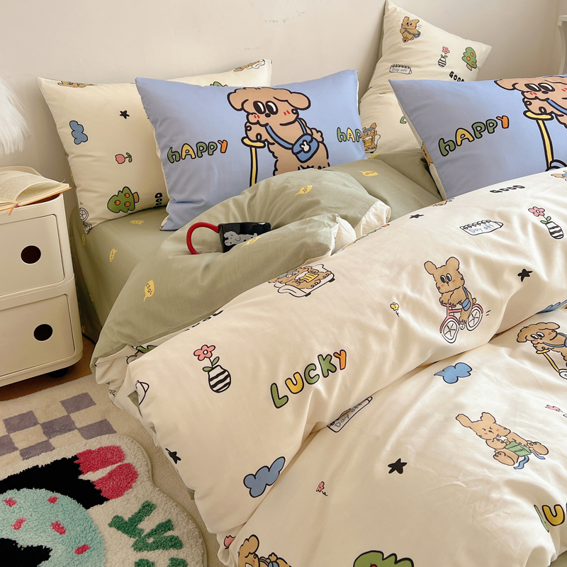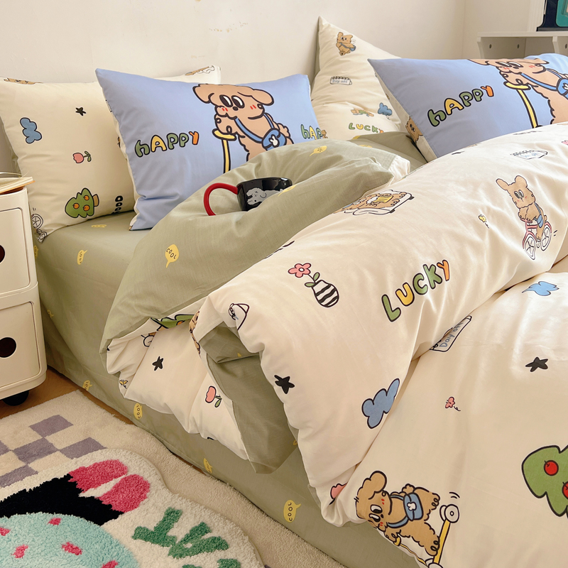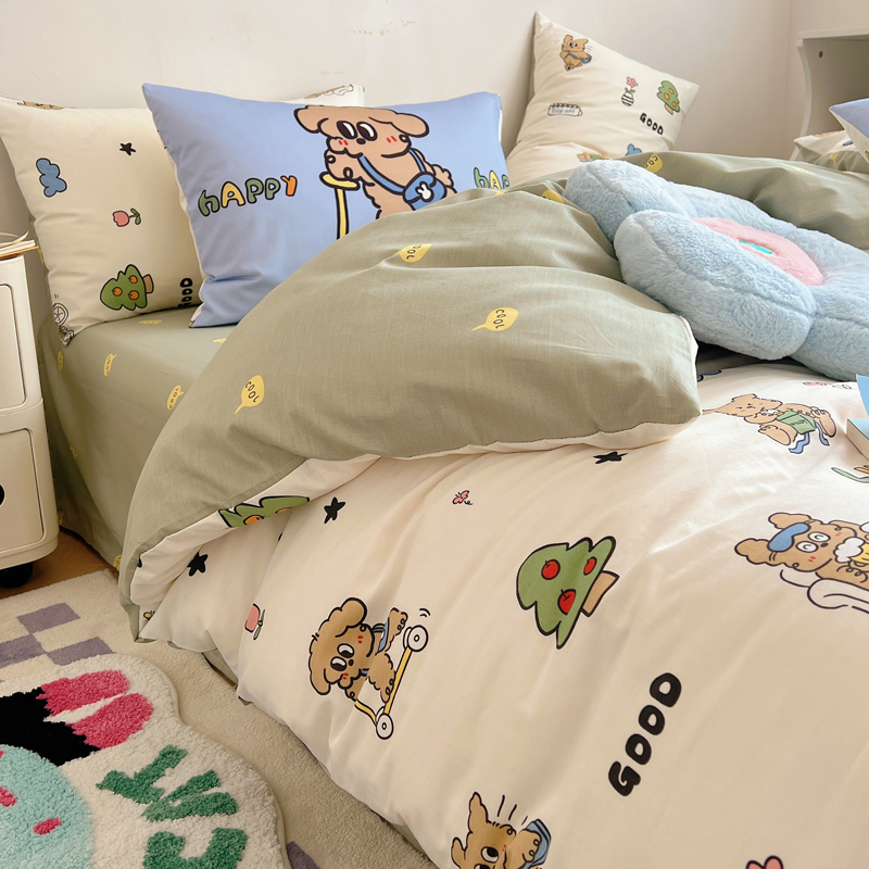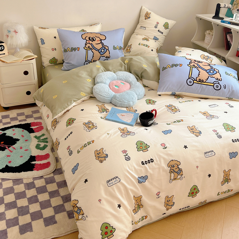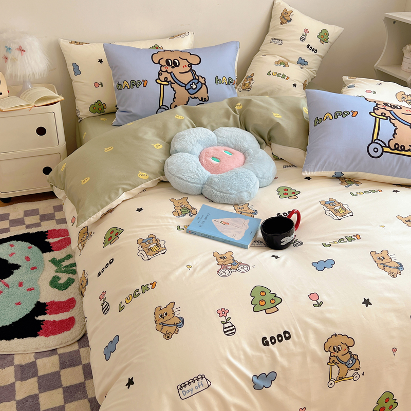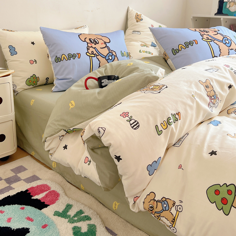 商品名称:桃喜 2024新款全棉卡通数码印花混搭系列四件套 滑板车小狗蓝