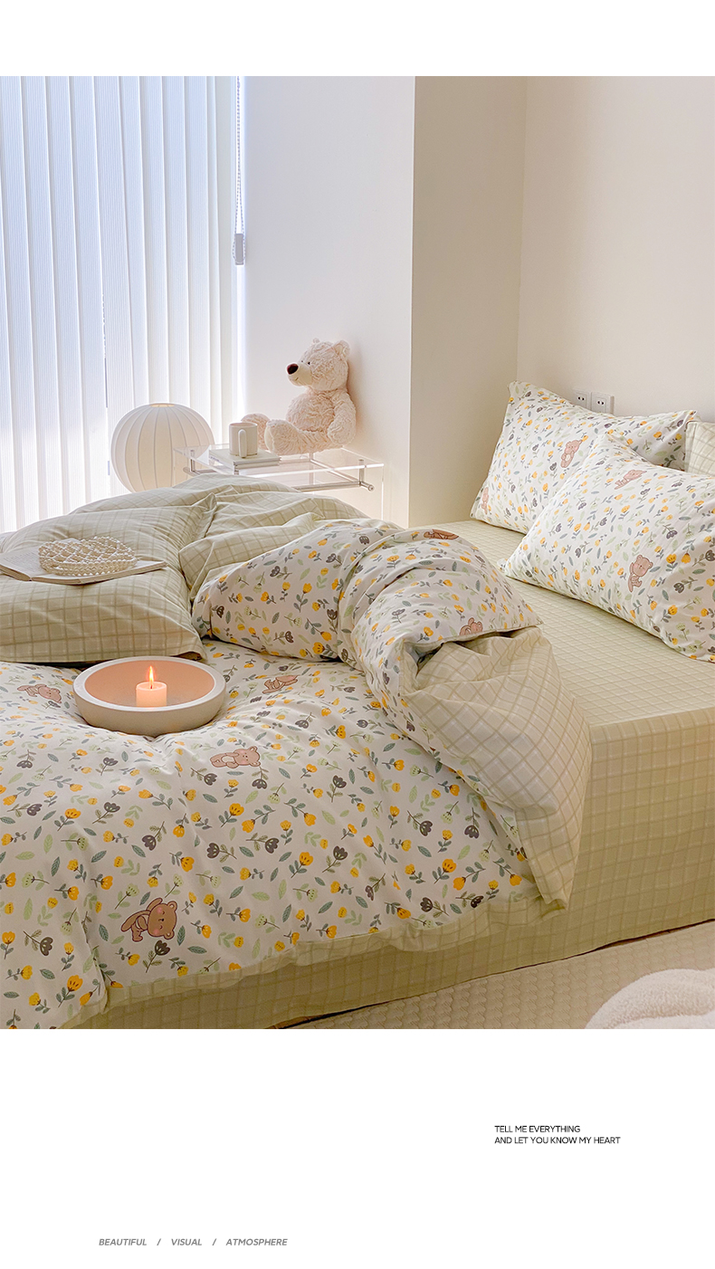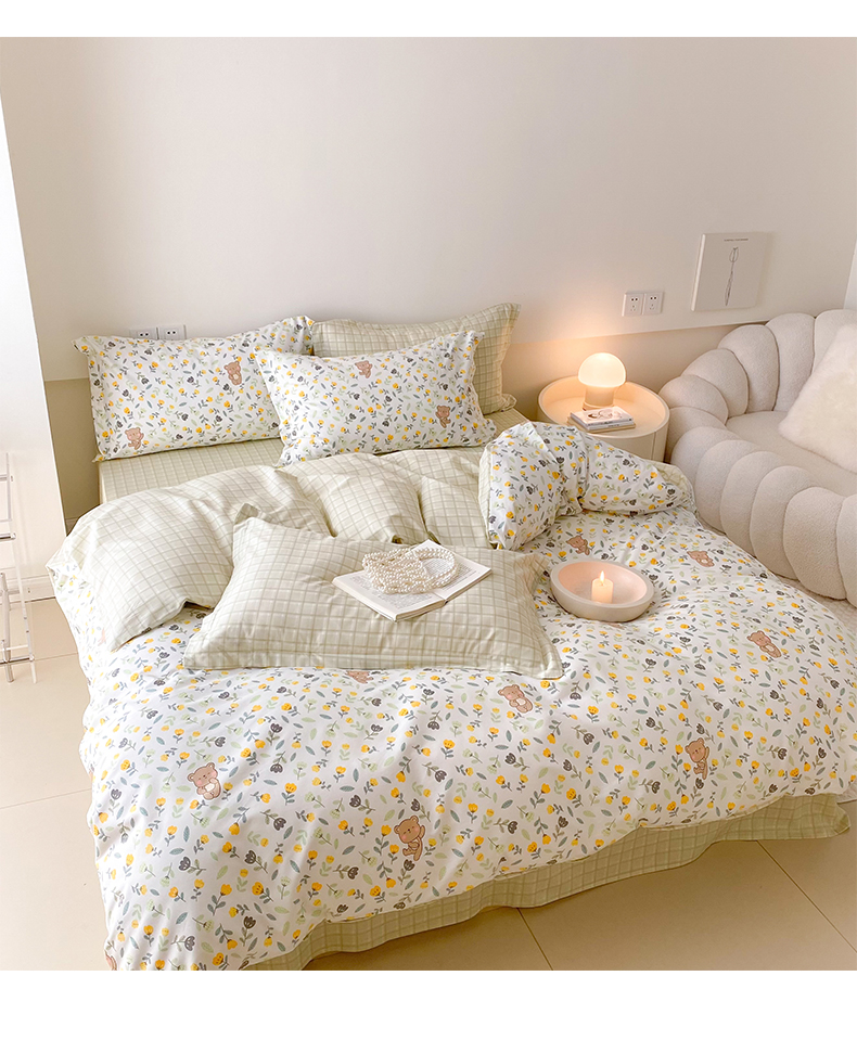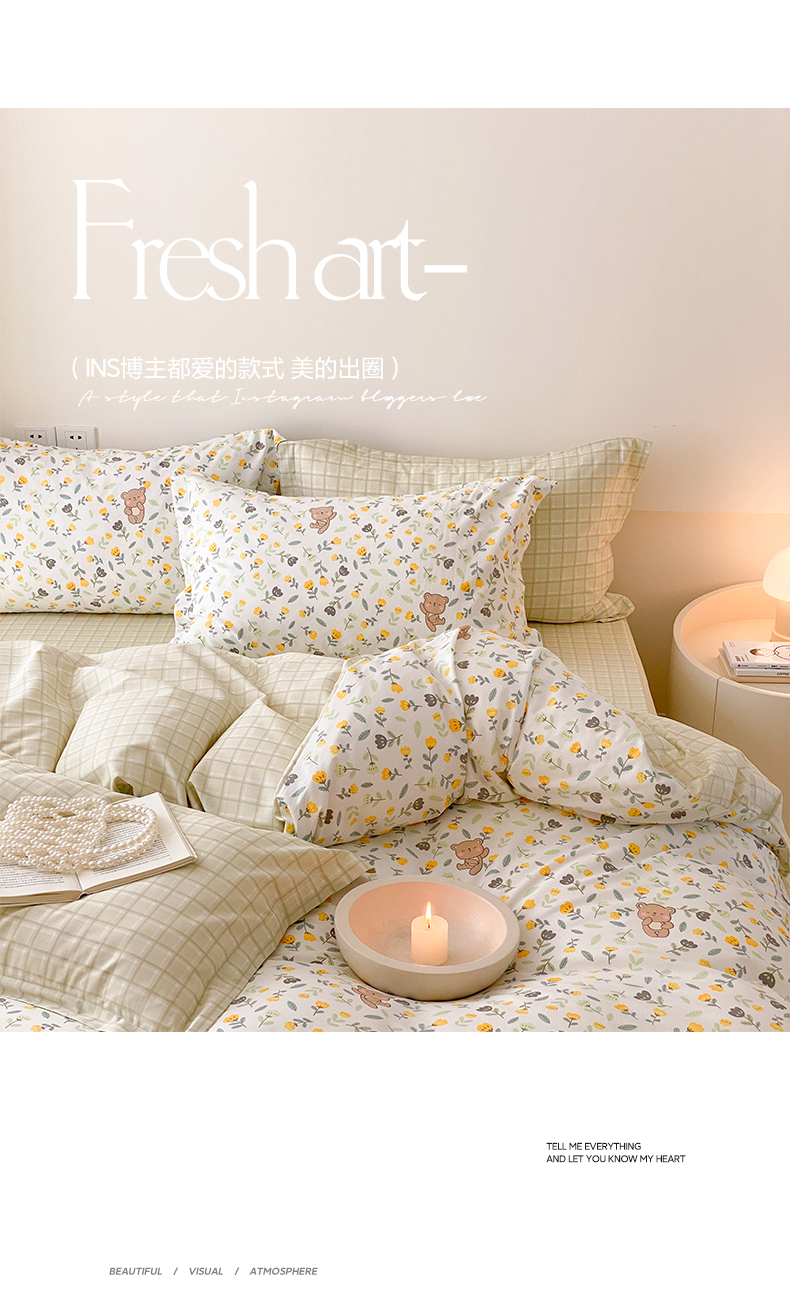 宜家坊 2024新款全棉喷气13070小清新印花四件套-拍摄一 朵朵熊
