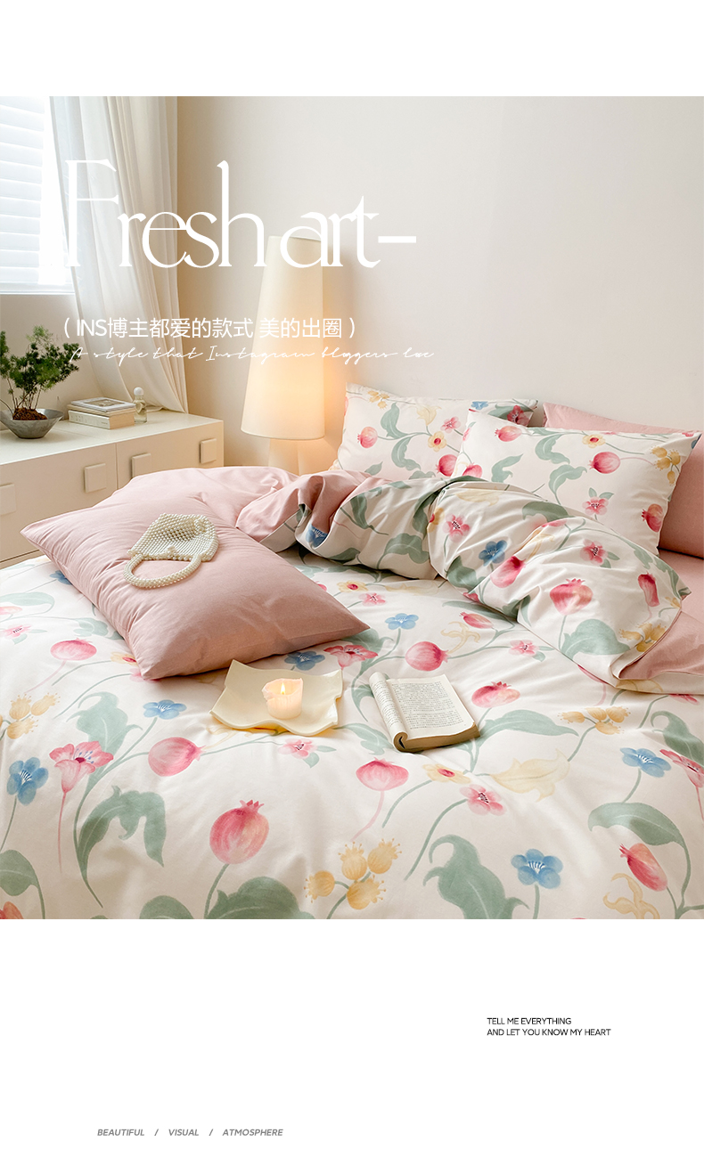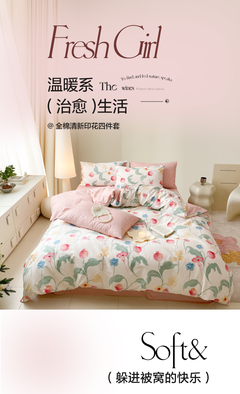 宜家坊 2024新款全棉喷气13070小清新印花四件套-拍摄一 时留