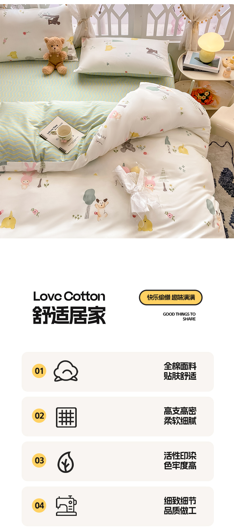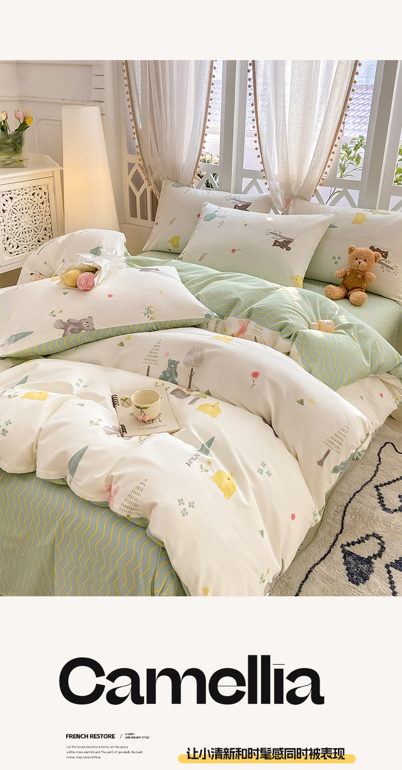 宜家坊 2024新款全棉13070小清新印花四件套-拍摄二 秘森茶话会