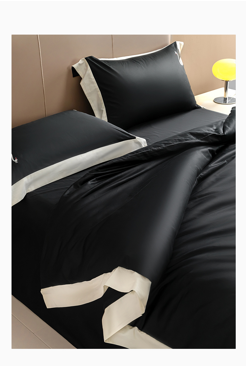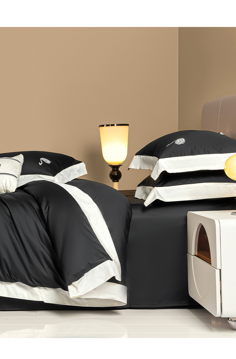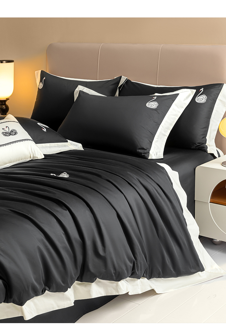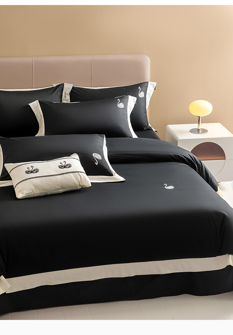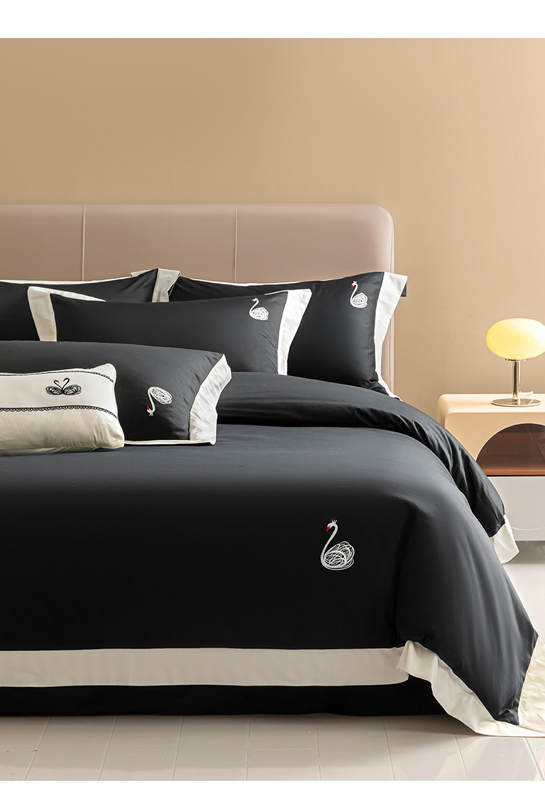 商品名称:蓝米卡夫 2024新品A类100支全棉巴黎天鹅刺绣工艺宽边拼角四件 巴黎-芭蕾黑白