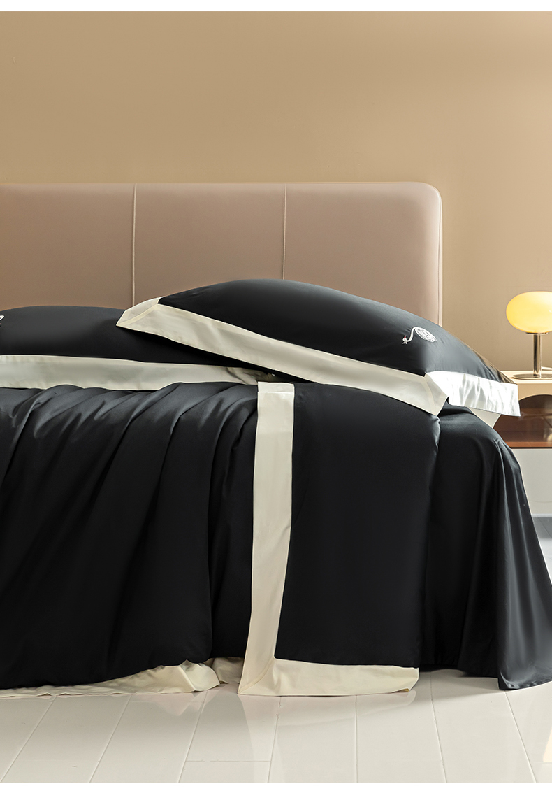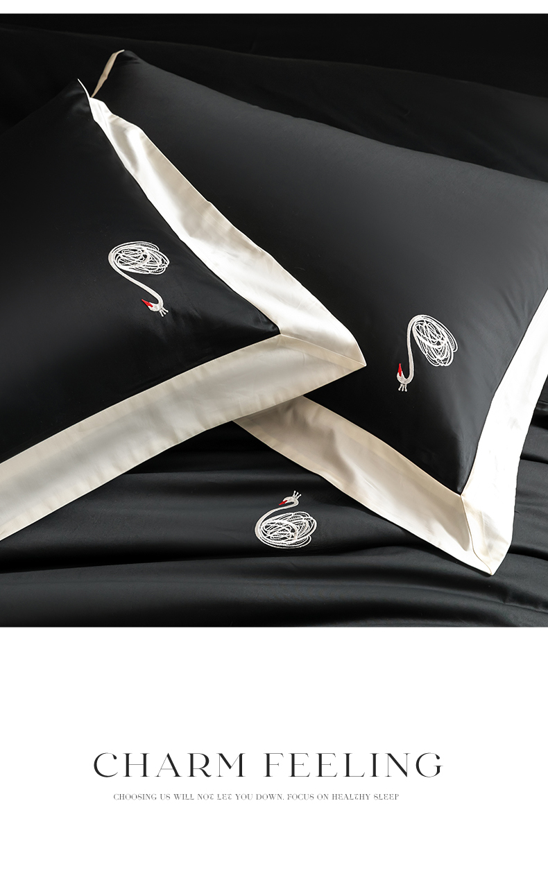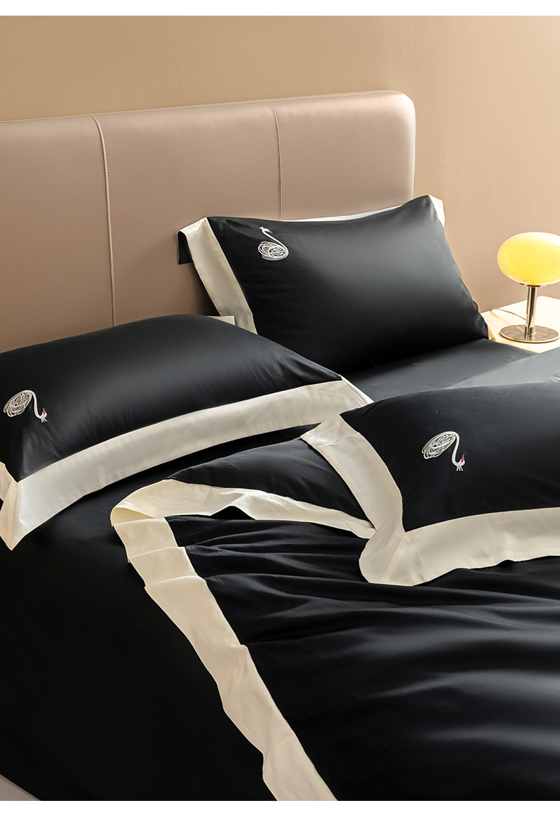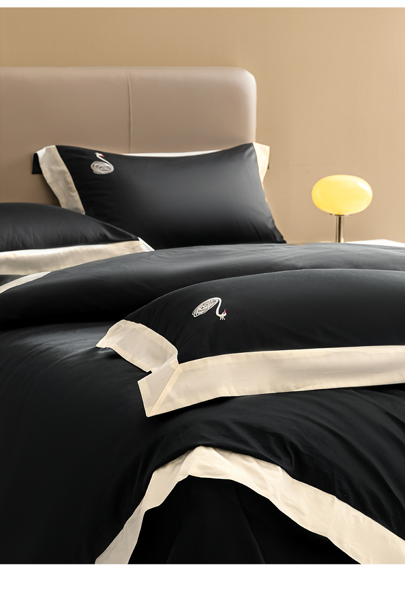 商品名称:蓝米卡夫 2024新品A类100支全棉巴黎天鹅刺绣工艺宽边拼角四件 巴黎-芭蕾黑白