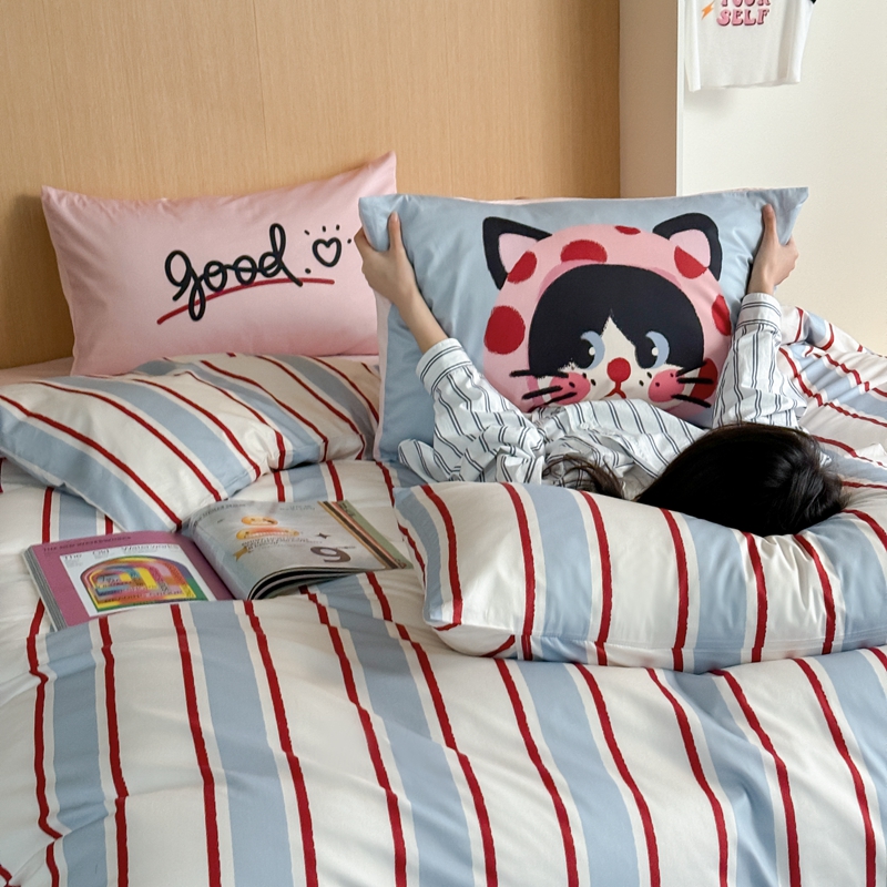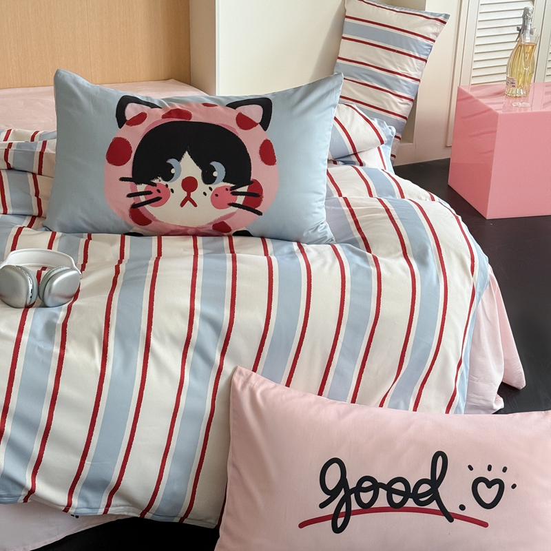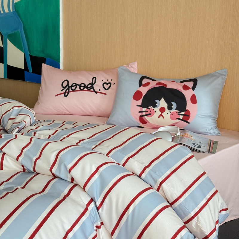 圆岛家纺 2024新款春夏40支趣味全棉数码印花四件套 小奶猫
