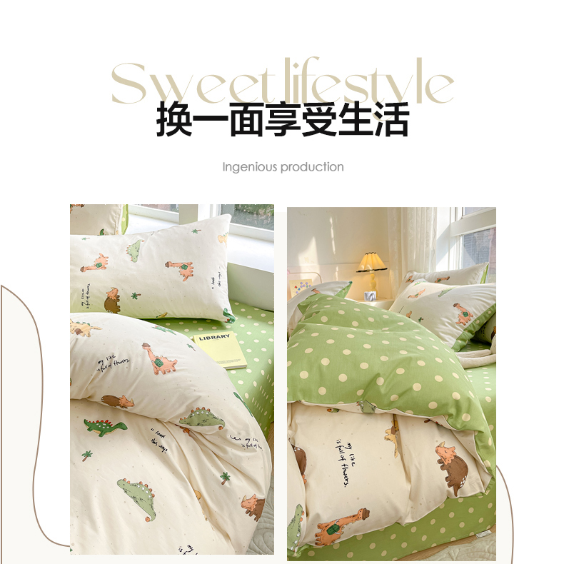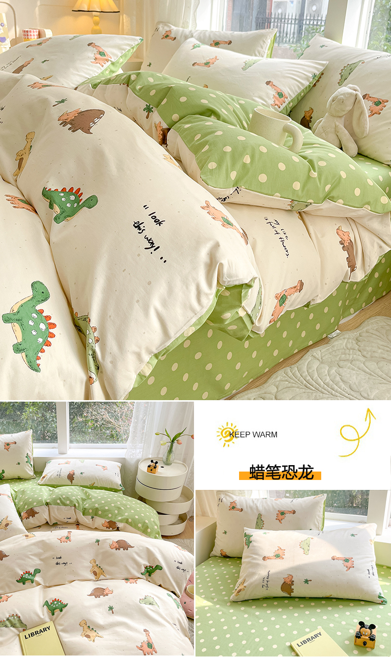 当前位置: 91家纺网 > 商品网购 > 床品套件 > 四件套 > 全棉普通四件套 > 麦伦家居 2024春夏新品ins小清新卡通全棉四件套 蜡笔恐龙